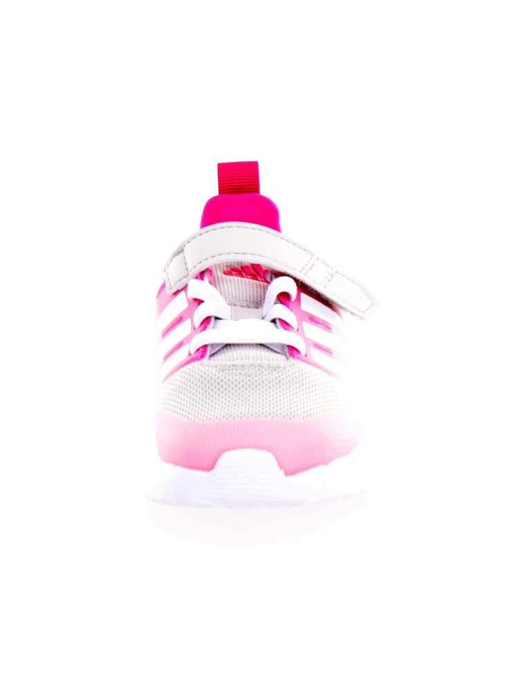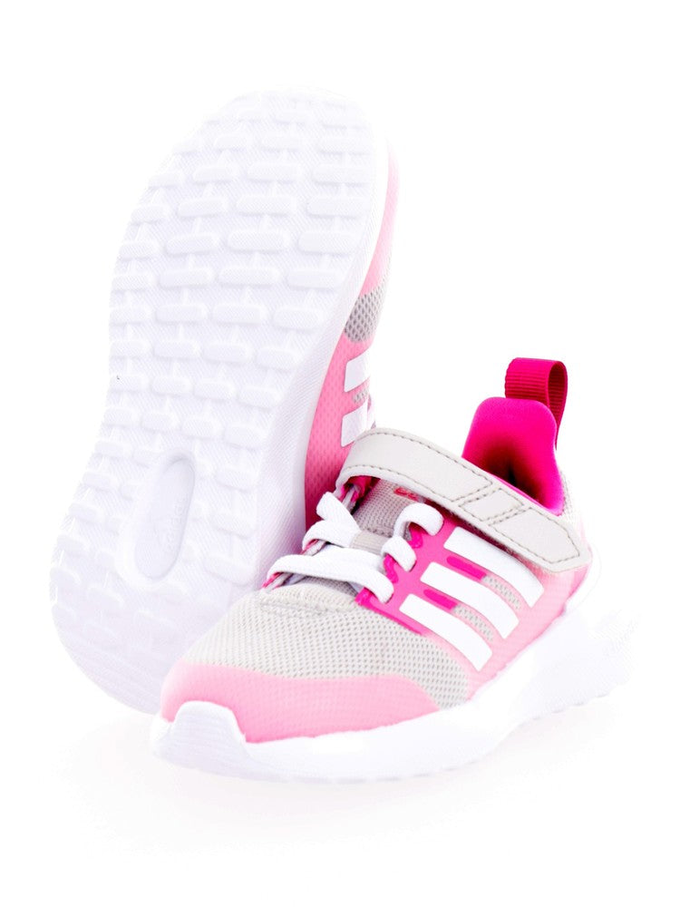 Scarpe Adidas rosa e grigie da bambina con velcro, modello FortaRun 2.0. Queste sneakers Adidas rosa e grigie hanno la tomaia in mesh con inserti in tessuto traspirante, la suola in gomma e il battistrada con texture geometrica. Sul davanti di queste Adidas troviamo la chiusura a velcro, le iconiche 3Stripes ambo i lati a contrasto colore e la linguetta posteriore che agevola l'entrata del piede.