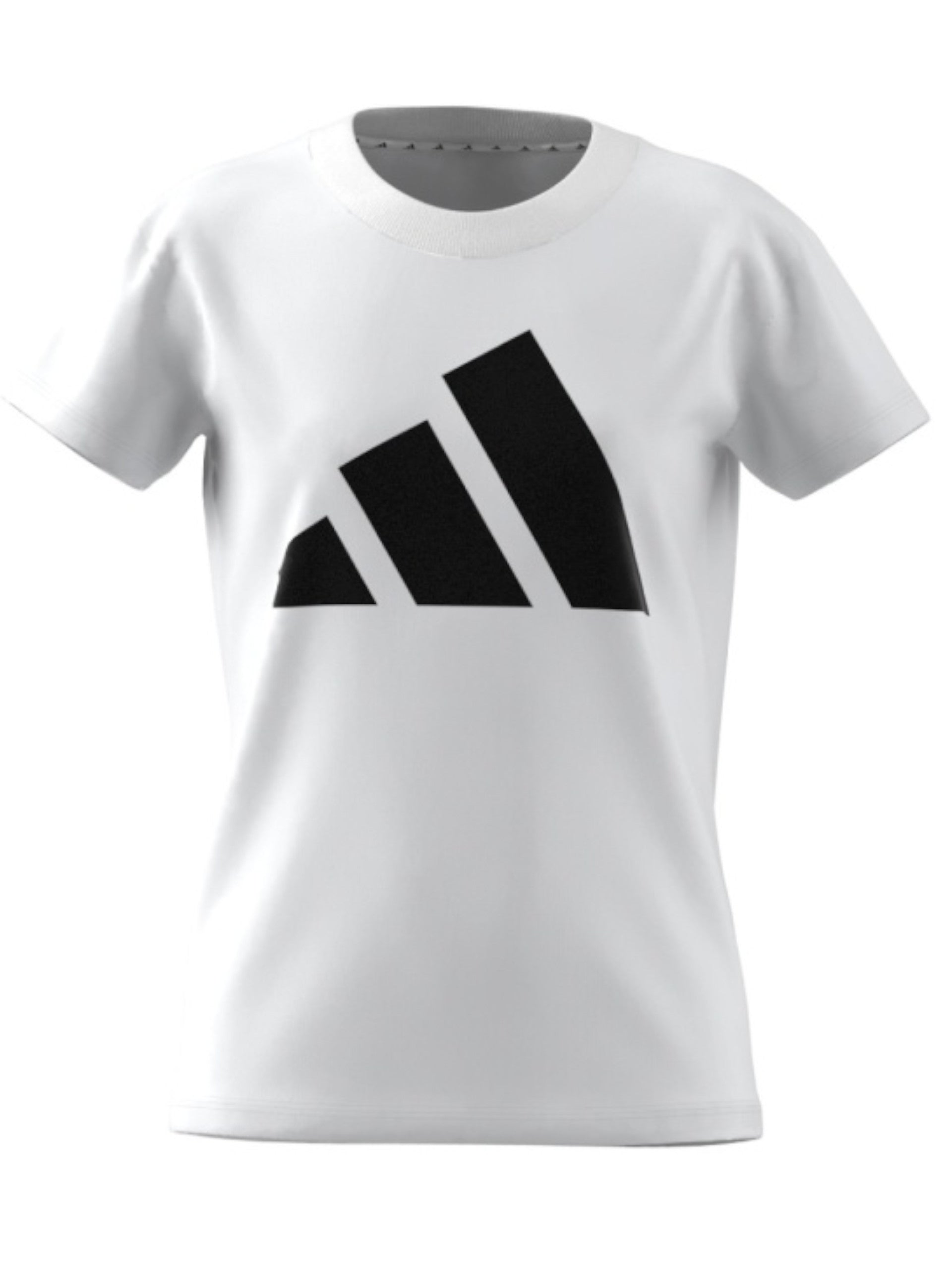 T-shirt Adidas bianca da bambina maxi logo Adidas nero JC9627, realizzata in 100% puro cotone. Questa maglia Adidas bianca girocollo ha le maniche corte e il maxi logo Adidas nero a contrasto colore.