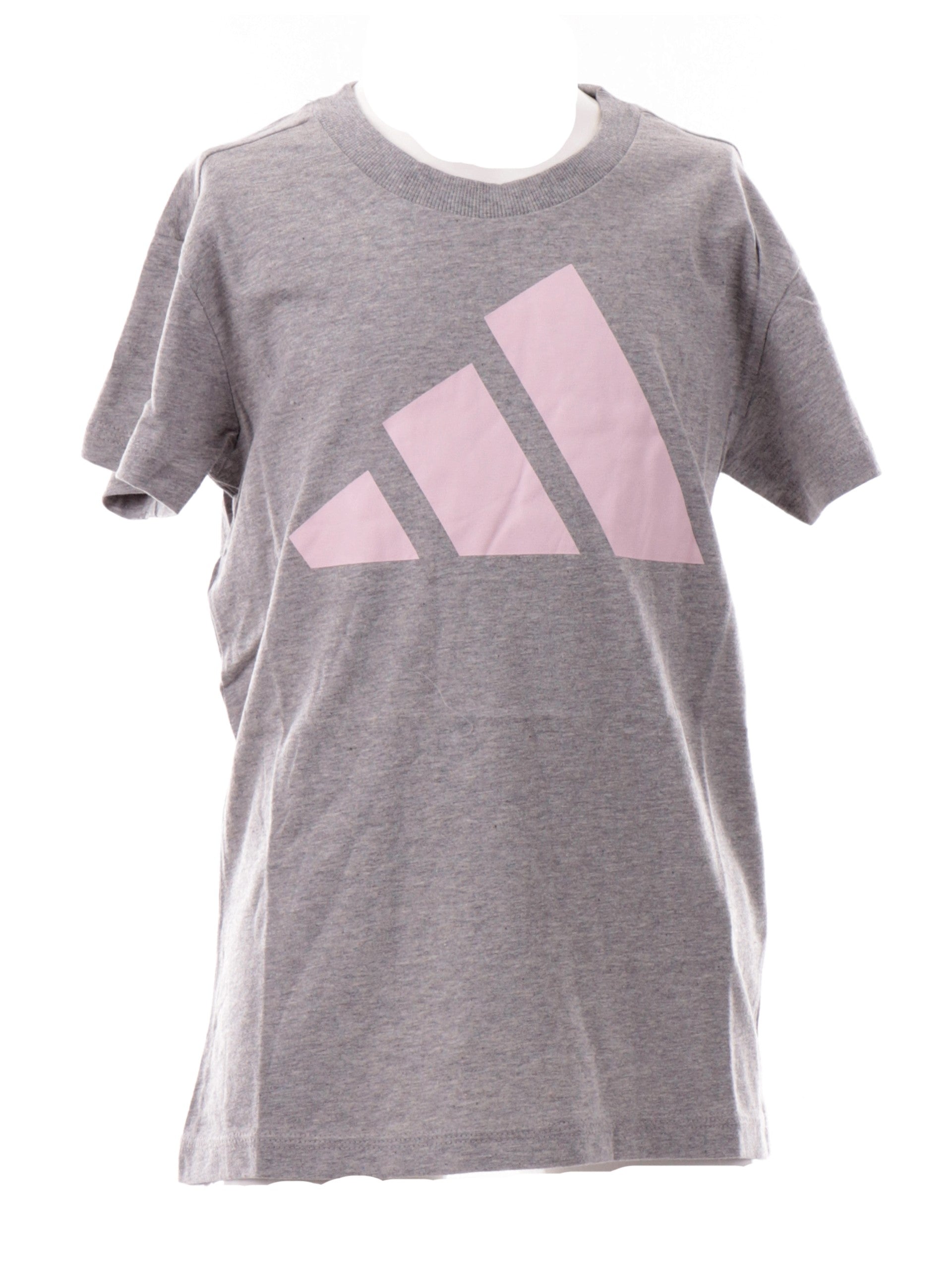 T-shirt Adidas grigia da bambina maxi stampa rosa JC9626, realizzata in 100% puro cotone. Questa maglia Adidas grigia girocollo ha le maniche corte e la maxi stampa rosa sul davanti.