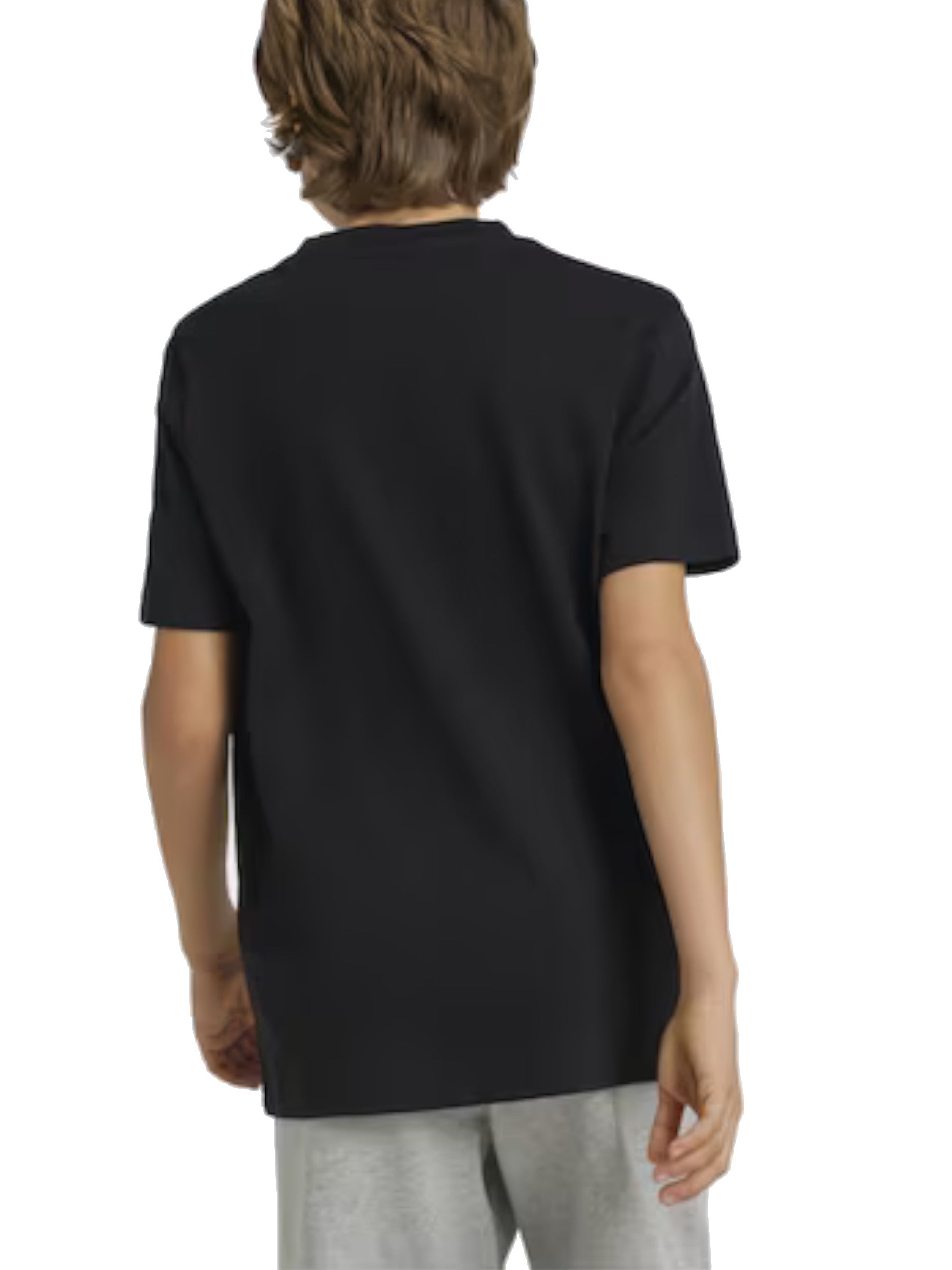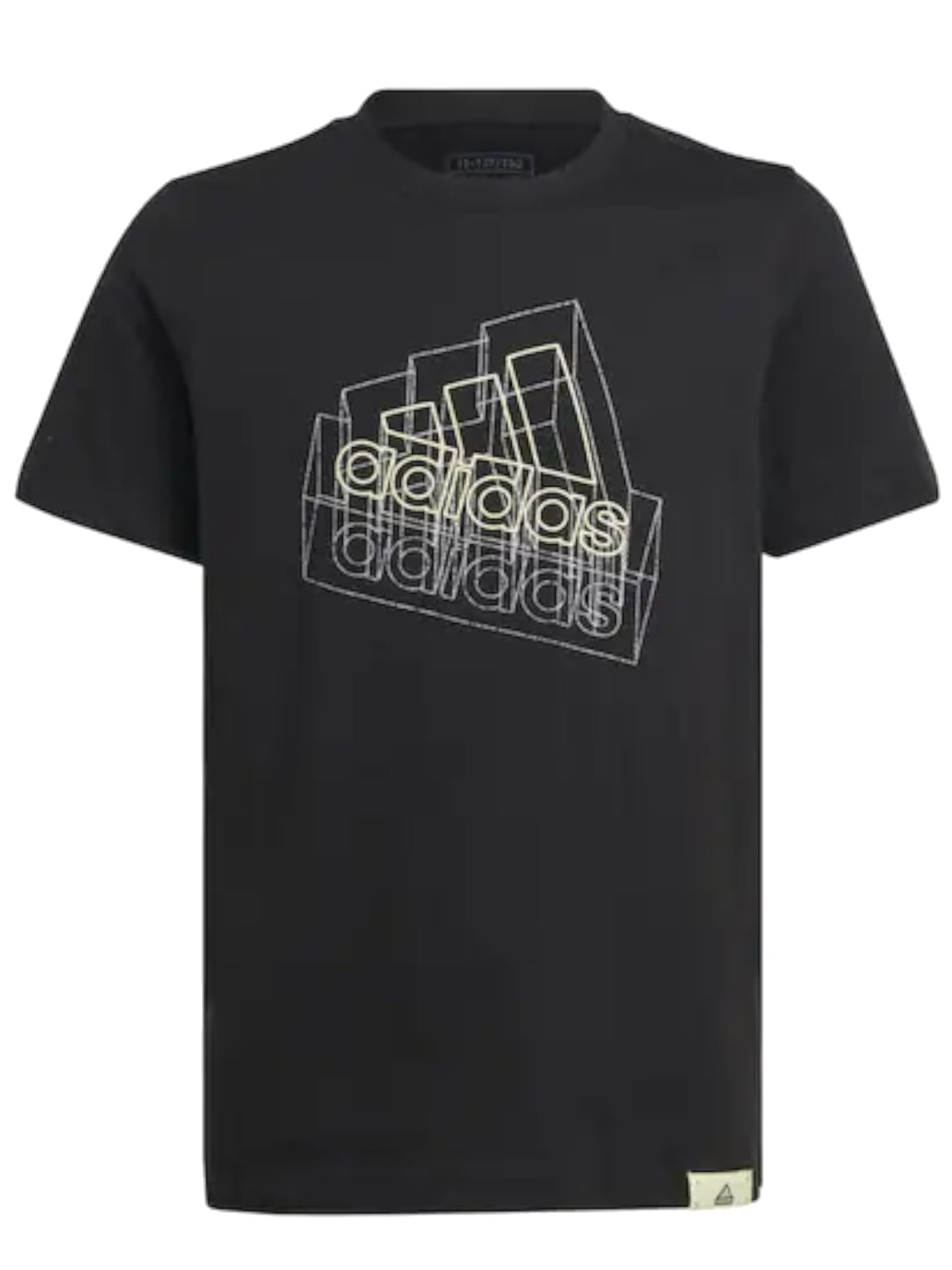 T-shirt Adidas nera da bambino con maxi stampa Tech Table IW24, realizzata in 100% puro cotone. Questa maglia Adidas nera girocollo ha le maniche corte, il fondo regolare e la maxi stampa del brand sul davanti a contrasto colore.