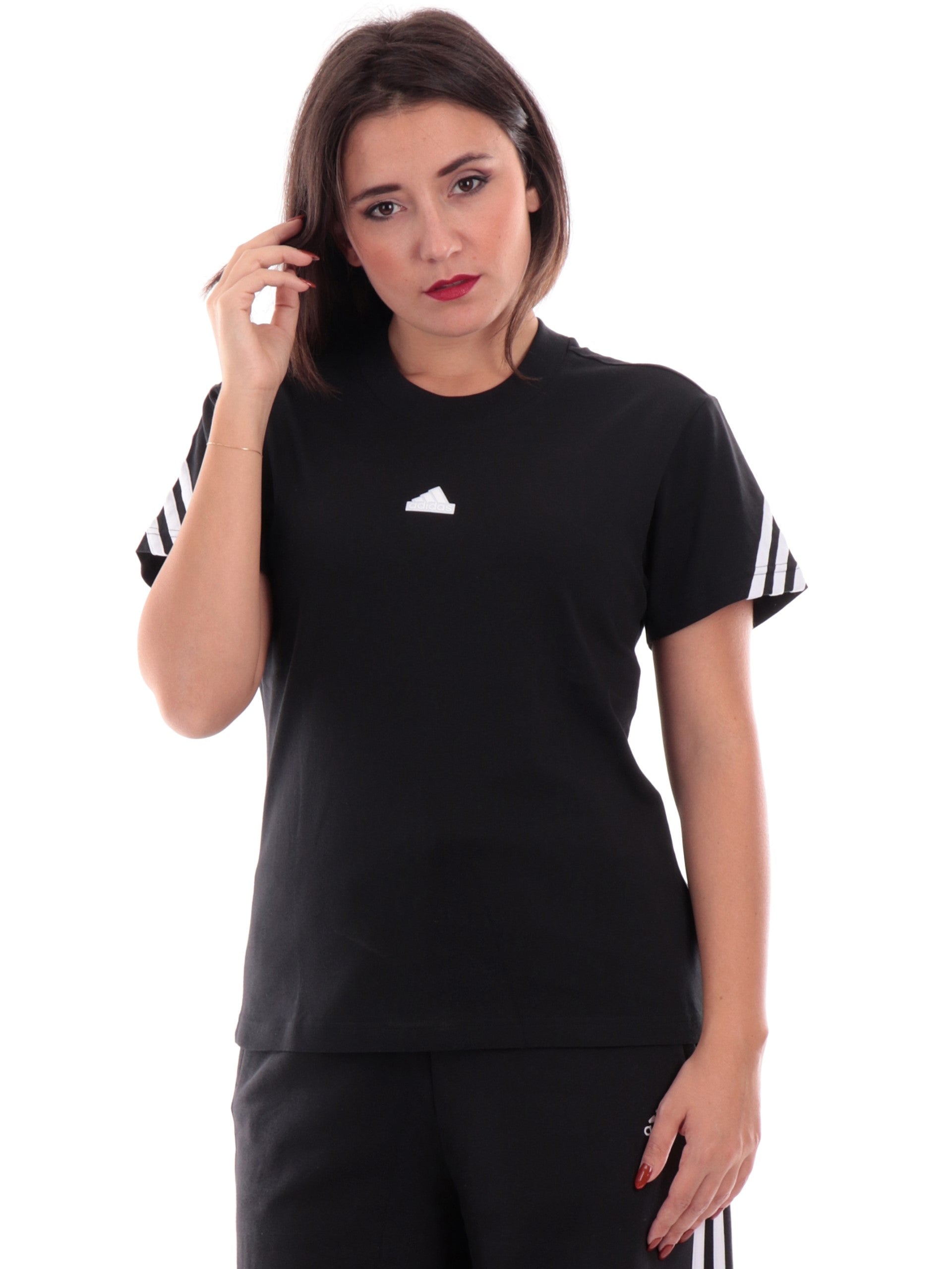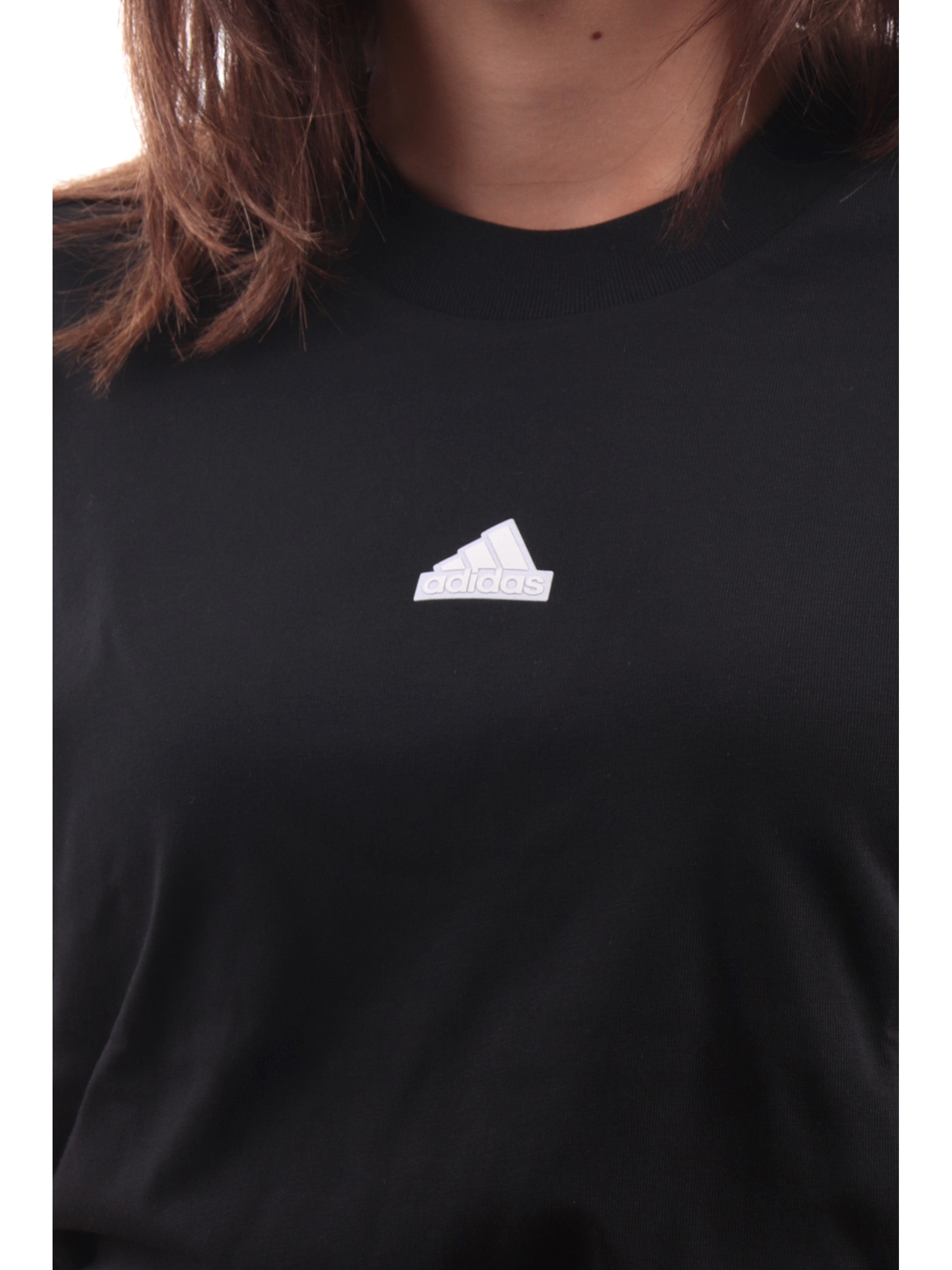 T-shirt Adidas nera da donna patch gommato IW4, realizzata in 100% puro cotone. Questa maglia Adidas nera girocollo ha le maniche corte con le iconiche 3Stripes, il fondo regolare e il patch del brand sul davanti a contrasto colore.