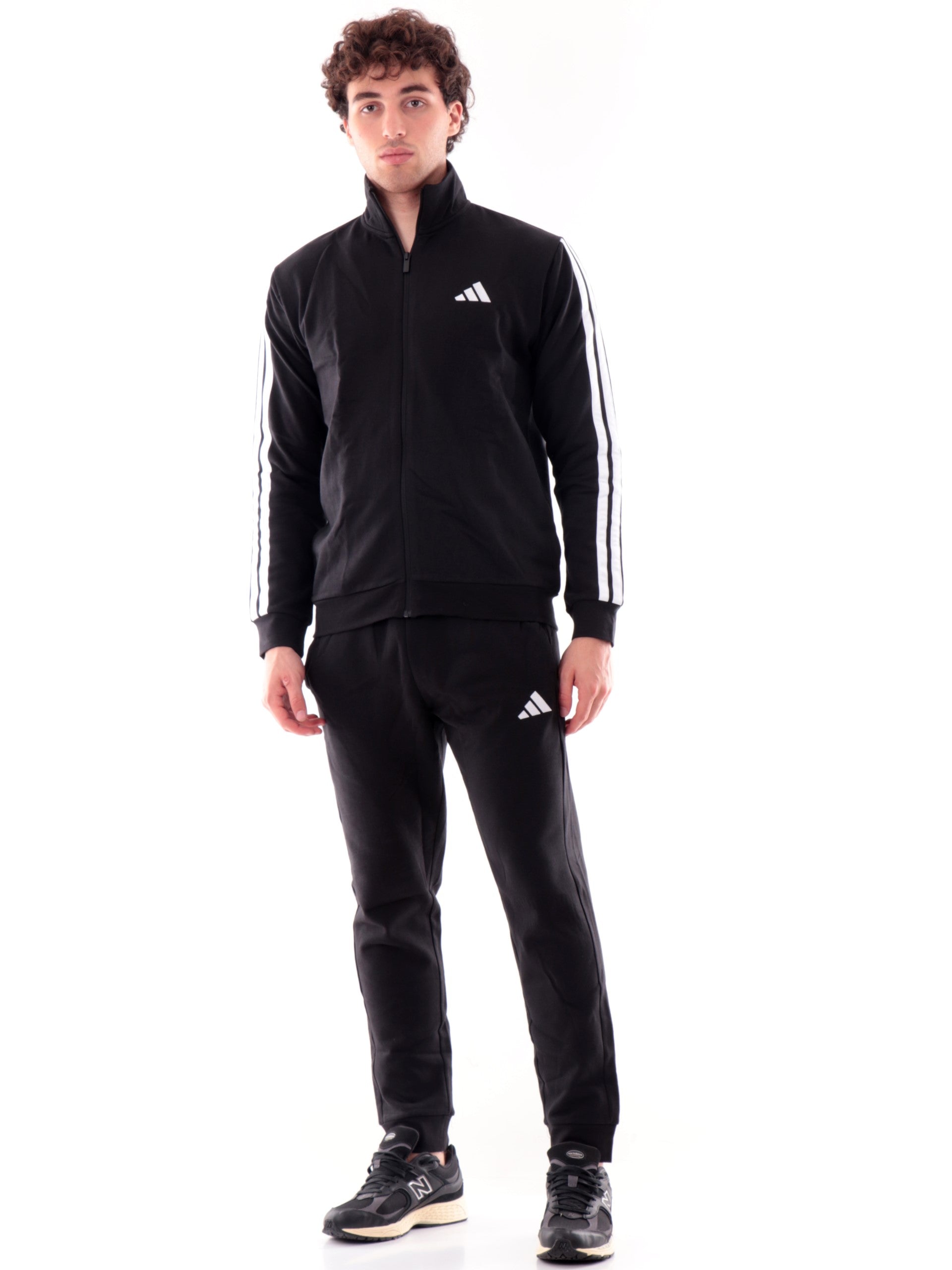 Tuta completa Adidas nera da uomo 3Stripes full zip felpata JI8878