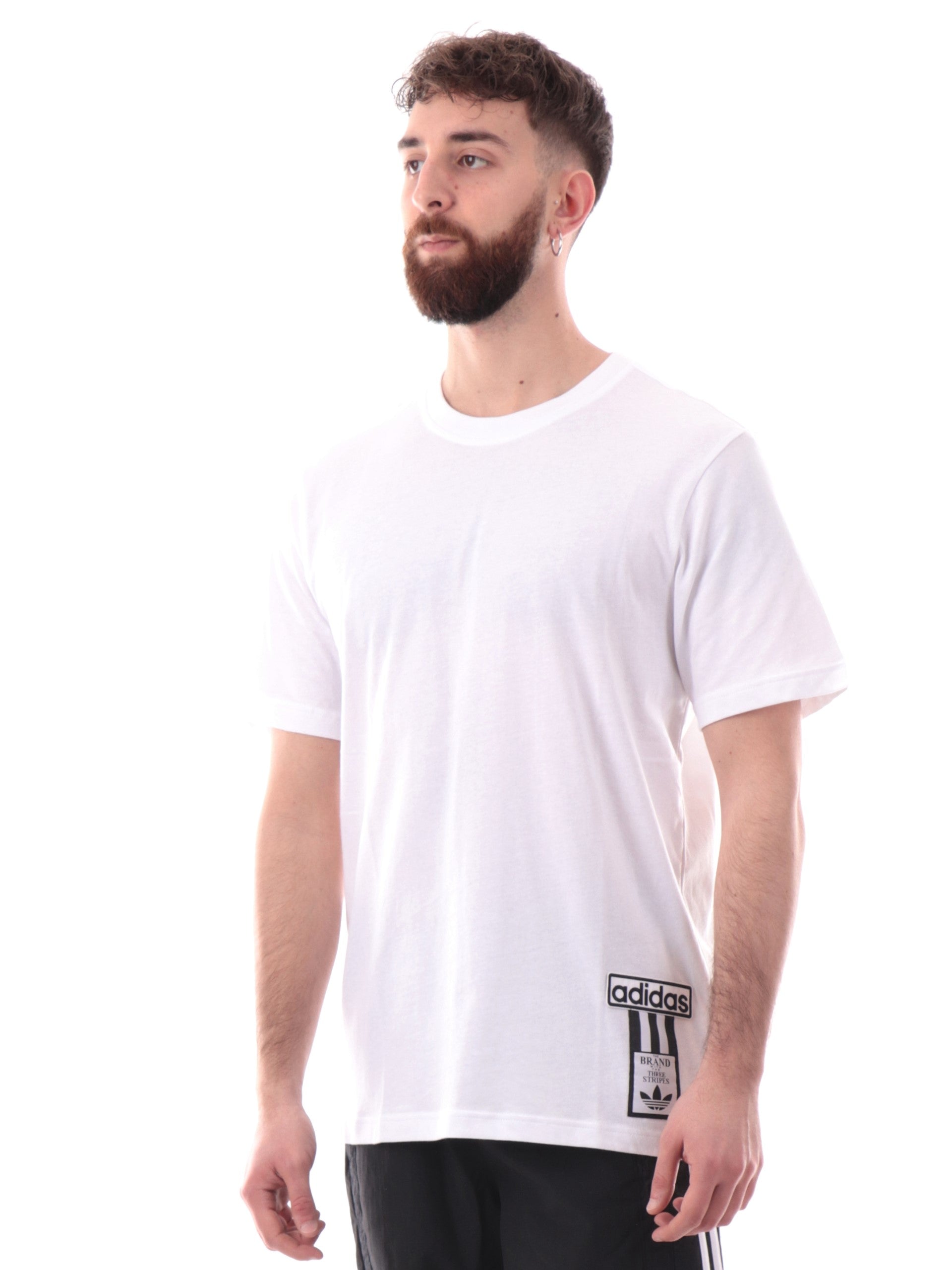 T-shirt Adidas bianca da uomo vestibilità morbida Adibreak JD4195, realizzata in 100% puro cotone. Questa maglia Adidas bianca girocollo ha le maniche corte, il maxi patch del brand applicato sul fondo e la vestibilità morbida.