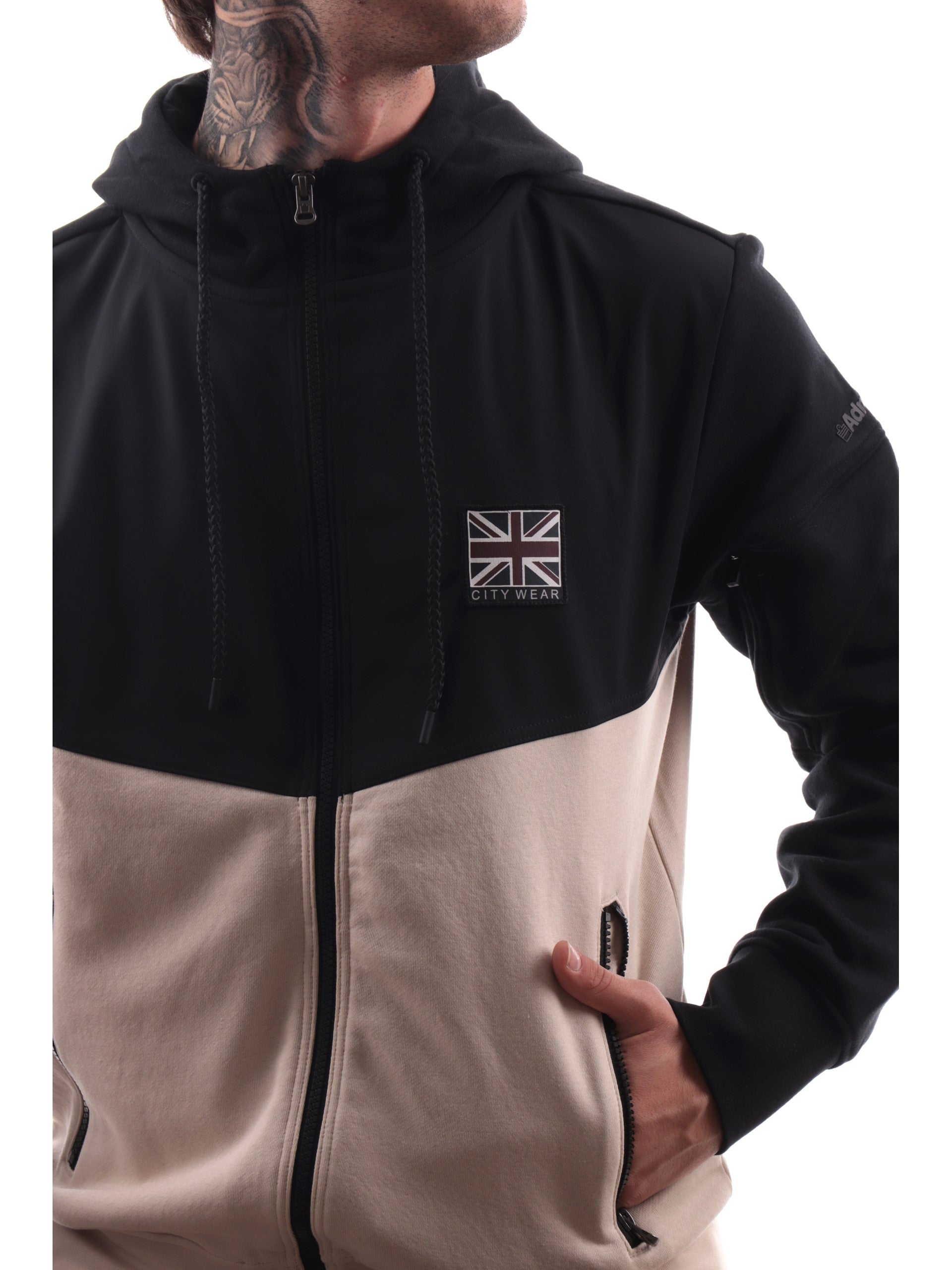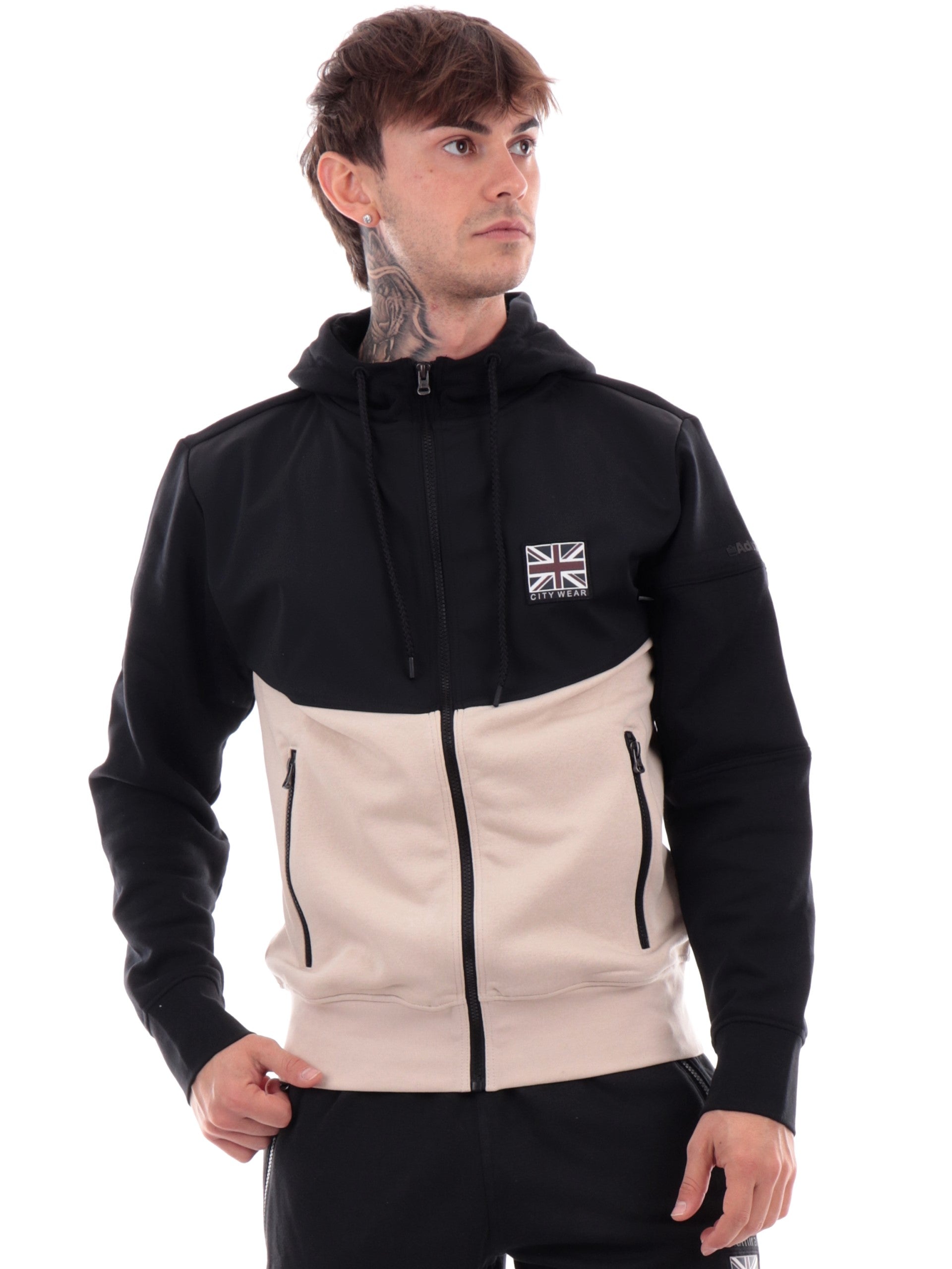 Felpa tecnica Admiral nera e beige da uomo full zip con cappuccio AD3091