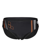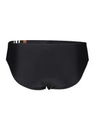 Costume slip Arena nero da uomo realizzato in materiale tecnico, adatto per la piscina e per il mare. Questo costume Arena ha la banda elastica sul punto vita regolabile con laccetti, le righe orizzontali a contrasto colore e il logo del brand sul lato sinistro.