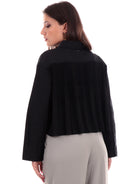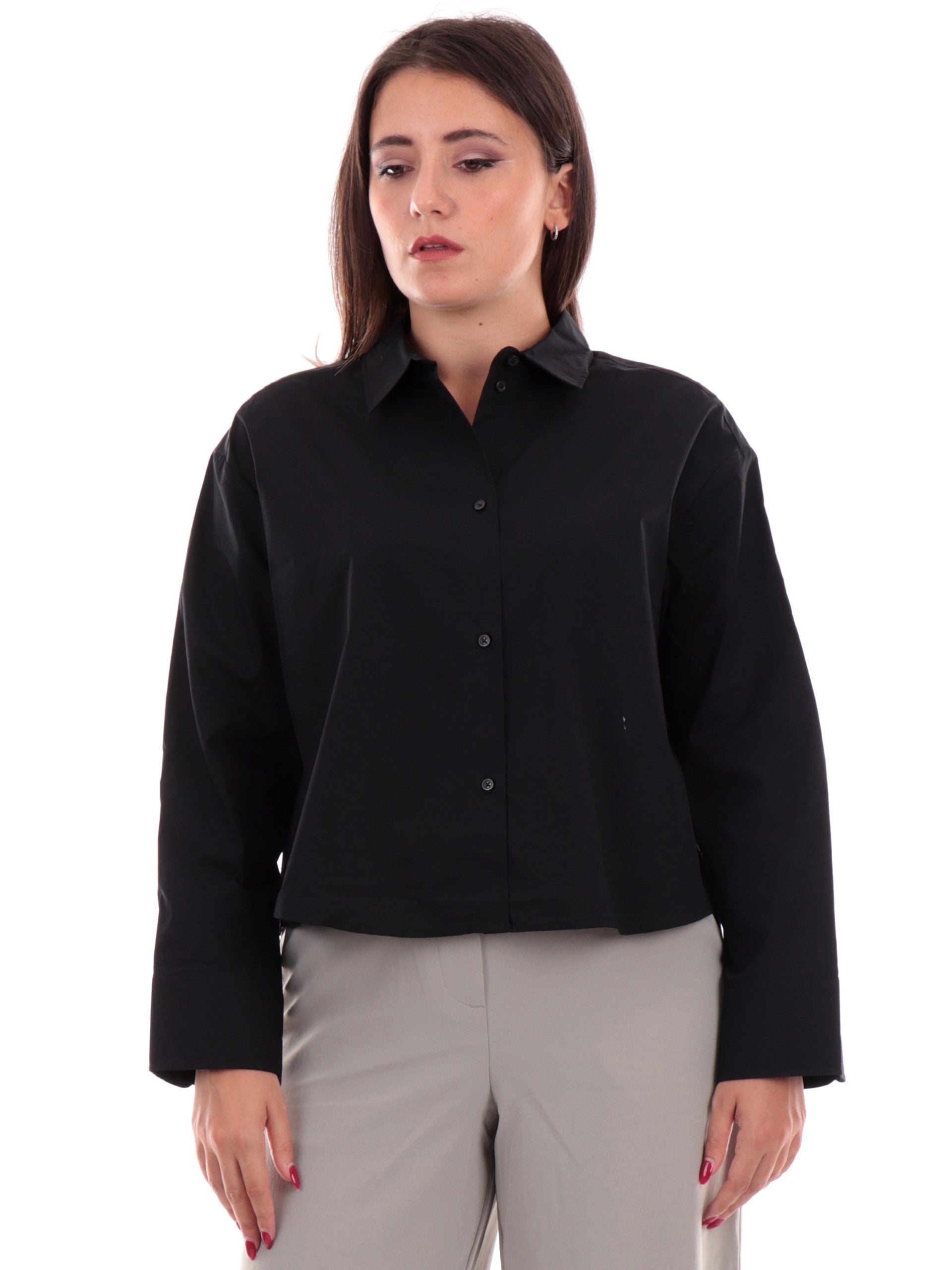 Camicia Armani Exchange AX nera da donna crop oversize con chiusura a bottoni e maniche lunghe 6DYC19YN3NZ