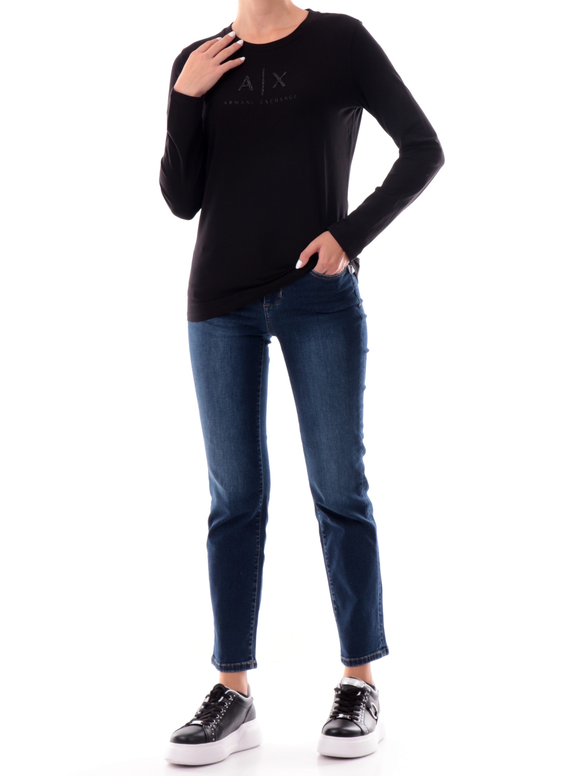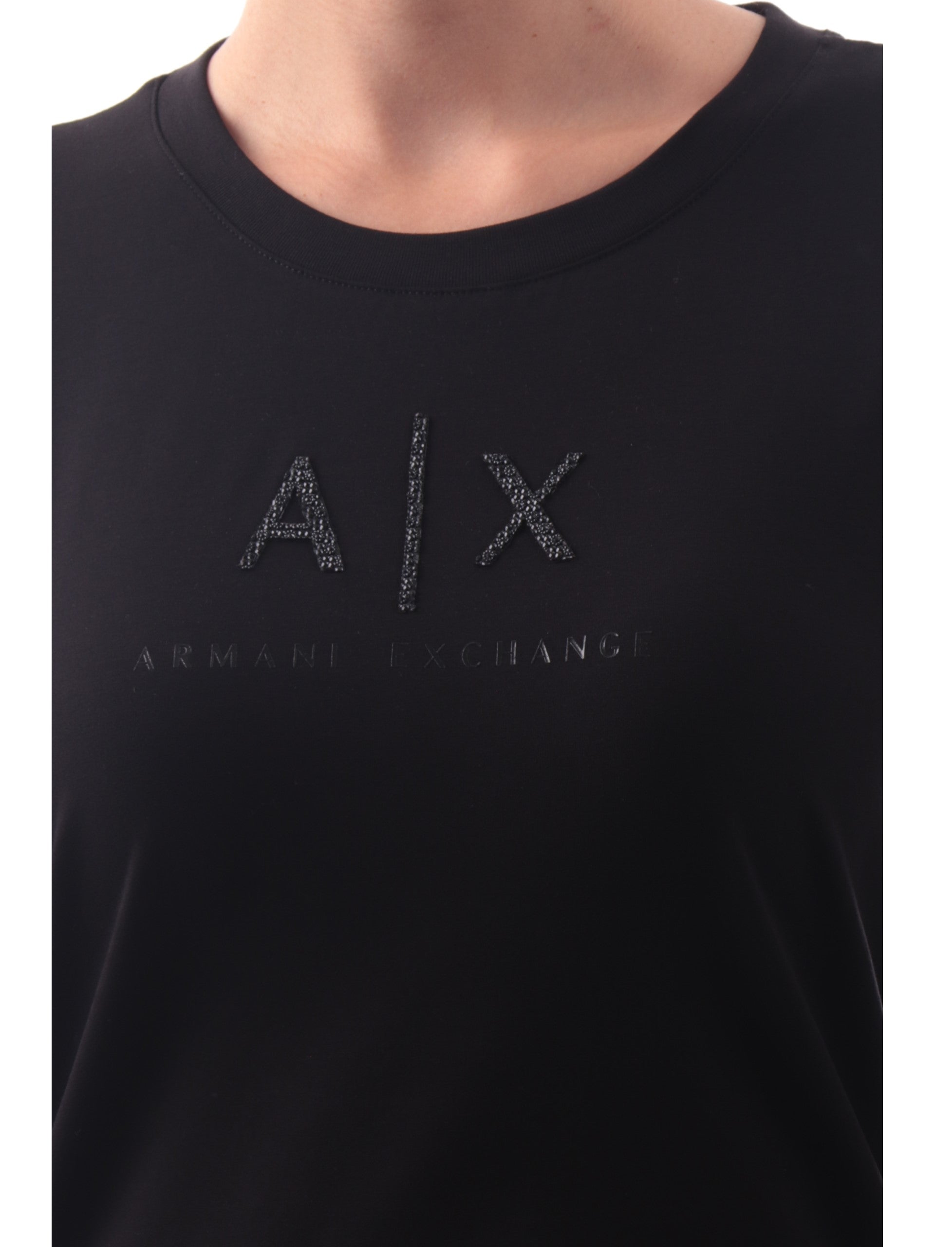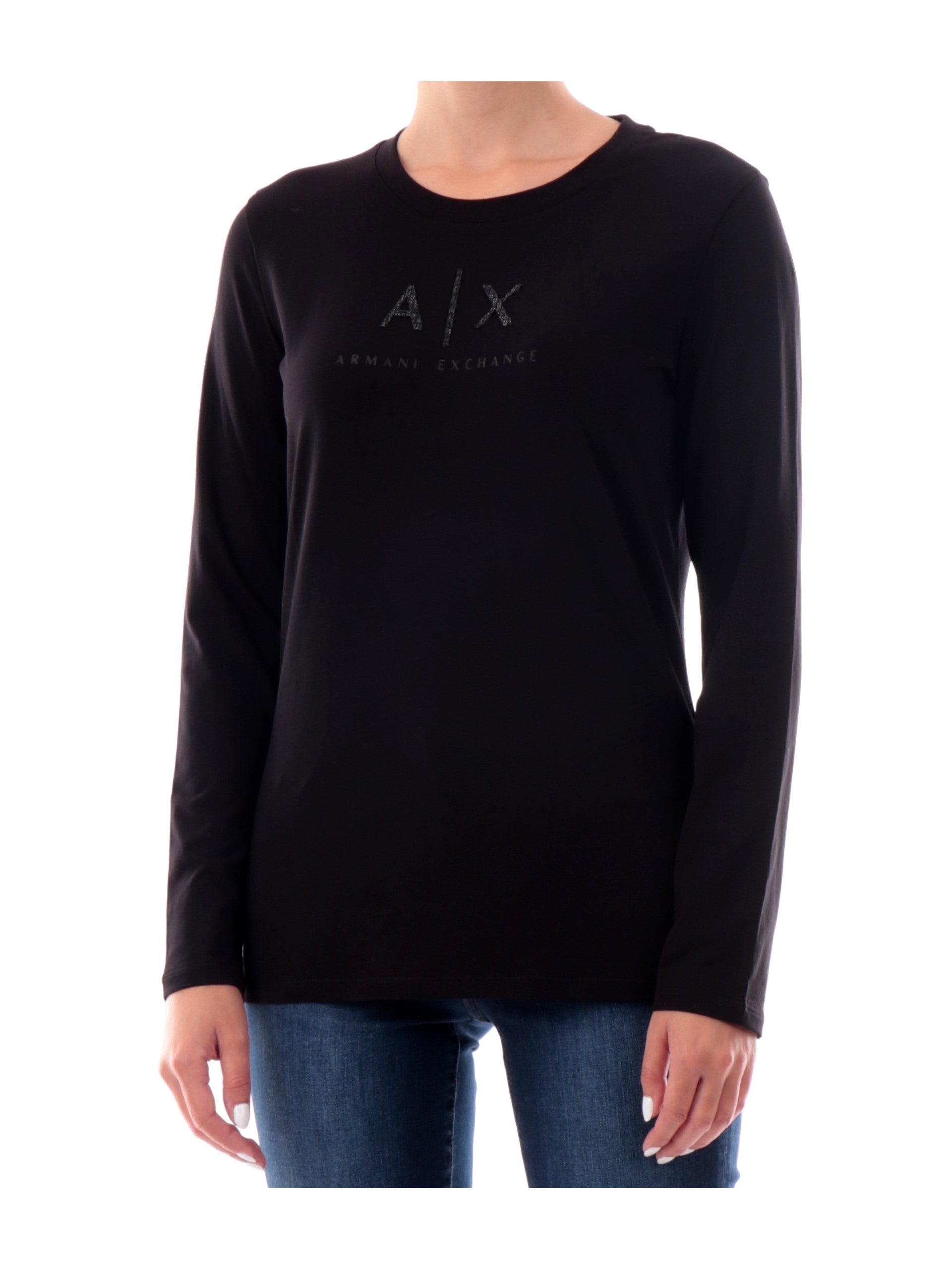 Maglia Maniche Lunghe Armani Exchange Nera da donna con logo strass XW001365AF16294UC001