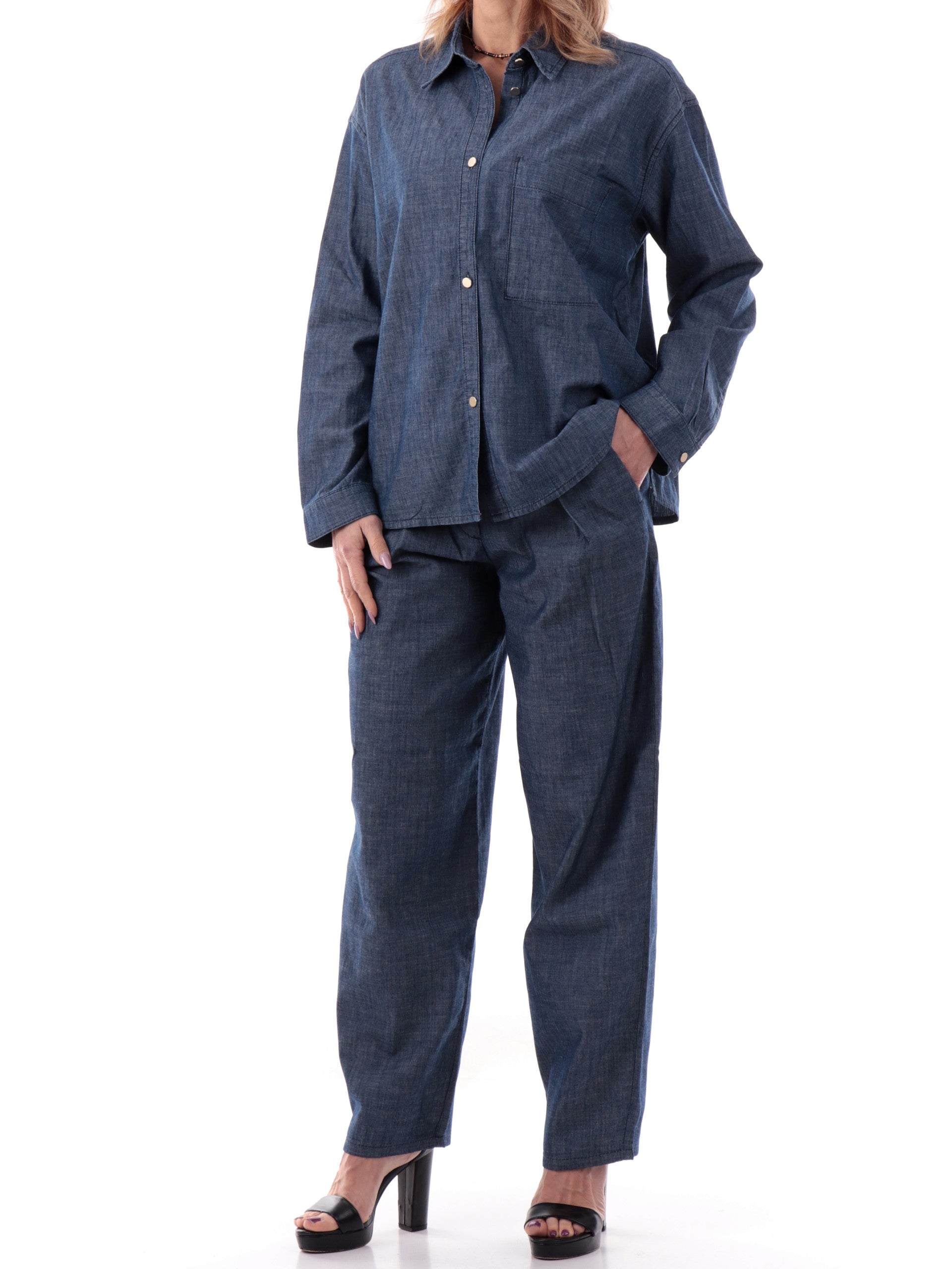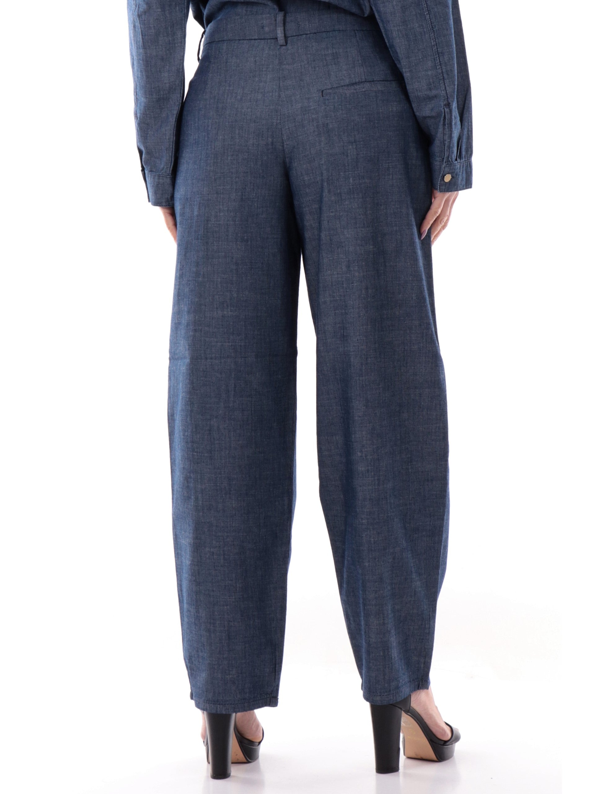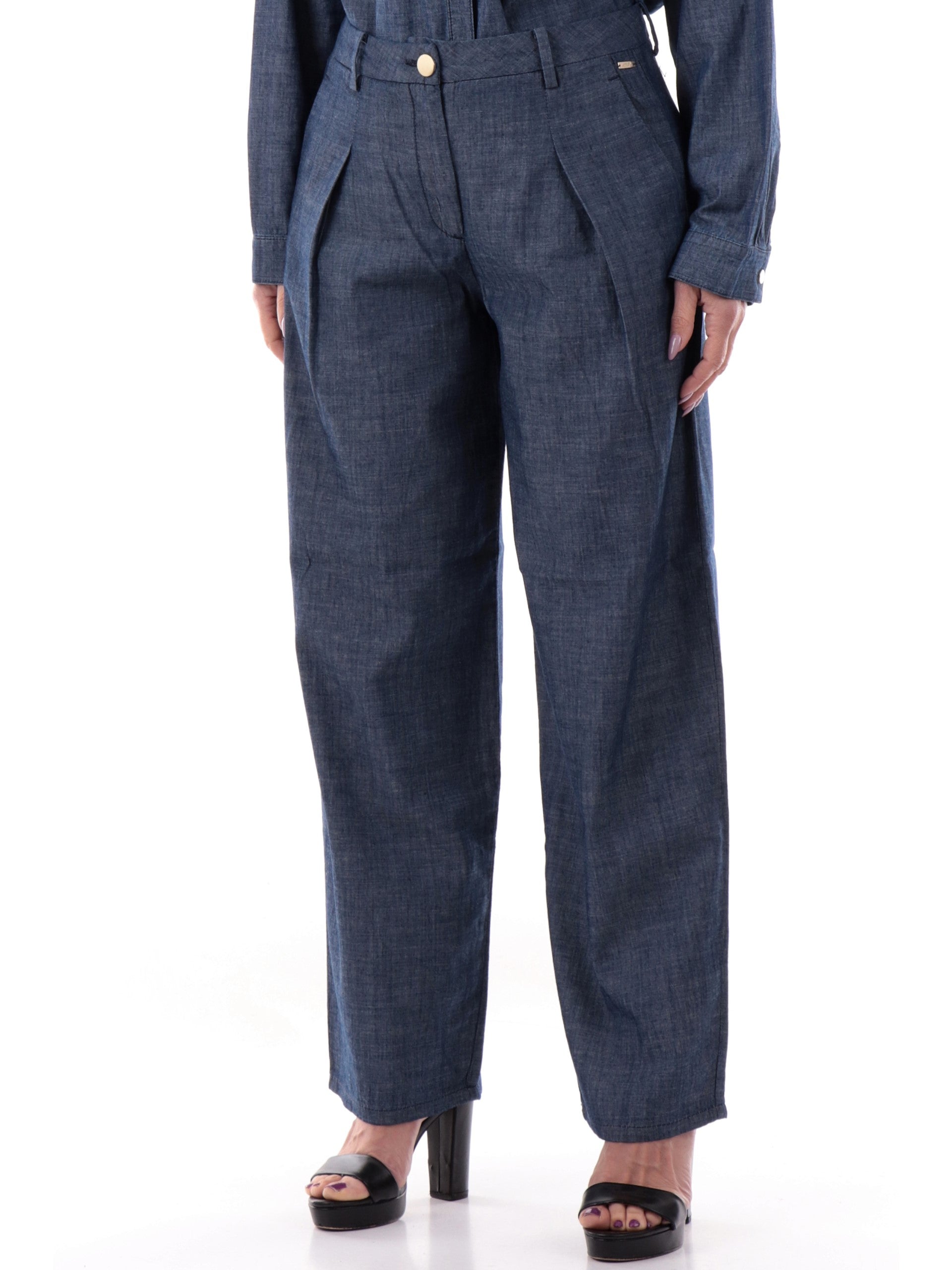 Pantaloni Armani Exchange AX blu jeans da donna XW000574AF1289, realizzati in 100% cotone. Questi pantaloni AX blu hanno la chiusura con bottone più zip, quattro comode tasche e la vestibilità morbida.