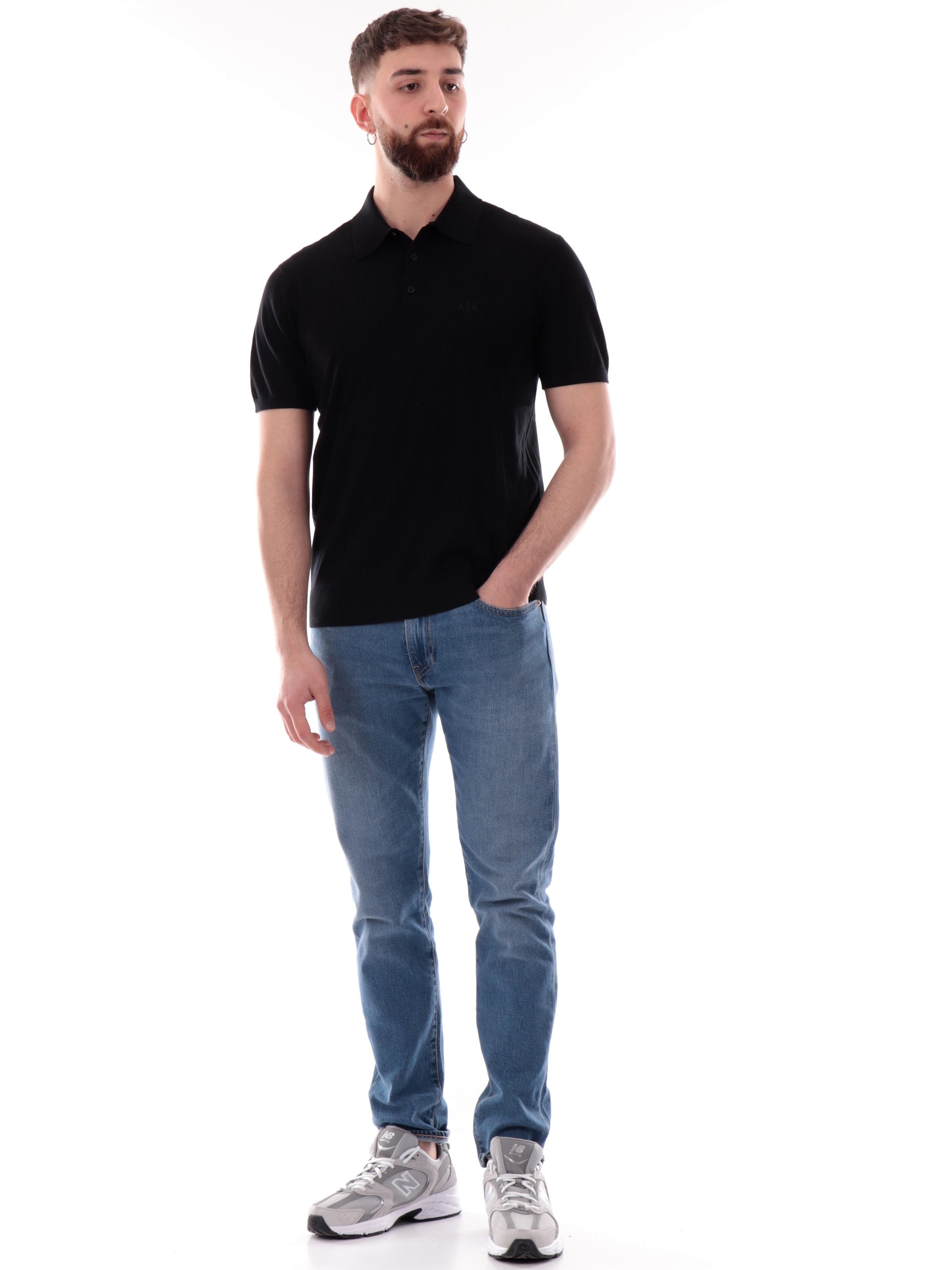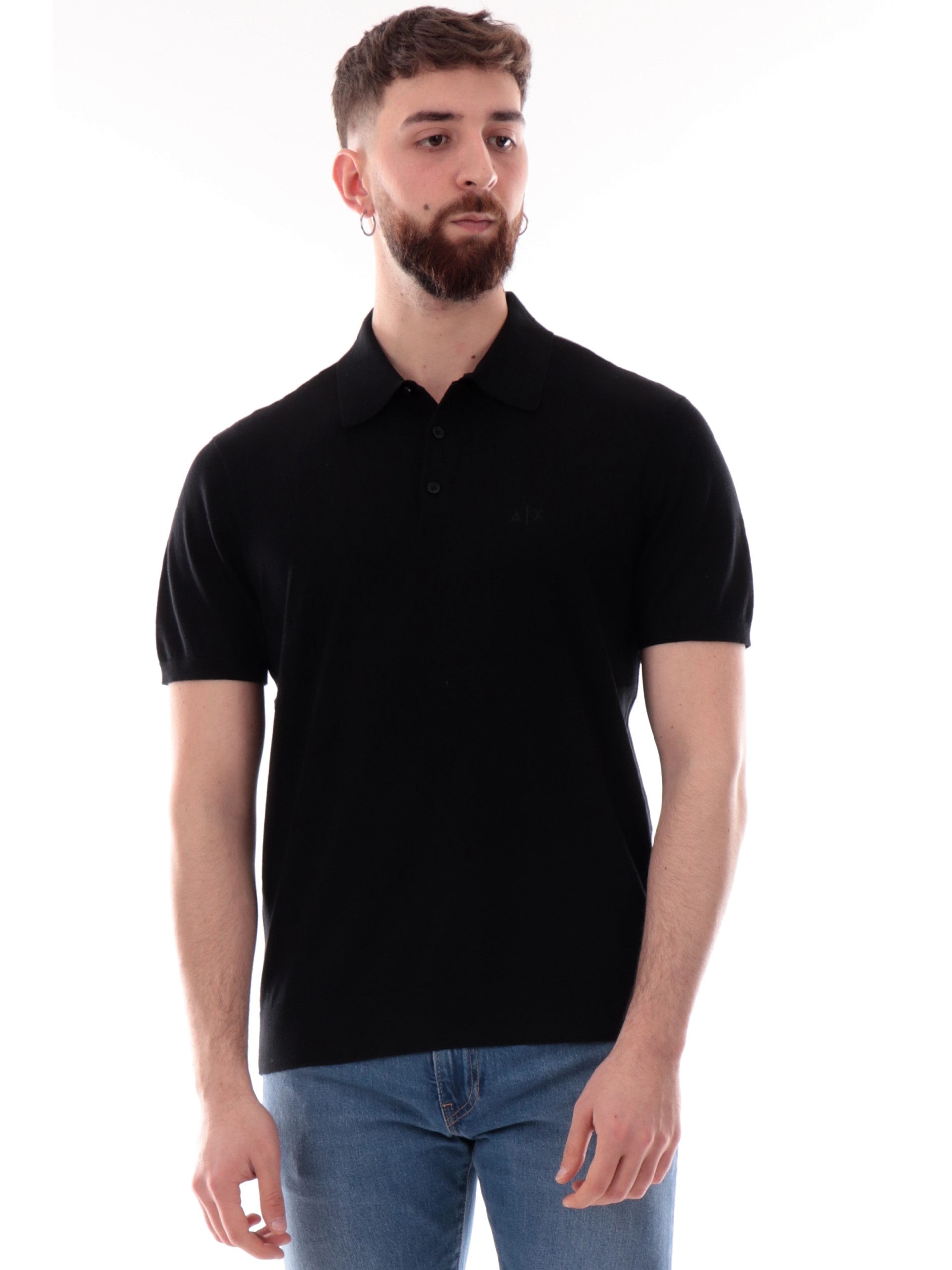 Polo Armani Exchange AX nera da uomo logo AX ricamato 8NZF5DZM3JZ