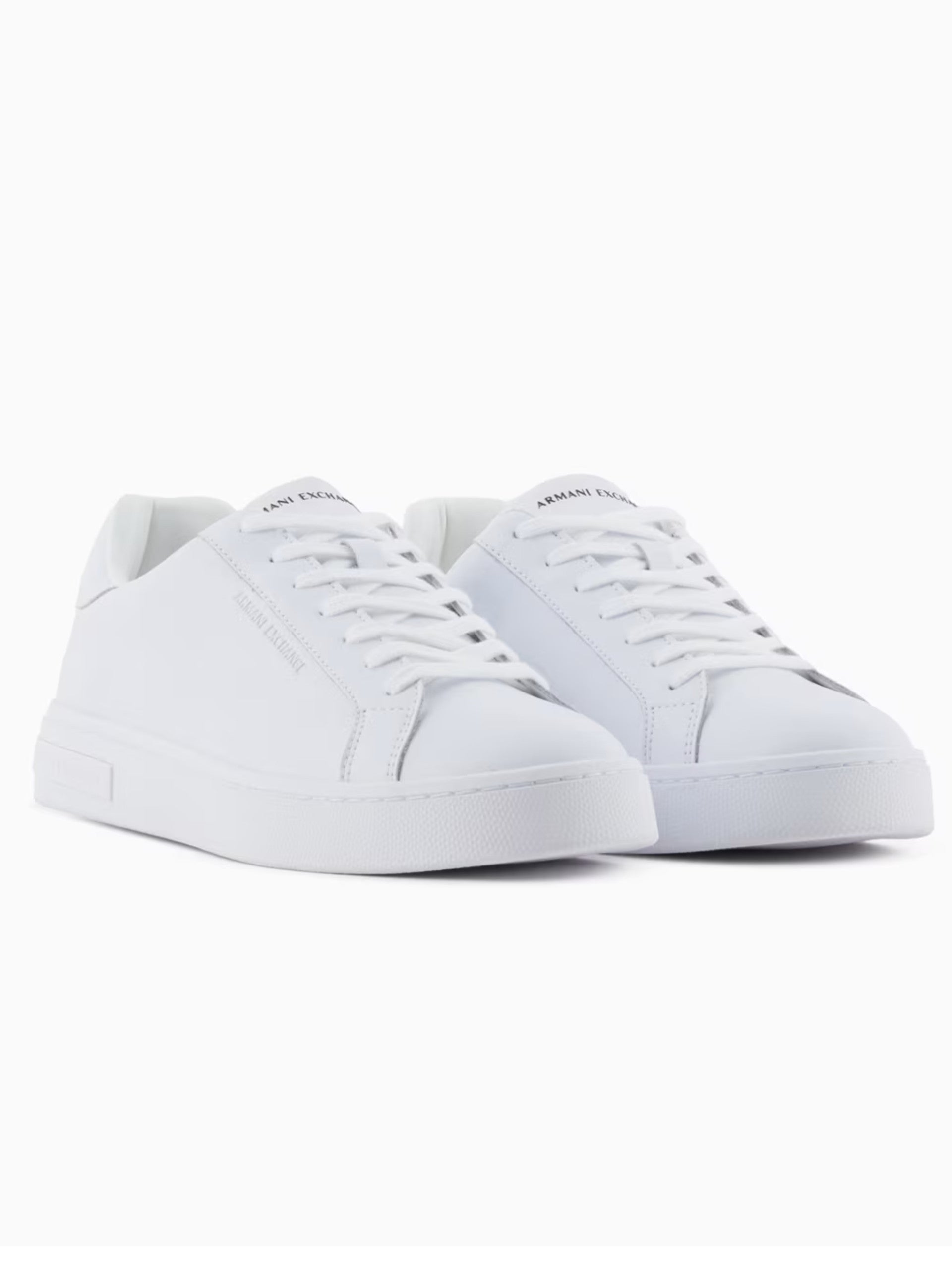 Scarpe Armani Exchange AX bianche da uomo XM000141AFF11912. Queste sneakers AX bianche hanno la tomaia in pelle, la chiusura con lacci, la suola in gomma logata per il massimo del comfort ed il sottosuola antiscivolo per avere maggiore grip su tutte le superfici.
