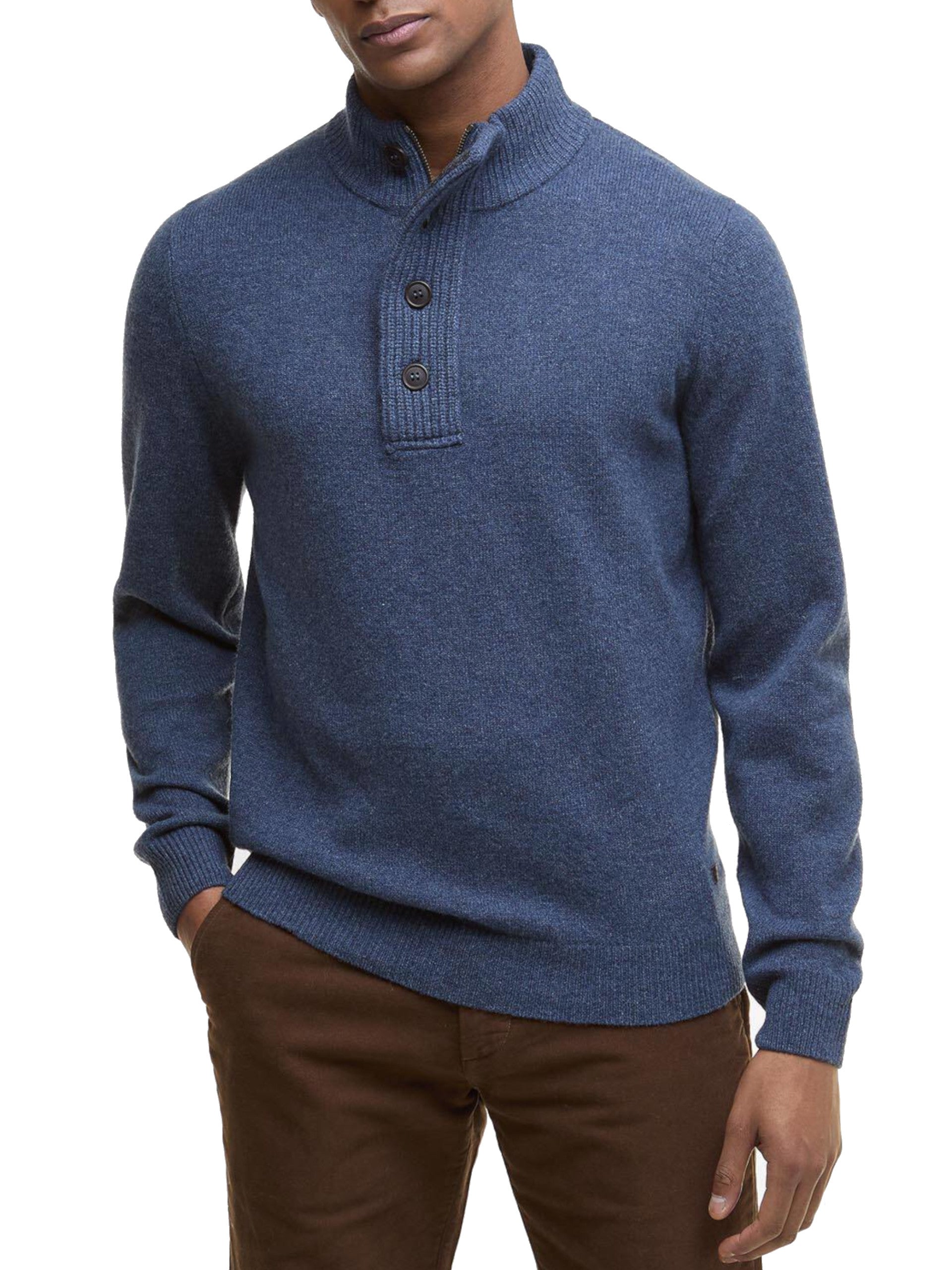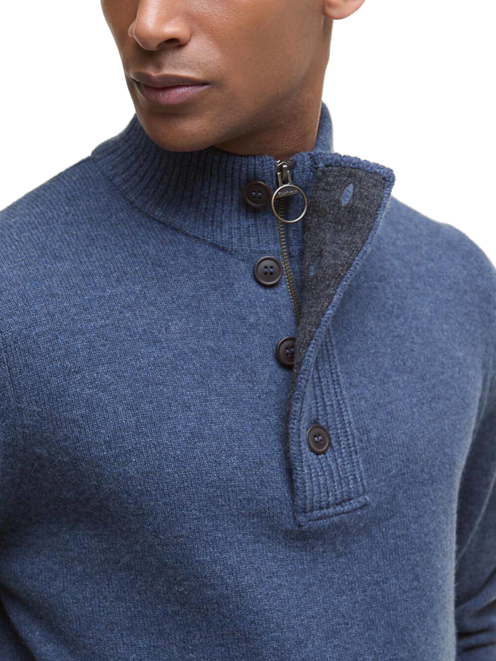 Maglione Barbour Blu da Uomo realizzato in morbida lana calda e soffice al tatto ed è caratterizzato dal collo alto, chiusura con bottoni e toppe sui gomiti. Questo maglione uomo Barbour è perfetto per la stagione invernale