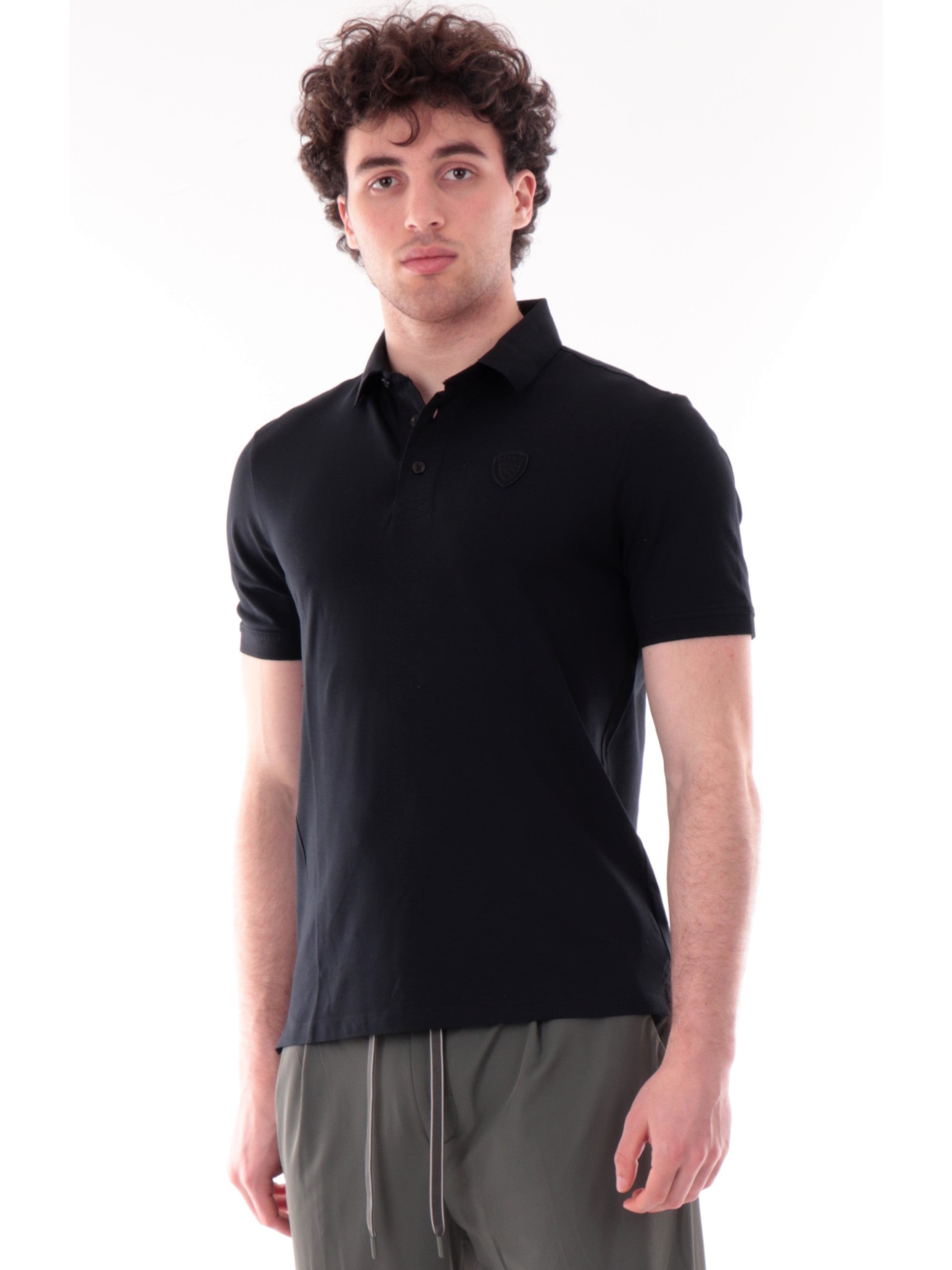 Polo Blauer nera da uomo Albans. Questa polo Blauer realizzata morbido cotone elasticizzato,è caratterizzata da una chiusura con tre bottoni, maniche corte, fondo regolare e il logo applicato a lato cuore. La composizione in cotone rende questa polo morbida al tatto e comoda da indossare