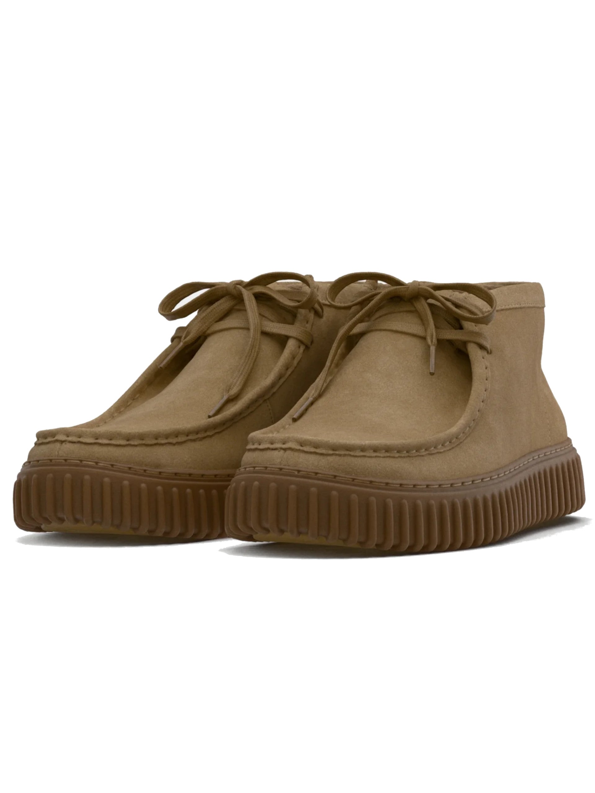 Scarpe Clarks Torhill Hi marroni da uomo 26173663, realizzate in pelle di camoscio. Sul davanti di questi stivali Clarks troviamo una comoda chiusura a lacci e la suola in gomma rinforzata garantisceil massimo comfort.