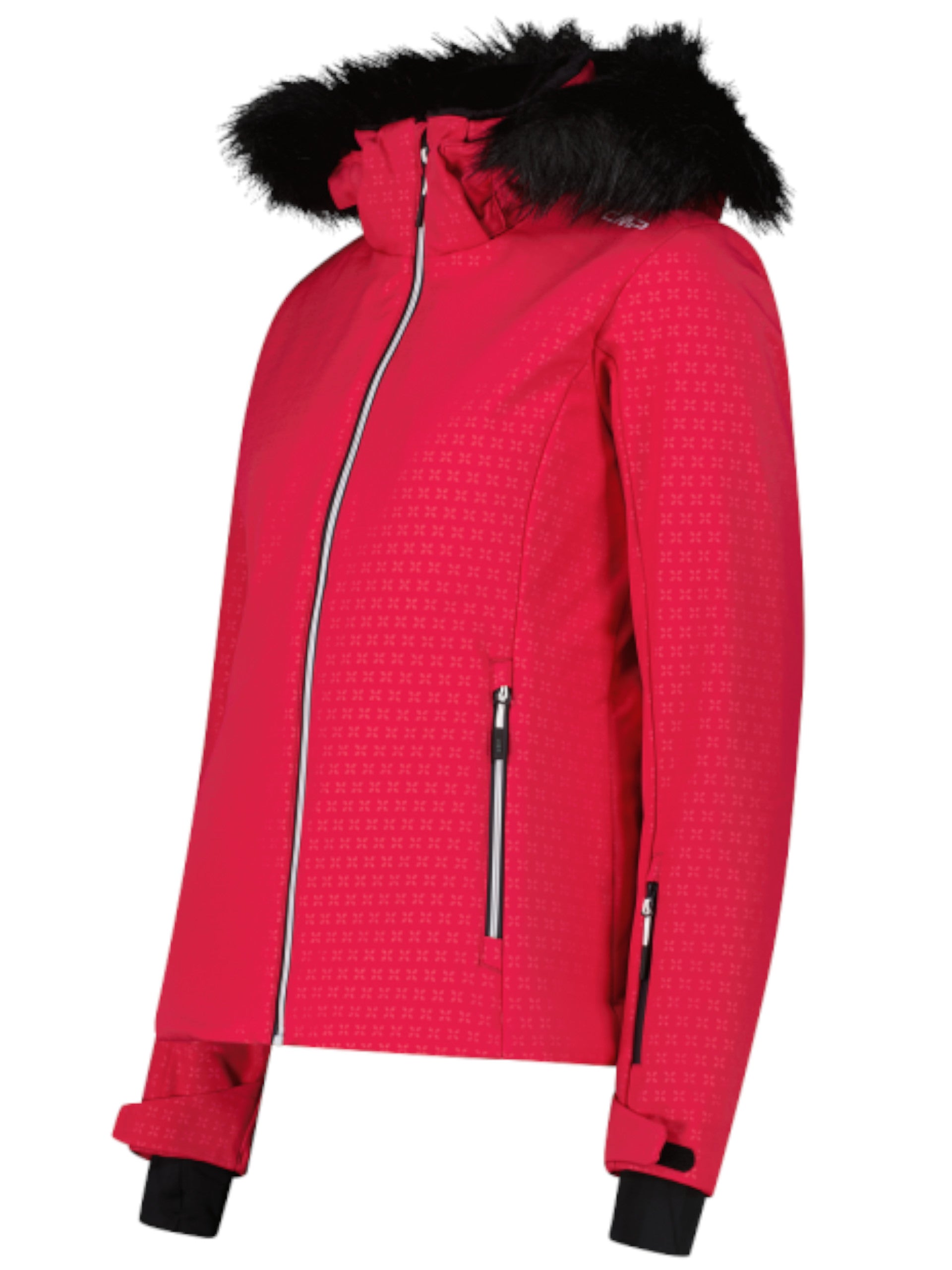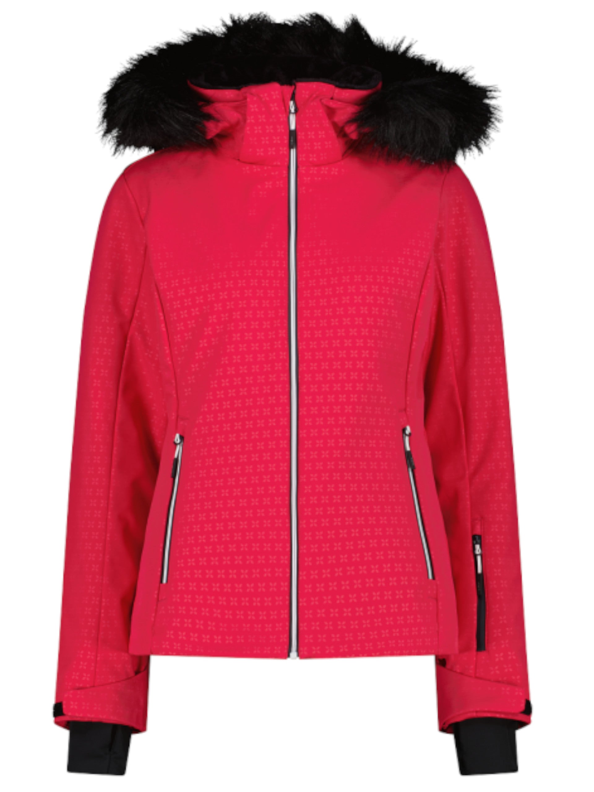 Giacca da sci rosa da donna CMP Zip Hood con cappuccio in eco pelliccia. Questa giacca in softshell stretch è un capo tecnico dal design sportivo, tessuto morbido e confortevole con imbottitura in Feel Warm Flat, calda e performante anche in condizioni di bagnato. Tra i tessuti il laminato termico ClimaProtect che assicura l'impermeabilità e la traspirabilità necessarie nelle sciate intense. All'esterno il trattamento idrorepellente impedisce all'acqua di penetrare. Questa giacca da neve è caratterizzata da coulisse in vita per una migliore aderenza, cappuccio staccabile in ecopelliccia, tre tasche esterne con zip e quelle interne con mesh completano il capo, il taschino per lo skipass