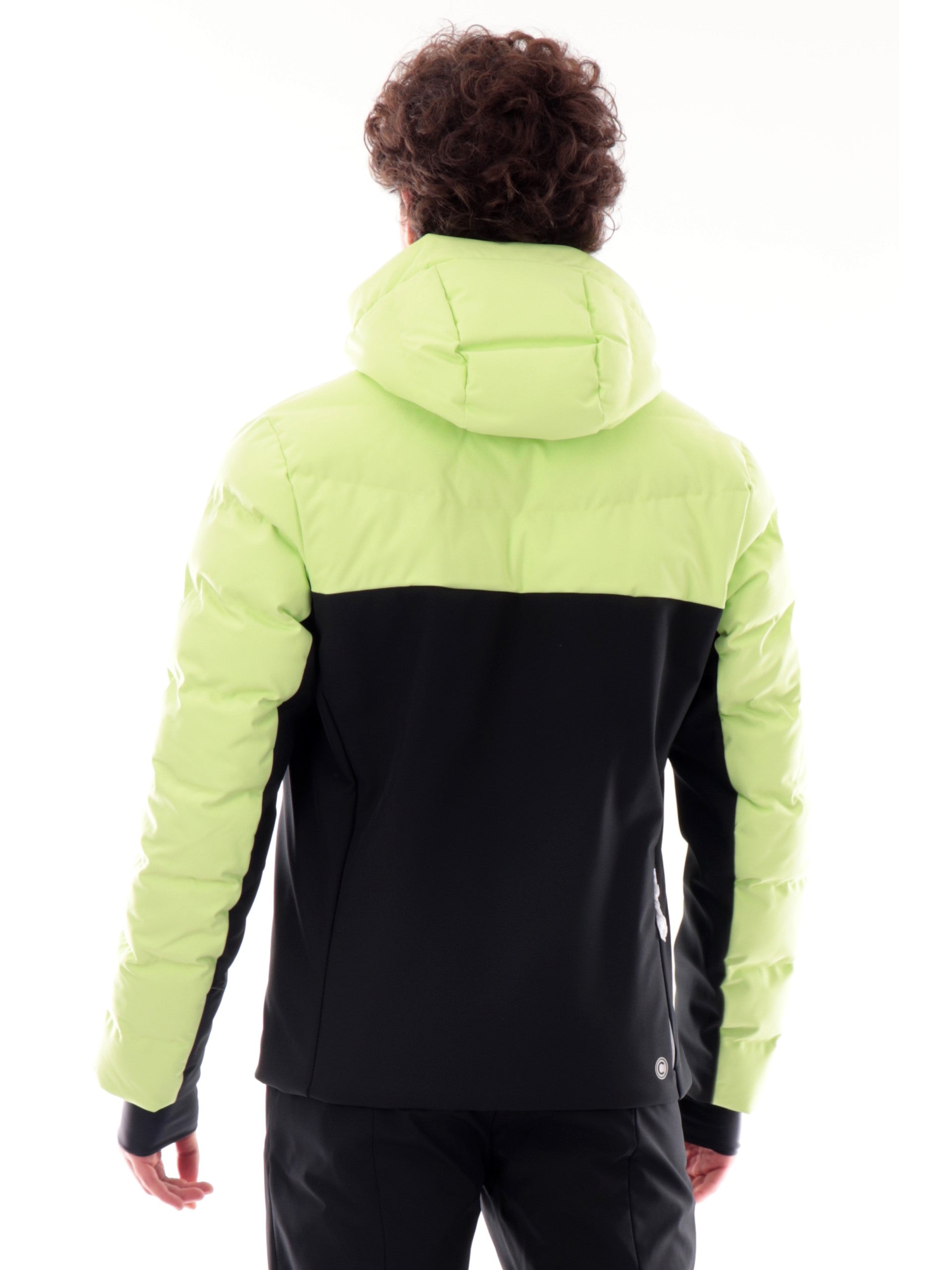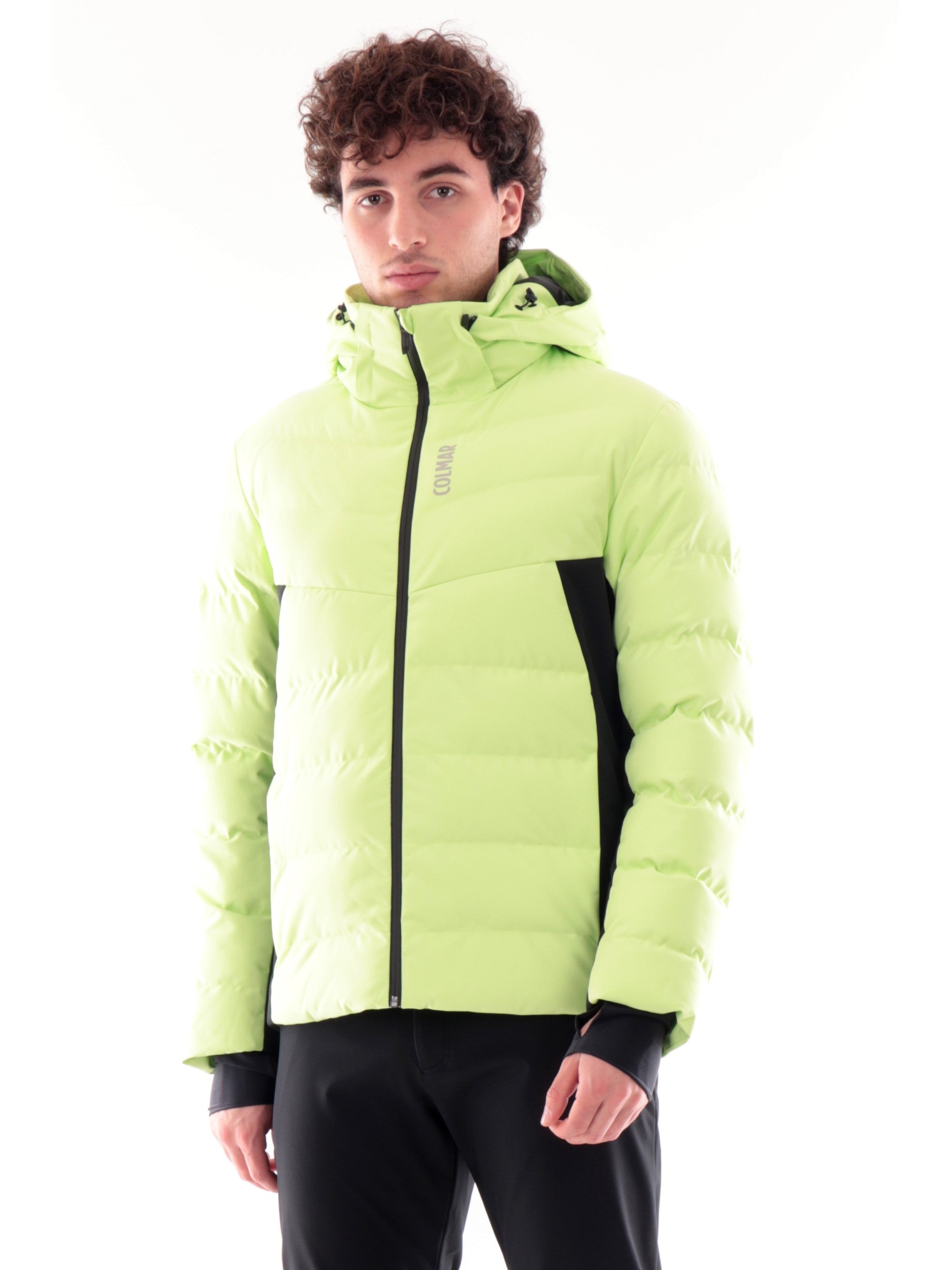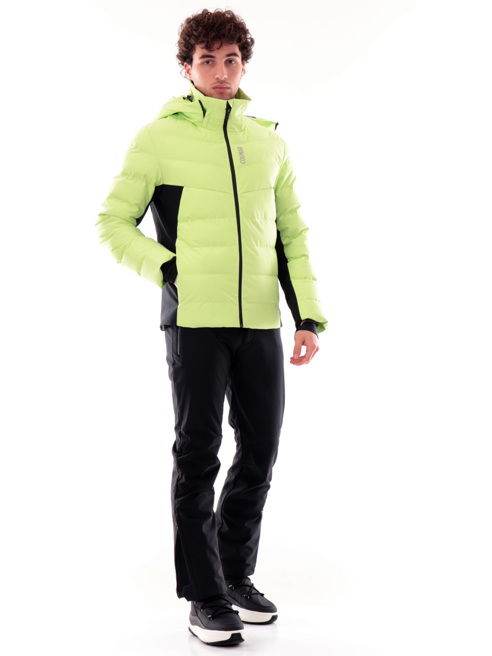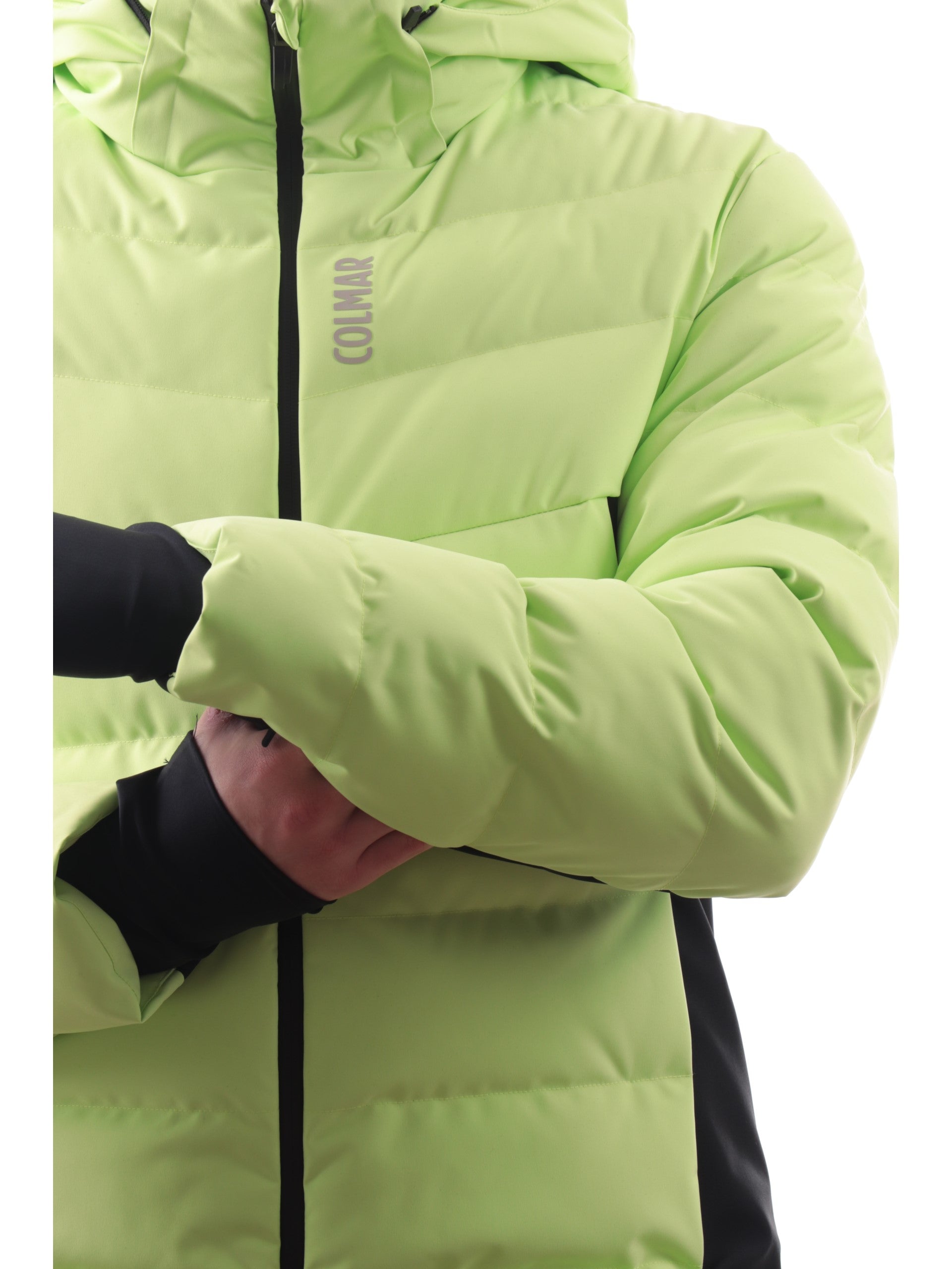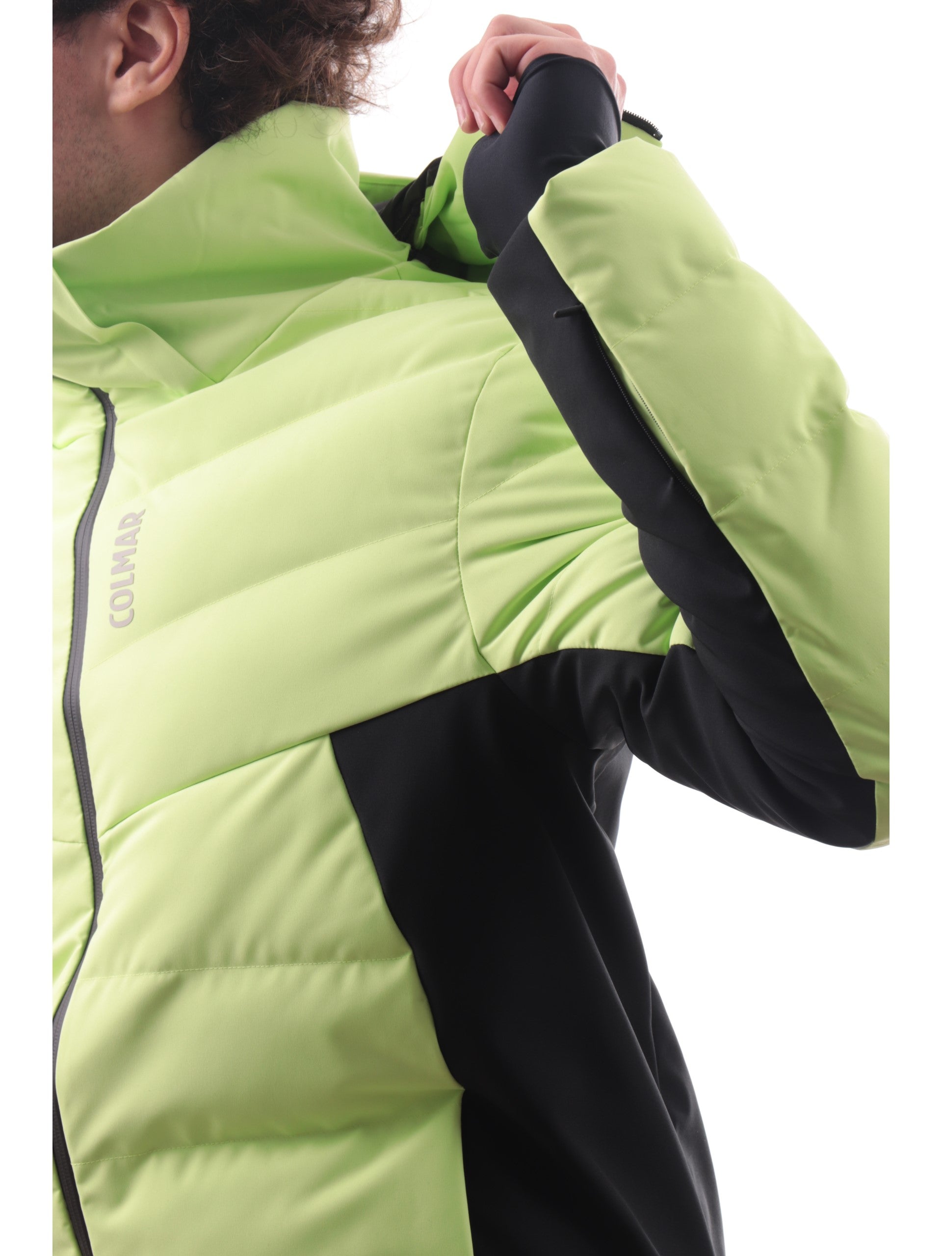 Giacca da sci gialla da uomo Colmar con cappuccio removibile. Questa giacca da neve da uomo unisce due tessuti tecnici e una doppia imbottitura per garantire comfort e performance, la parte trapuntata in Microflock Re-Padding è realizzata in tessuto stretch meccanico, impermeabile e traspirante, mentre gli inserti in softshell stretch sono imbottiti con ovatta Ecosoft. Grazie a questa combinazione, la giacca offre massima libertà di movimento, traspirabilità e il giusto calore per affrontare al meglio ogni condizione sulle piste. Questo giubbino colmar giallo da uomo è caratterizzato dal cappuccio removibile con coulisse, chiusura centrale full zip, due tasche laterali con zip, polsini elasticizzati con un taschino e fondo regolare, all'interno troviamo due tasche con zip e una tasca aperta