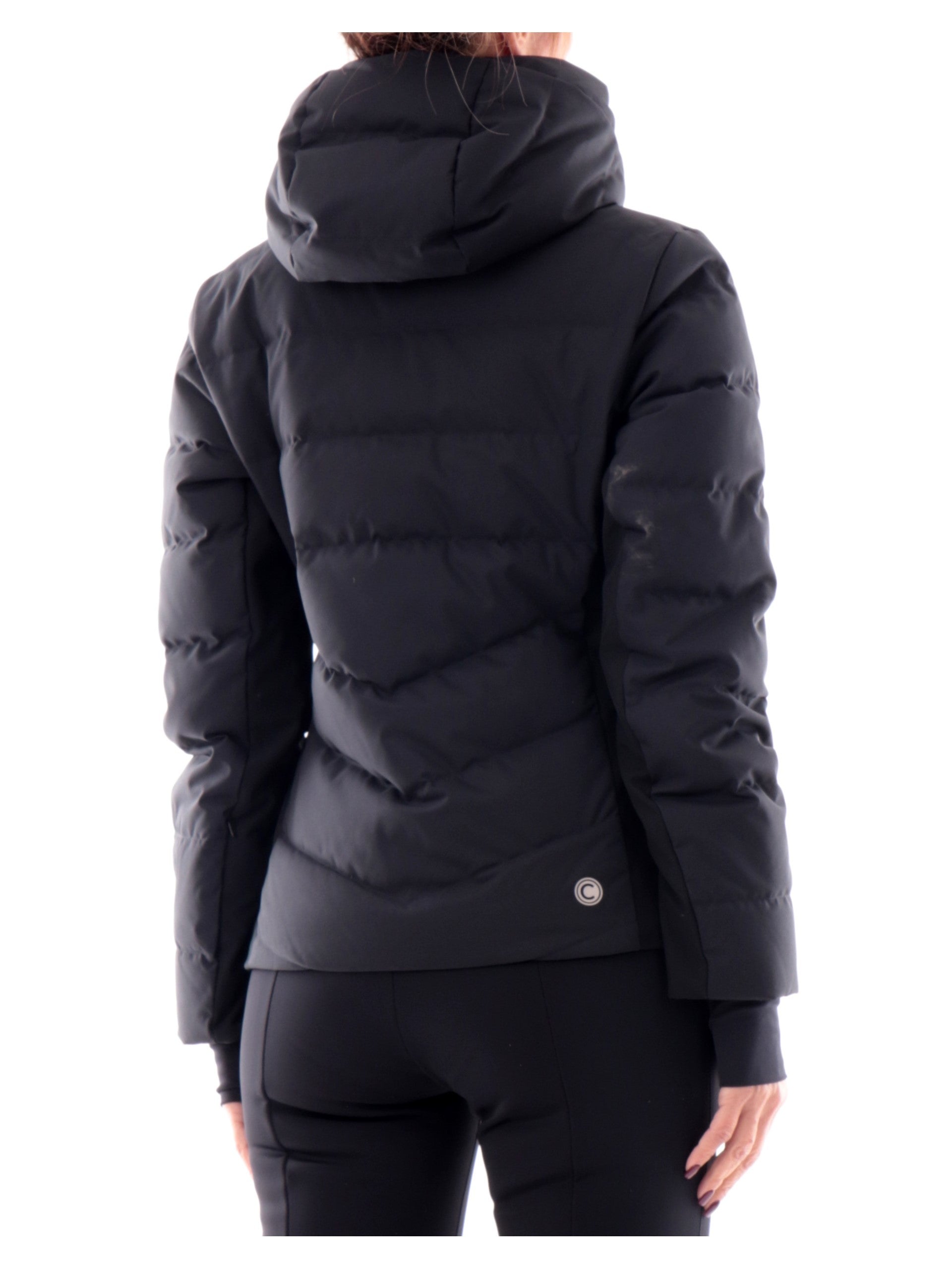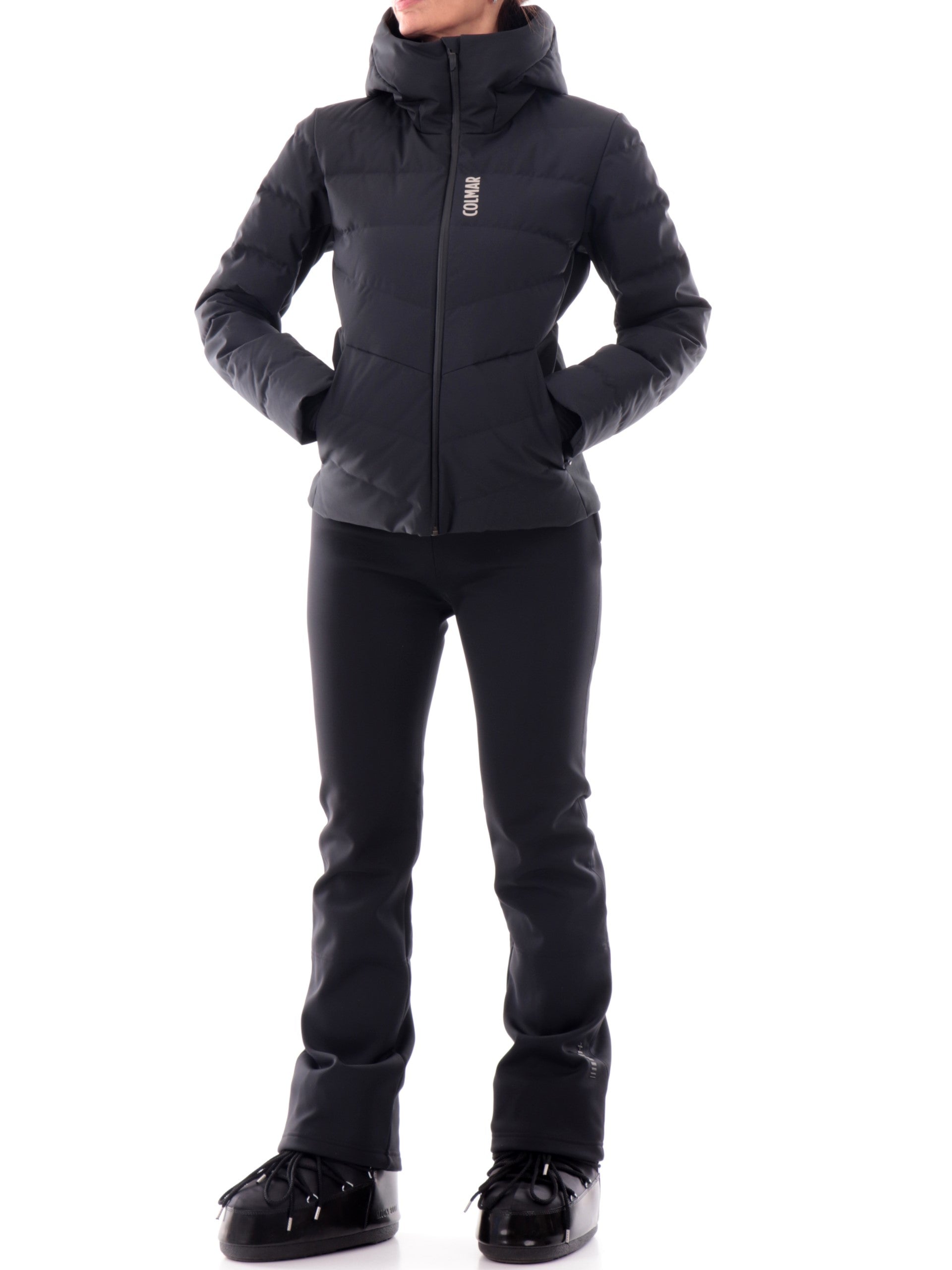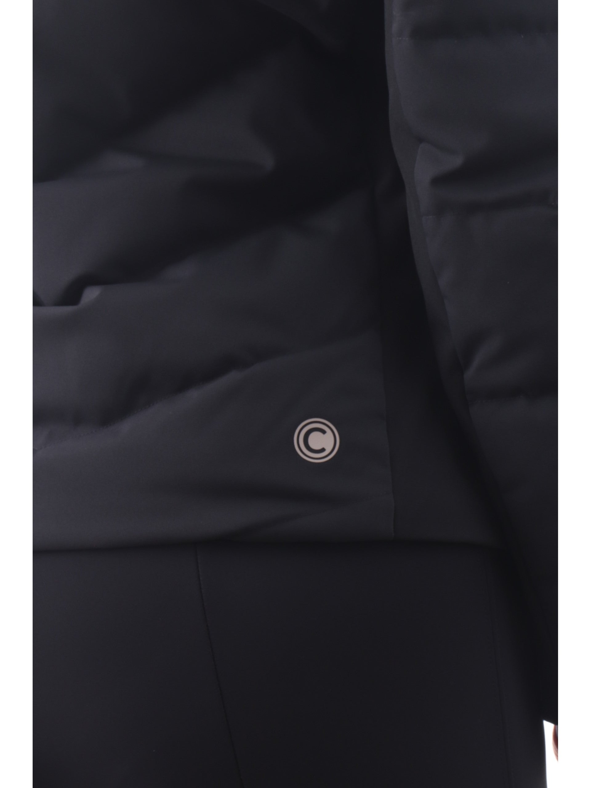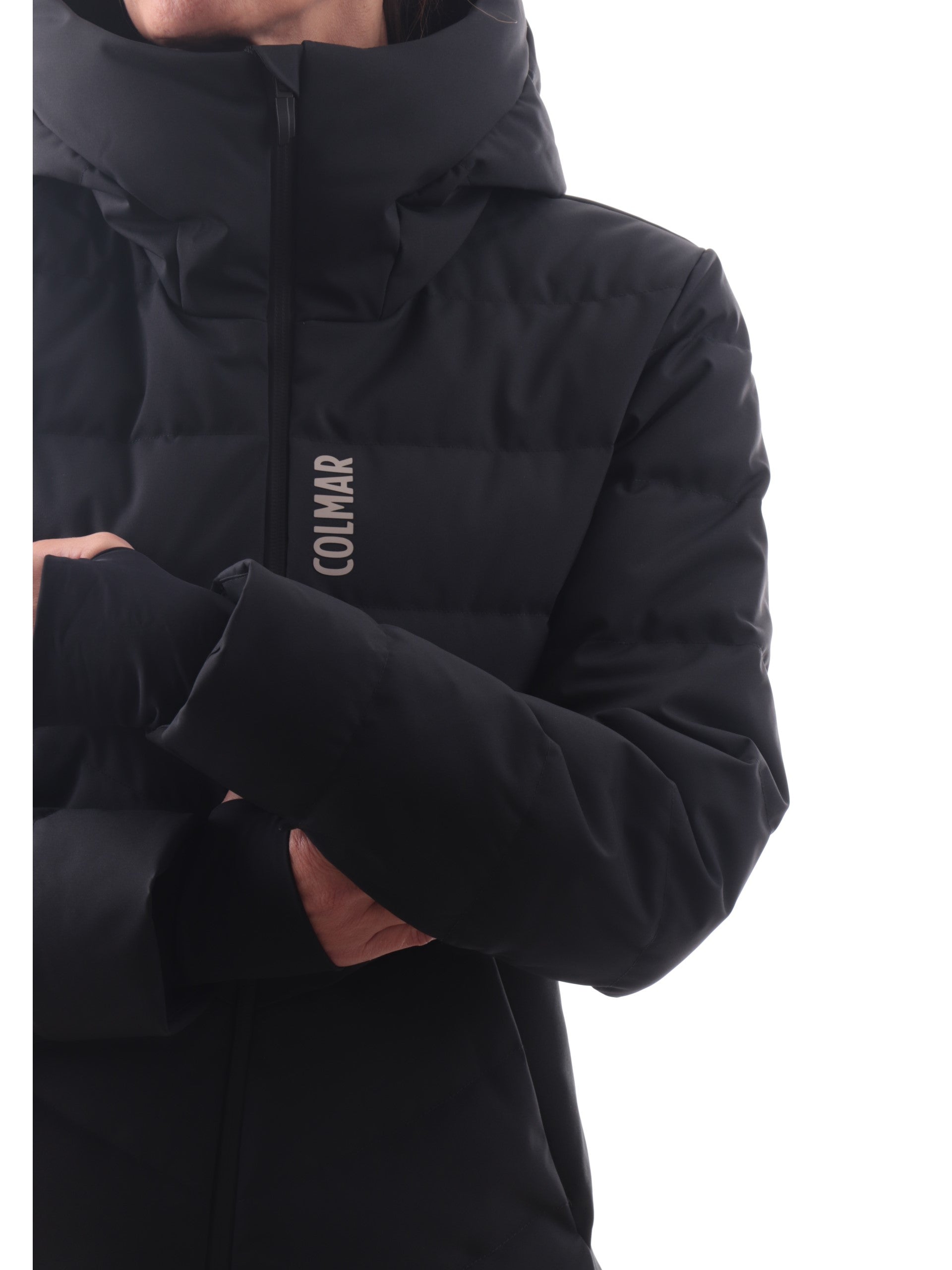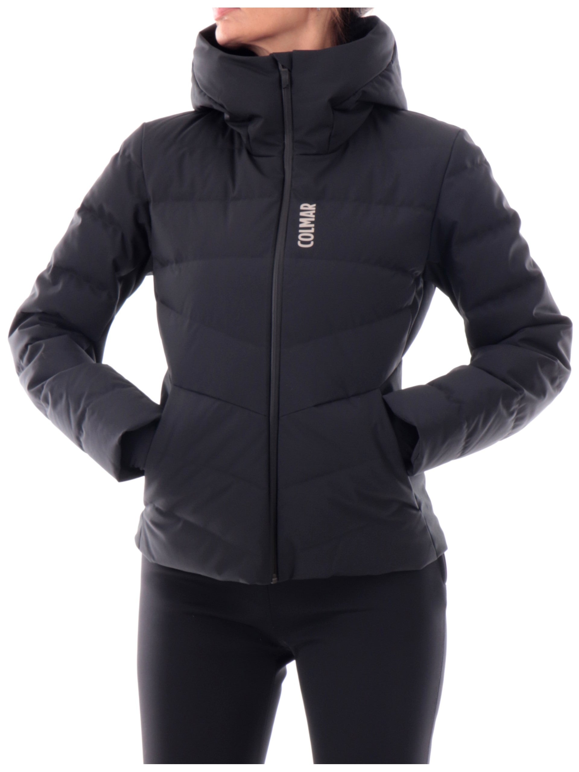 Questo giubbino nero da sci Colmar da donna realizzato in tessuto stretch meccanico laminato, impermeabile e traspirante, questa giacca da sci è arricchita da inserti lisci in softshell elasticizzatosotto le maniche e lungo i fianchi, per una vestibilità confortevole e dinamica. L’imbottitura in piuma idrorepellente garantisce calore elevato e prestazioni eccellenti anche nelle giornate più fredde. Questo giubbino Colmar è caratterizzato dal cappuccio fisso con coulisse, colloalto, chiusura full zip centrale, due tasche laterali con zip, gancio portachiavi inserito nella tasca, polsi interniin stretch, inserti in tessuto stretch, fondo regolare e due tasche interne