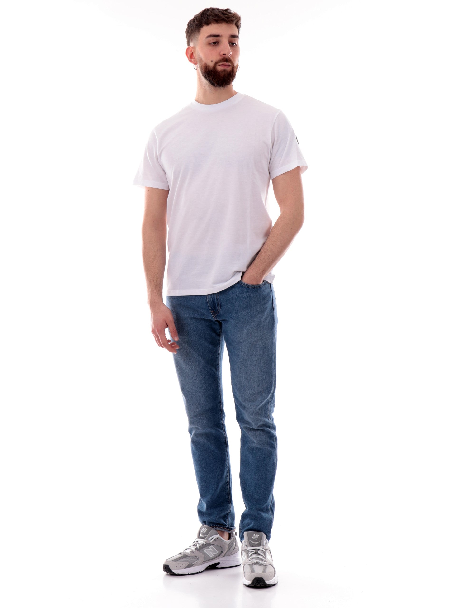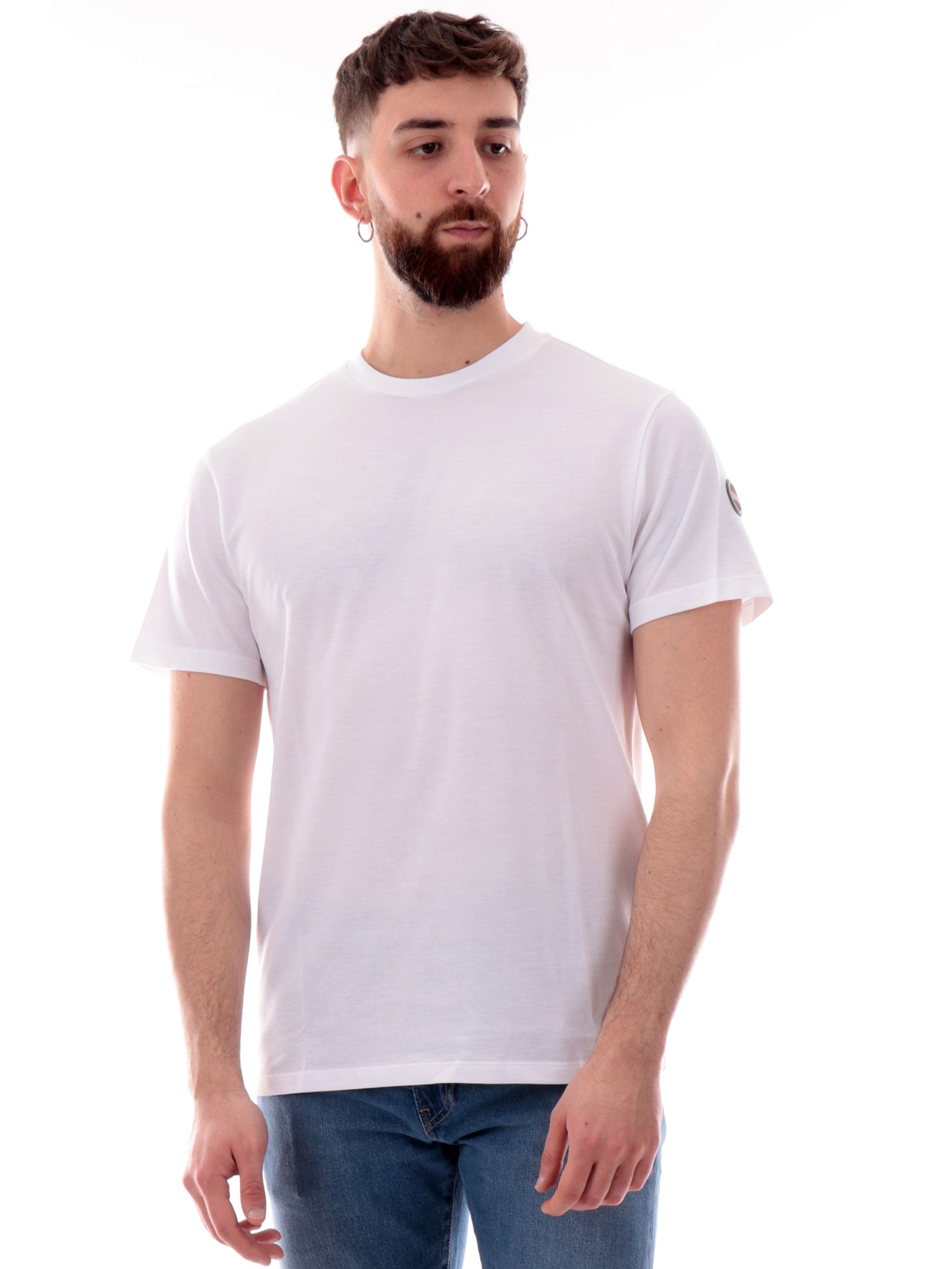 Maglia Colmar bianca girocollo da uomo con patch Colmar gommato 75207XH, realizzata in 100% puro cotone. Questa t-shirt Colmar bianca girocollo ha le maniche corte e il patch Colmar applicato sulla manica sinistra.
