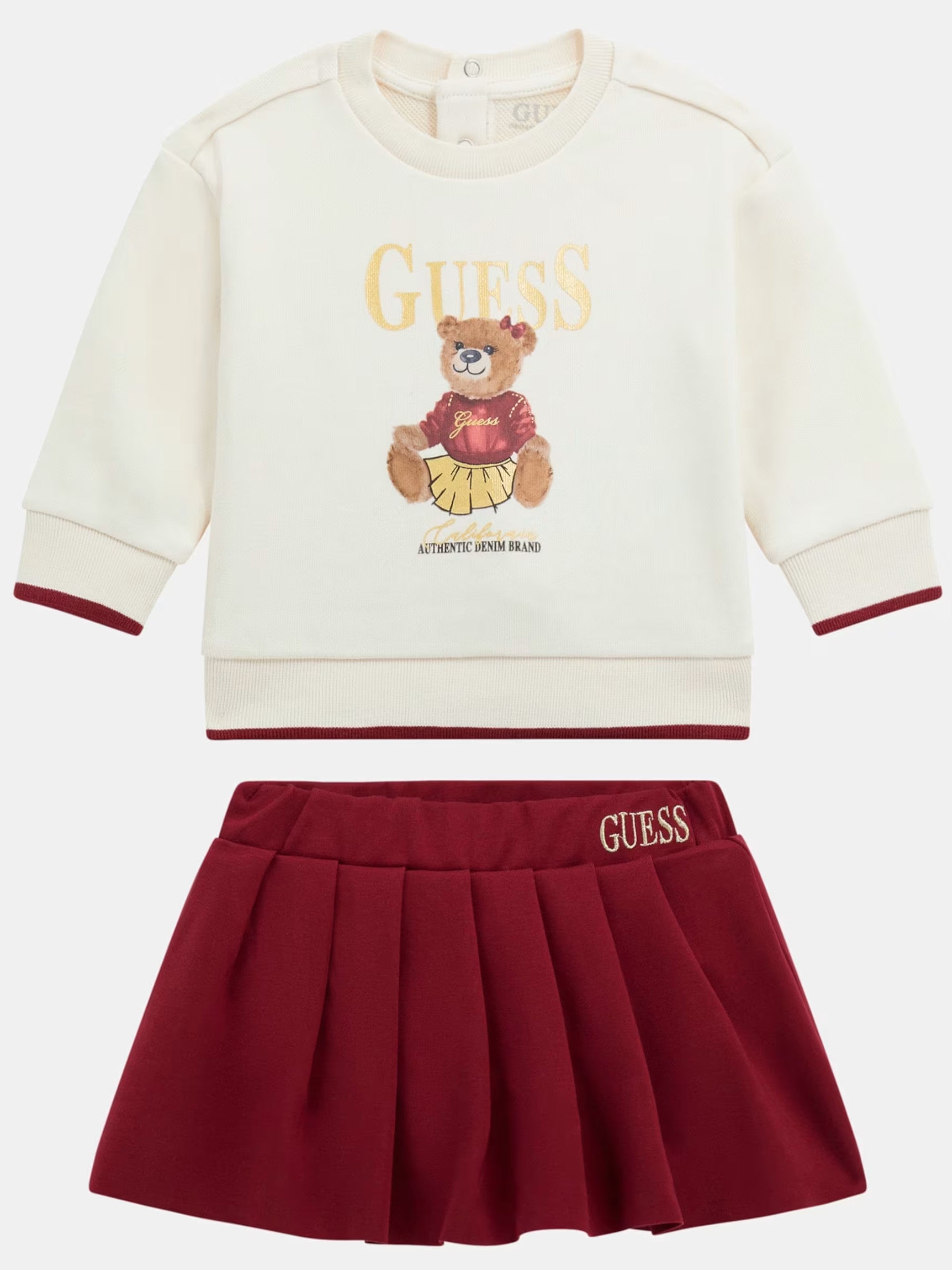 Completo Guess bianco e rosso da neonata con gonna A5BG01KAD74