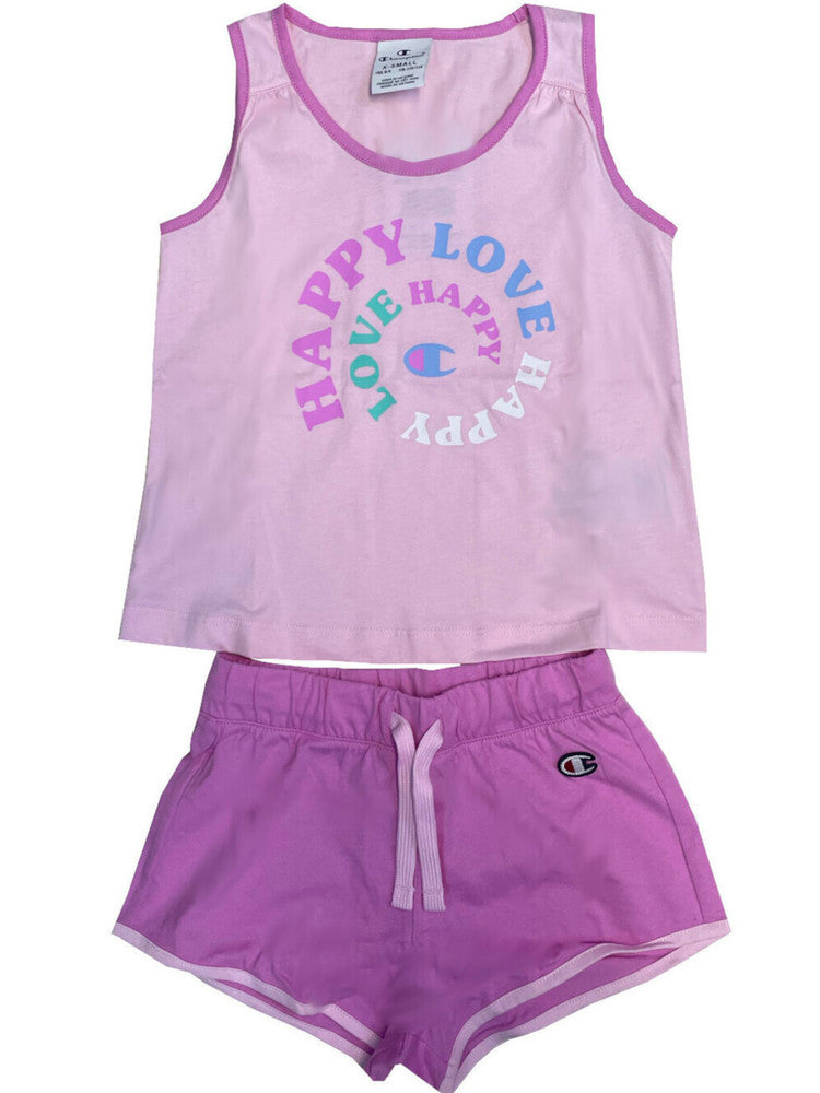 Completo mare Champion rosa da bambina canotta e shorts 404967