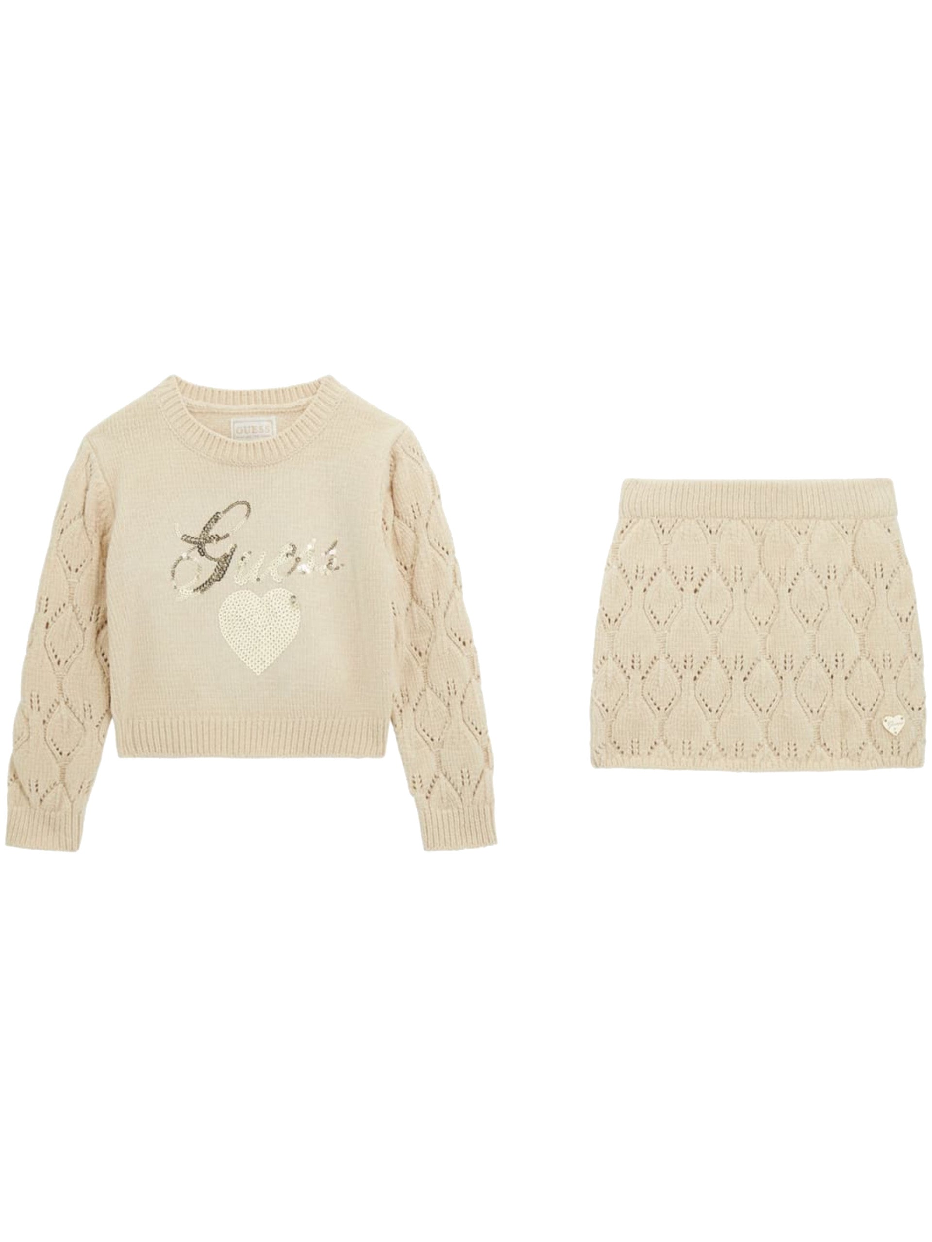 Completo Guess maglione e gonna beige da bambina con paillettes K5BG01Z3OC0