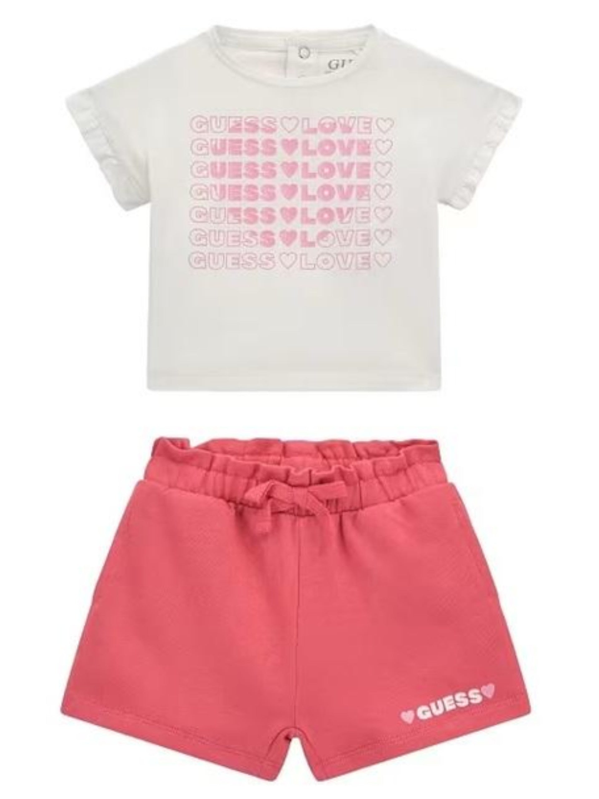 Completo Guess bianco e fucsia da neonata in cotone A5GG17K6YW4