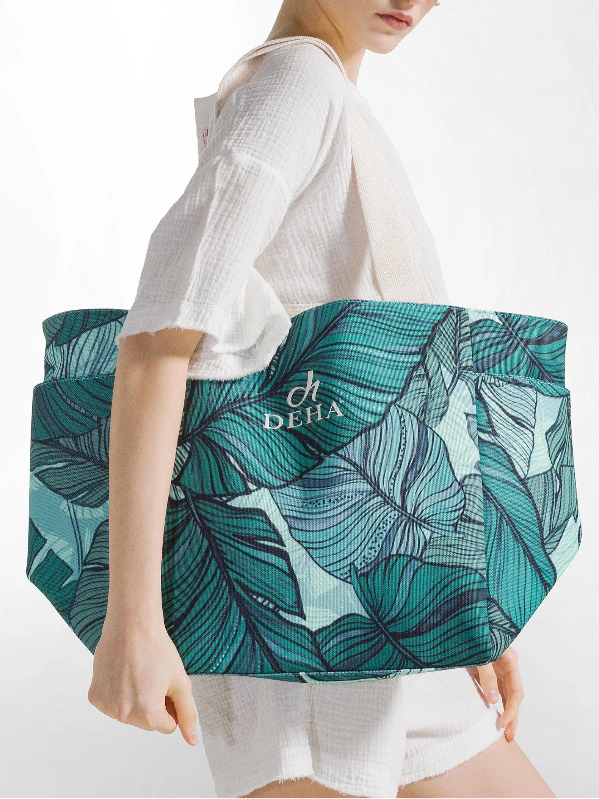 Borsa Deha verde stampa floreale da donna Shopper D22932. Questa borsa donna Deha ha il doppio manico con salvaspalla, la chiusura regolabile con coulisse, il logo Deha sul davanti e la stampa floreale all over. All'interno di questa borsa verde Deha troviamo un unico grande scomparto con tre tasche interne.