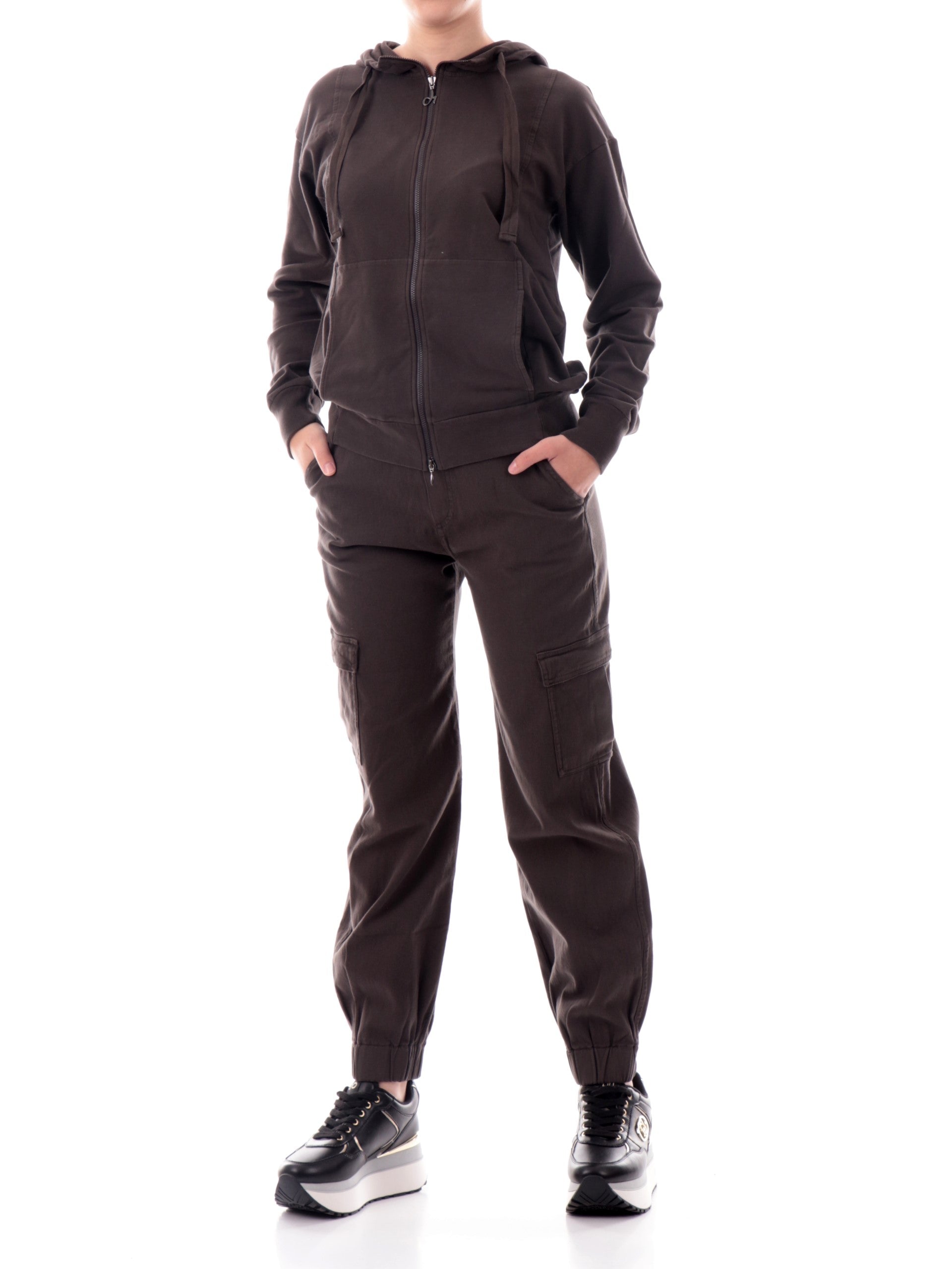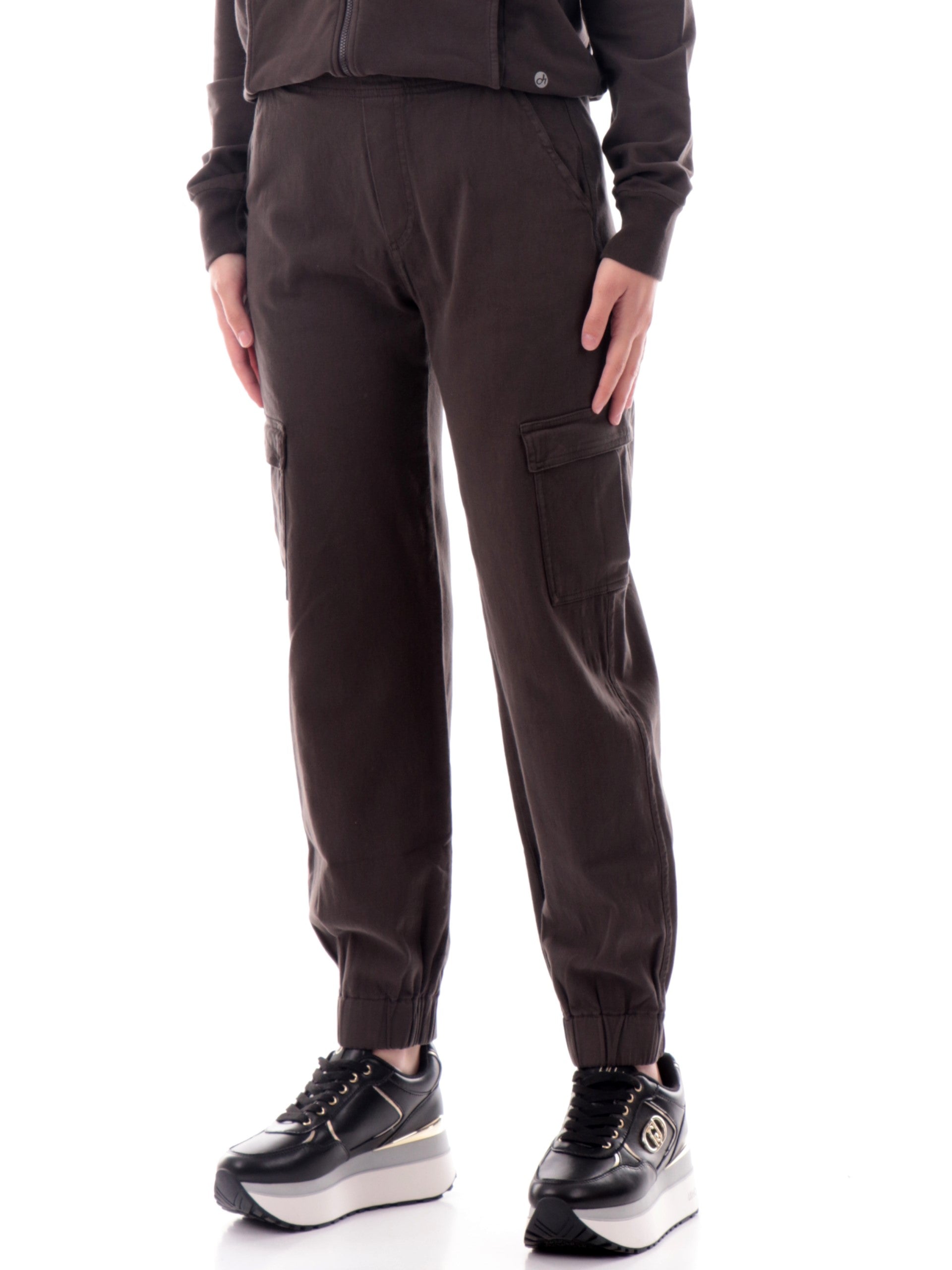 Pantaloni cargo marroni Deha da donna. Questi pantaloni cargo Deha sono realizzati in cotone e sono caratterizzati da due tasche laterali oblique aperte, due tasche con patta sul davanti, hanno la banda elastica sul punto vita e il fondo elasticizzati. Questi panatloni marroni cargo Deha sono perfetti per un look di tutti i giorni
