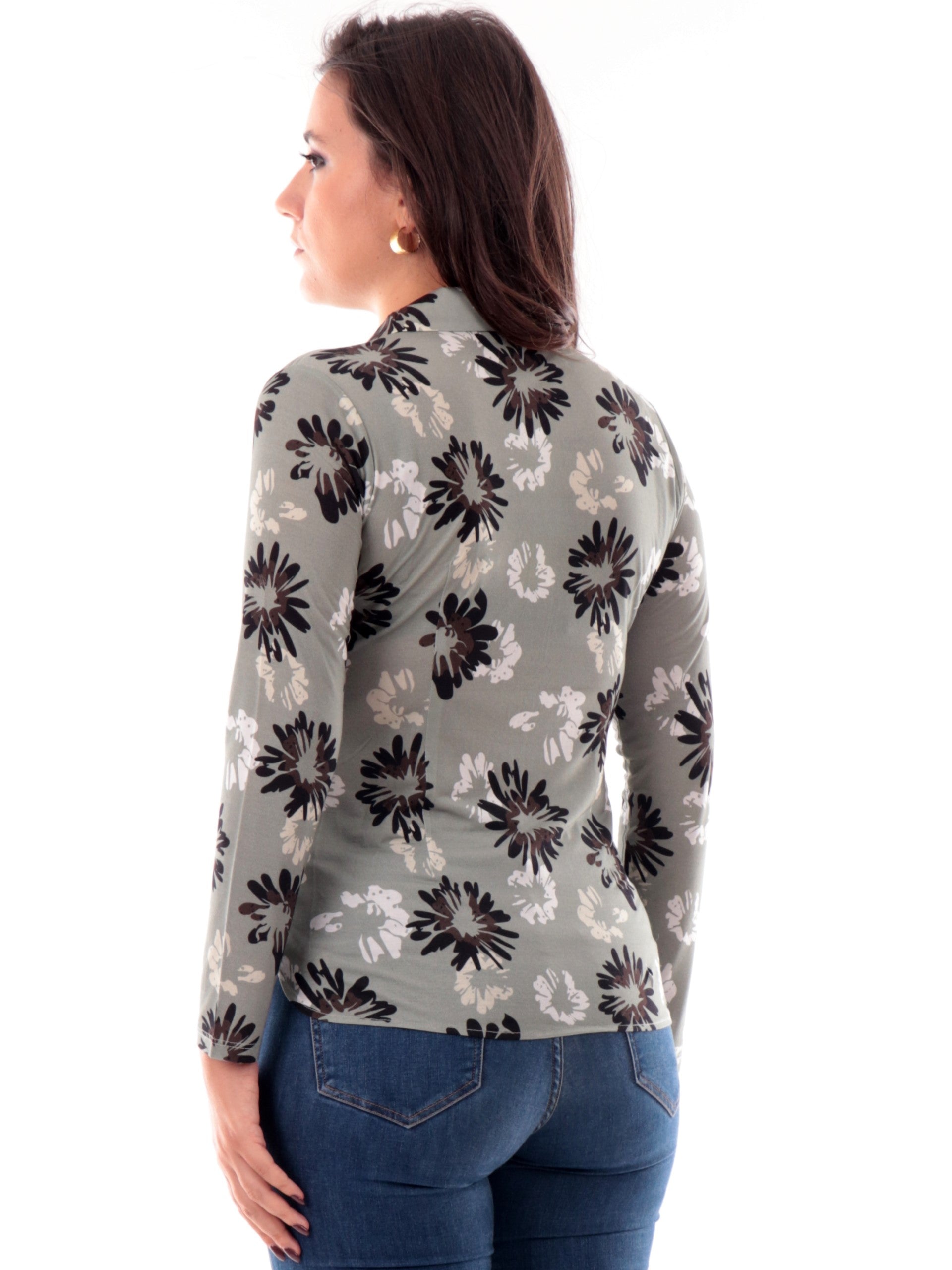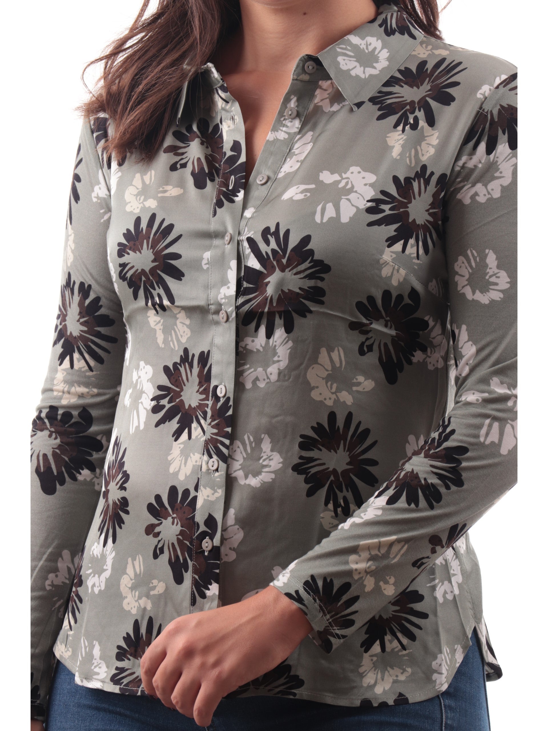 Camicia raso Anis verde da donna stampa fiori 255W1425
