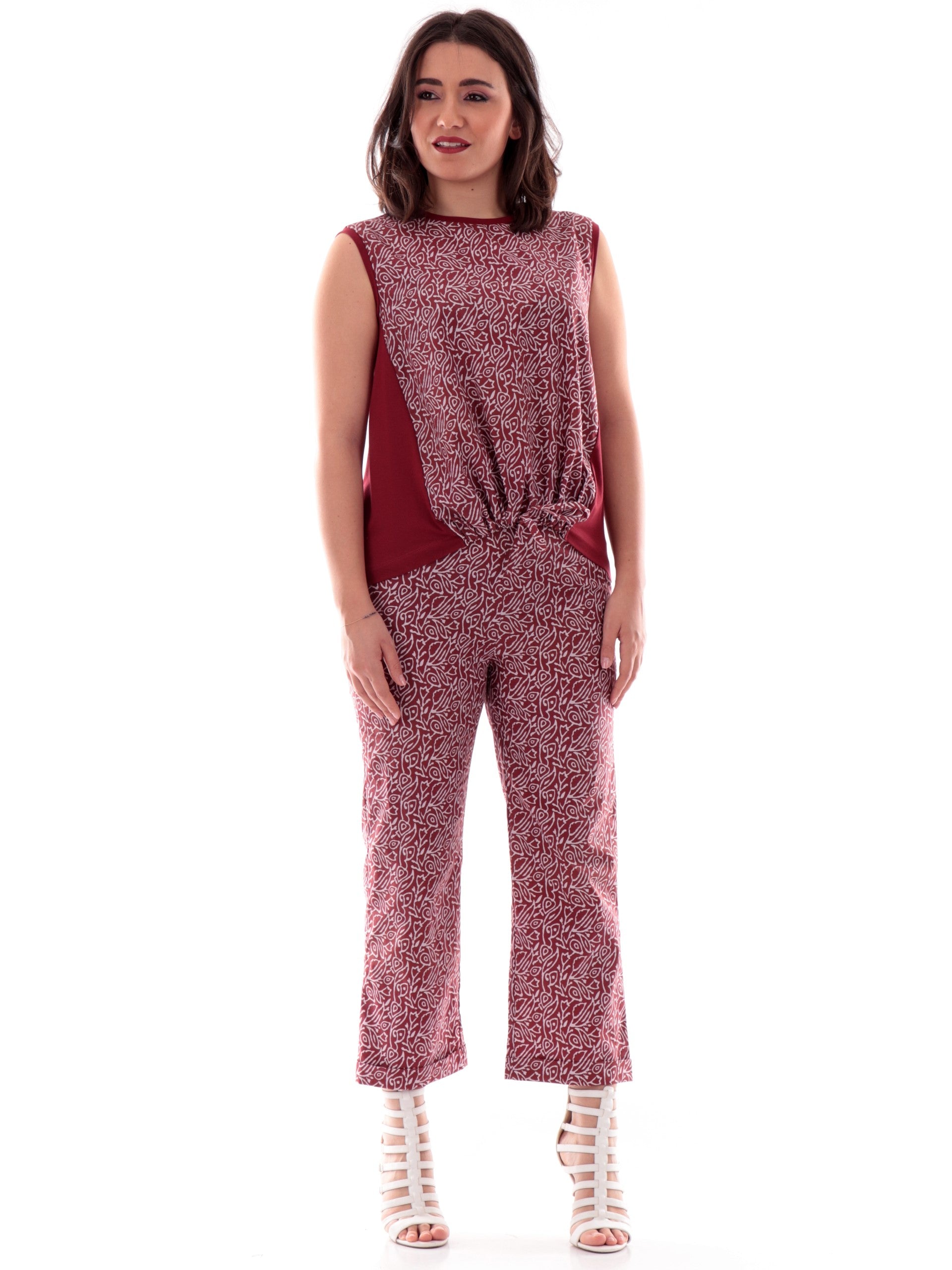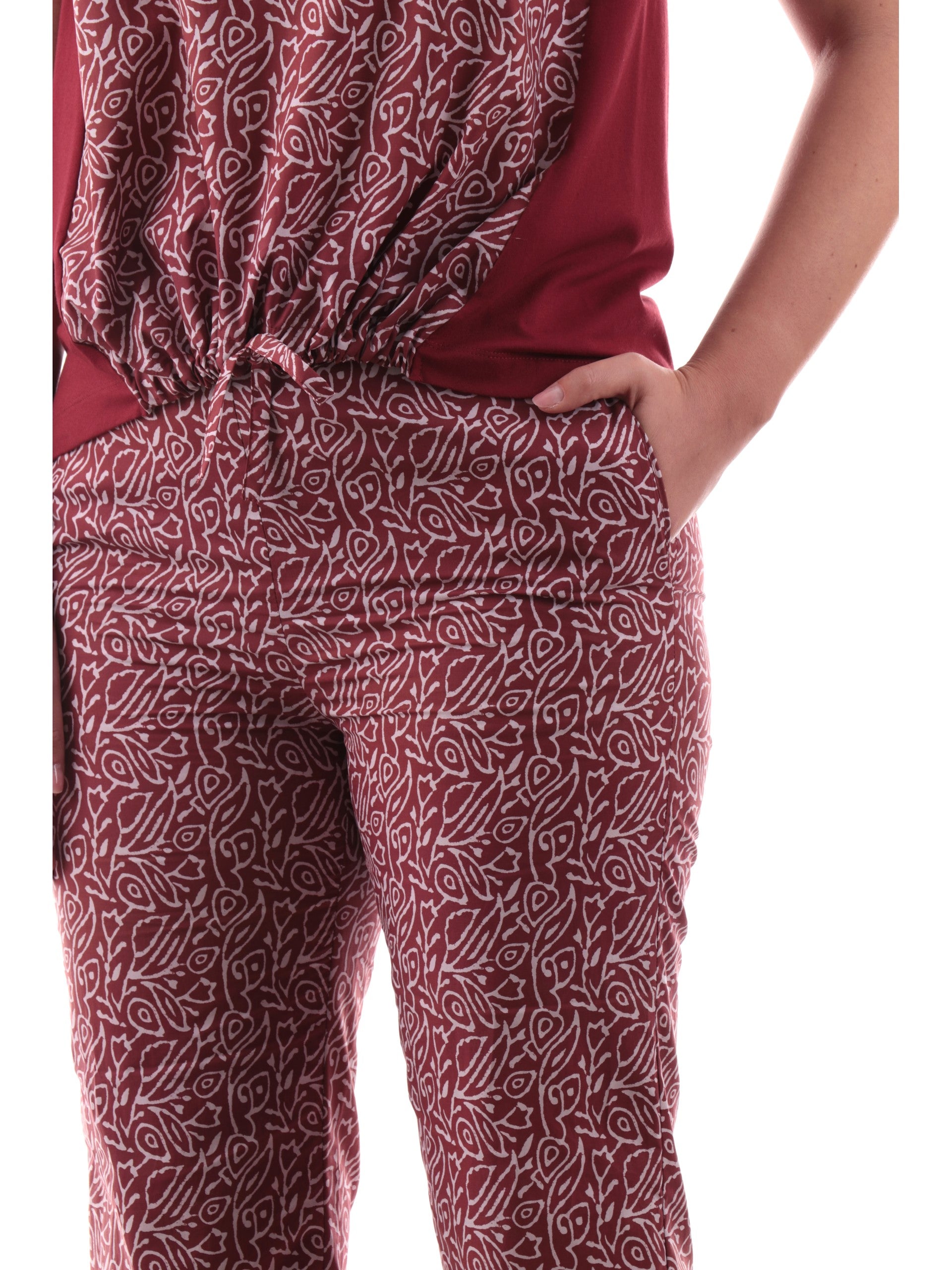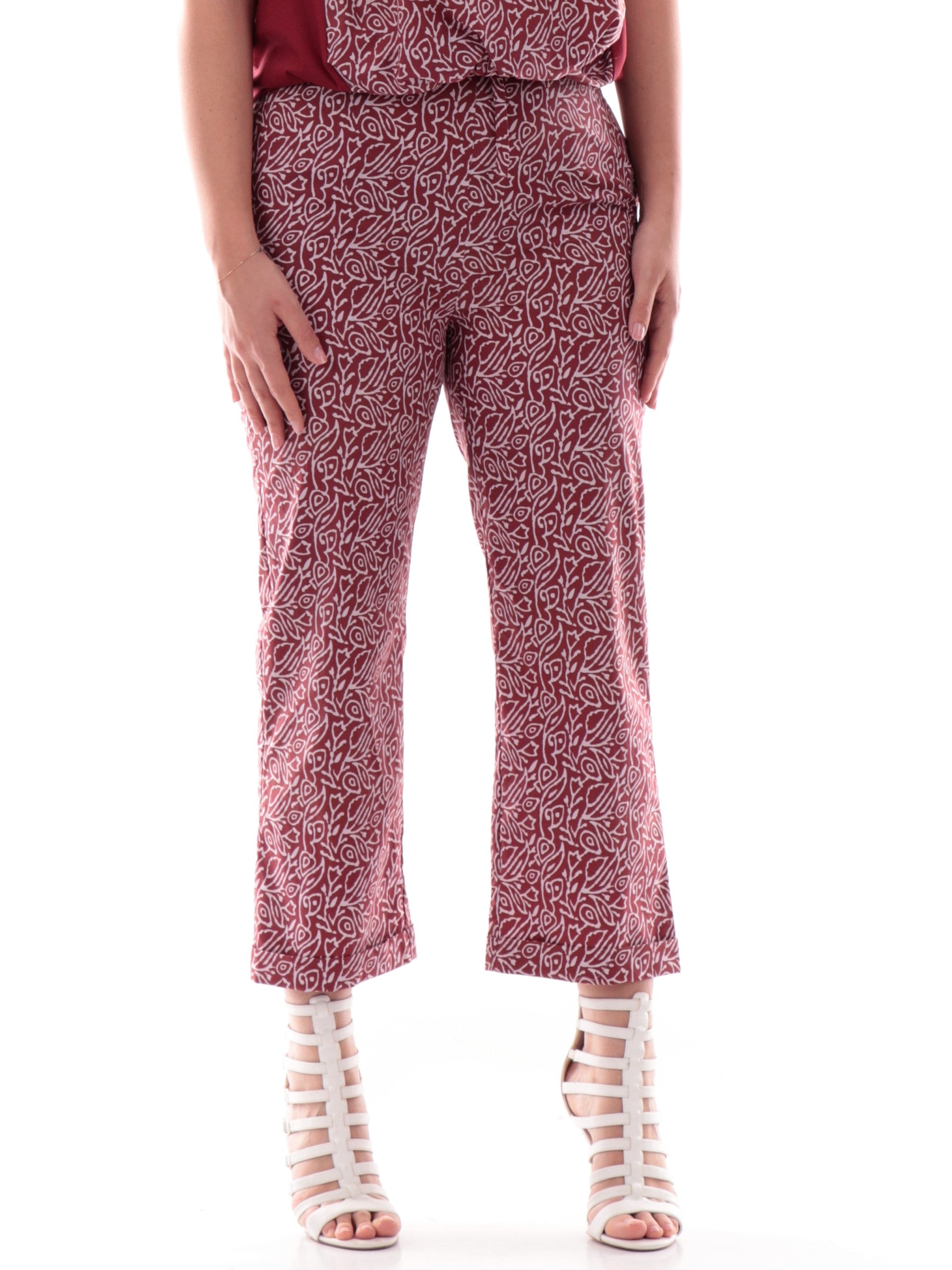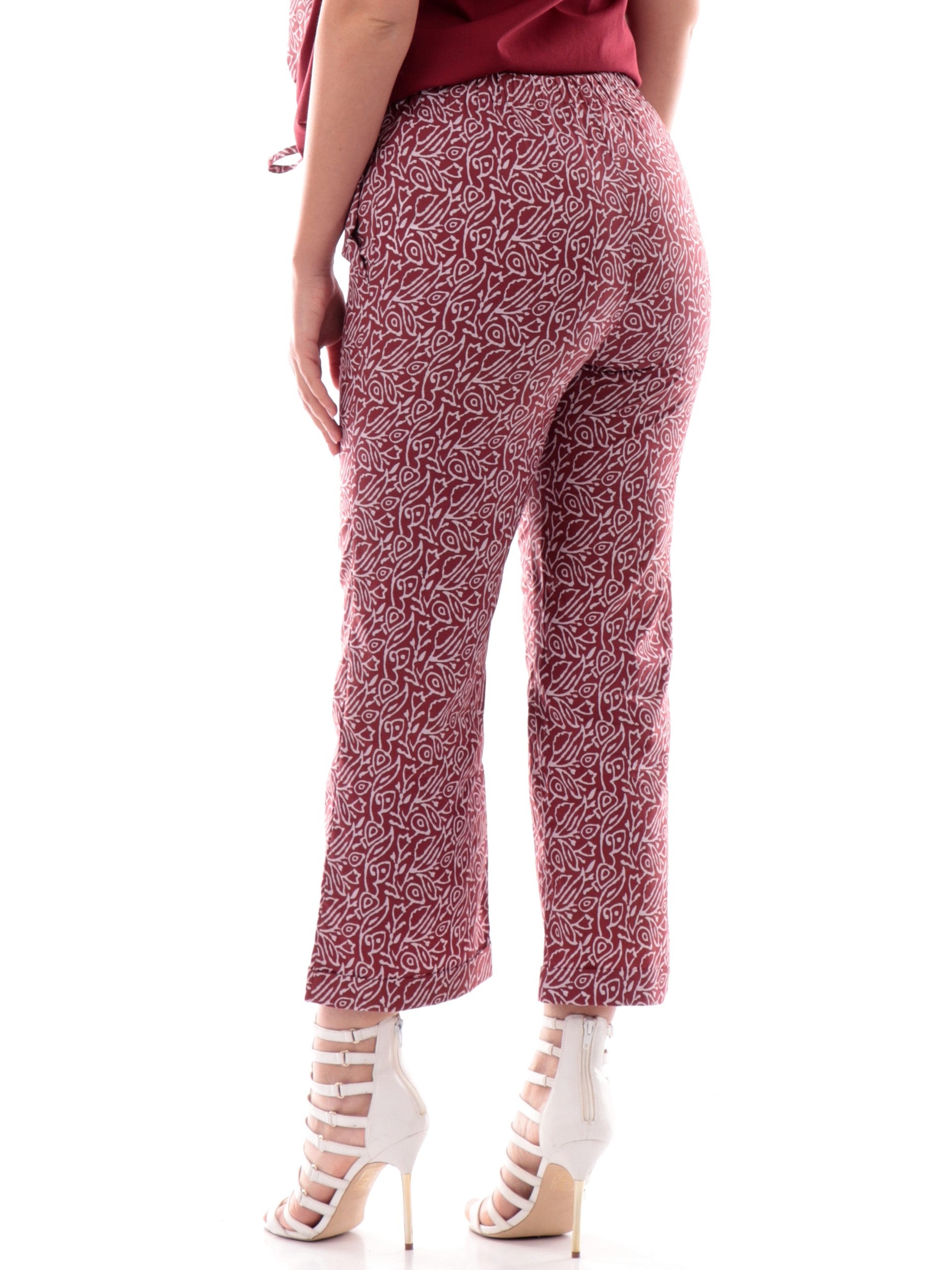 Pantaloni Anis Chino bordeaux da donna con risvolto Crop 251C1338, realizzati in 100% puro cotone. Questi pantaloni Anis White bordeaux hanno la banda elastica sul lato posteriore, due tasche laterali aperte, la stampa floreale all over e il fondo con risvolto.