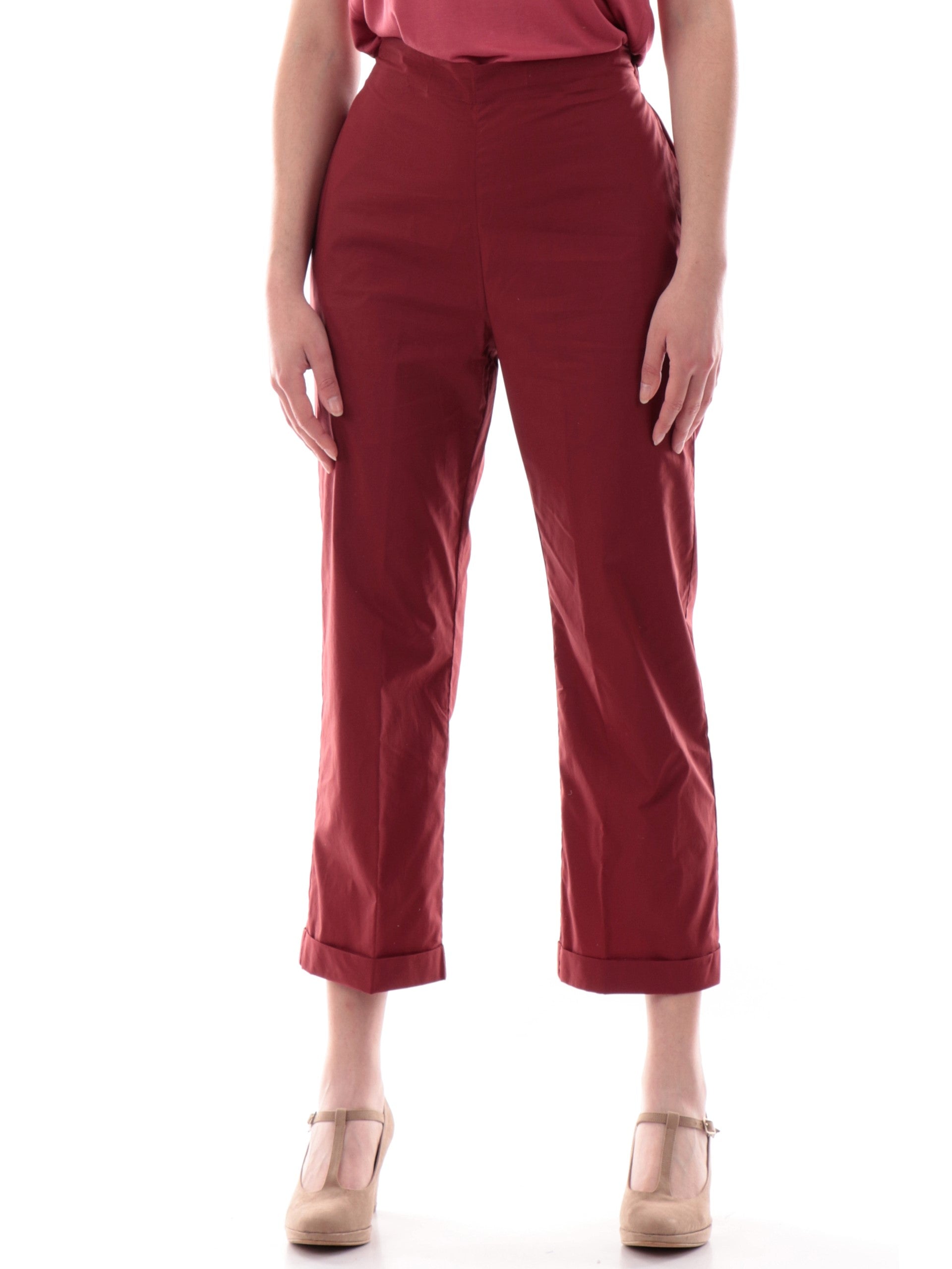 Pantaloni crop Anis White bordeaux da donna con banda elastica 251C1260