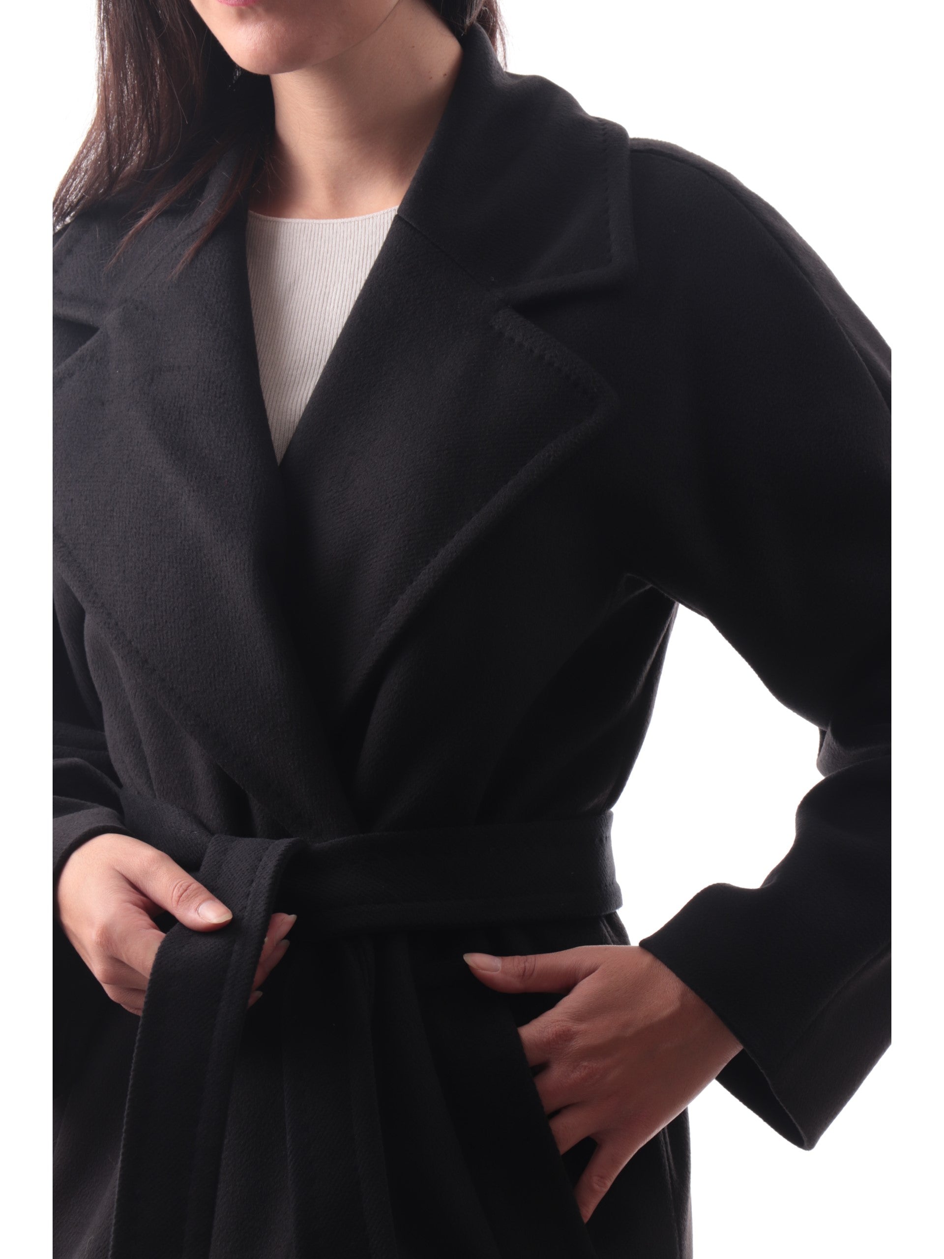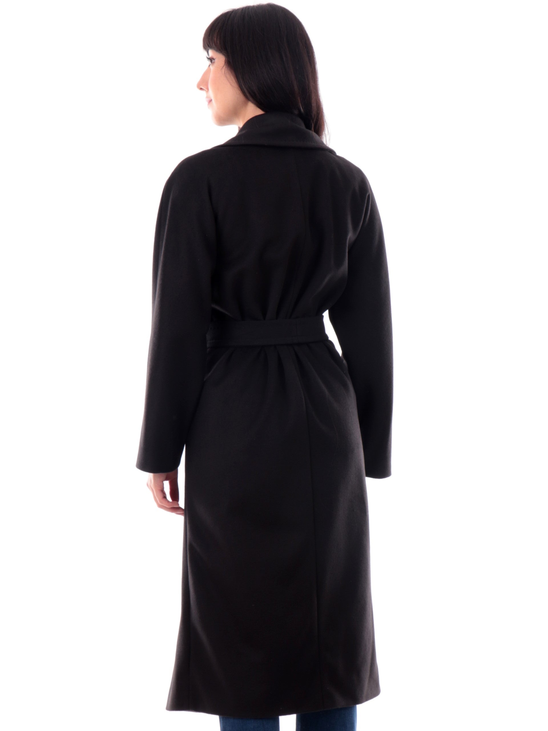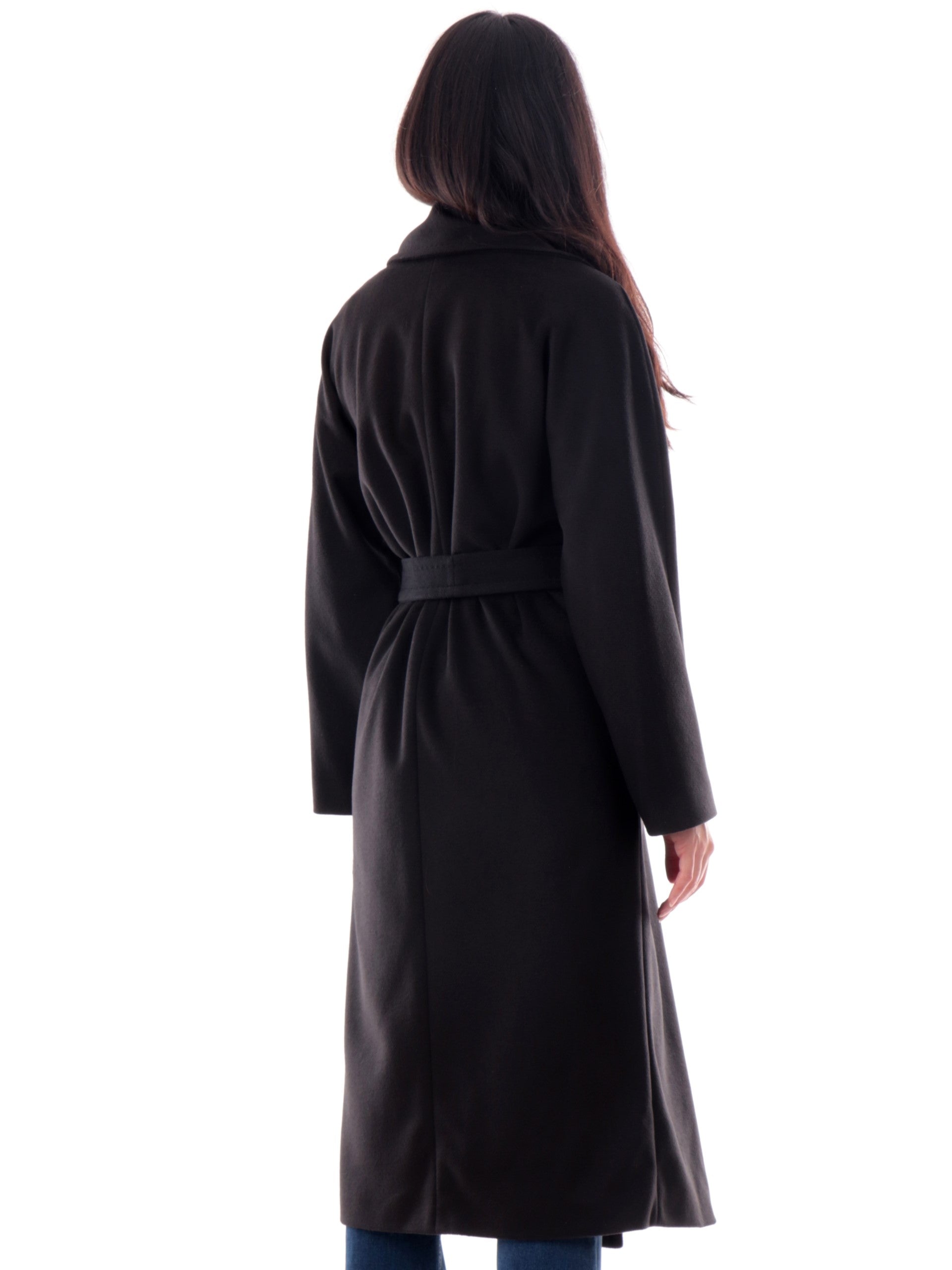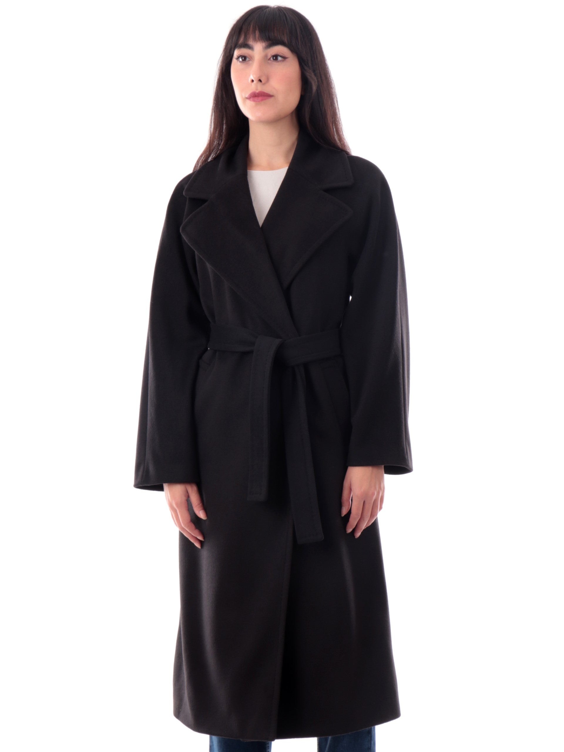 Cappotto lungo Emme Marella nero da donna con cintura Opale