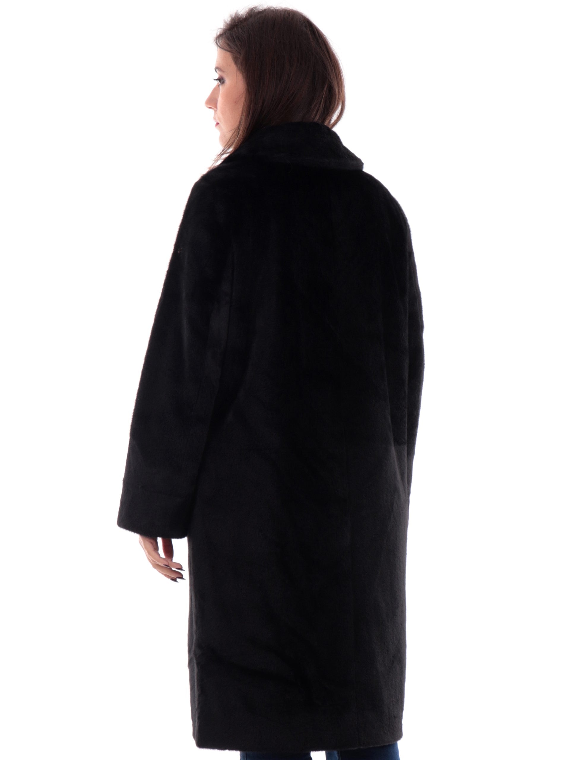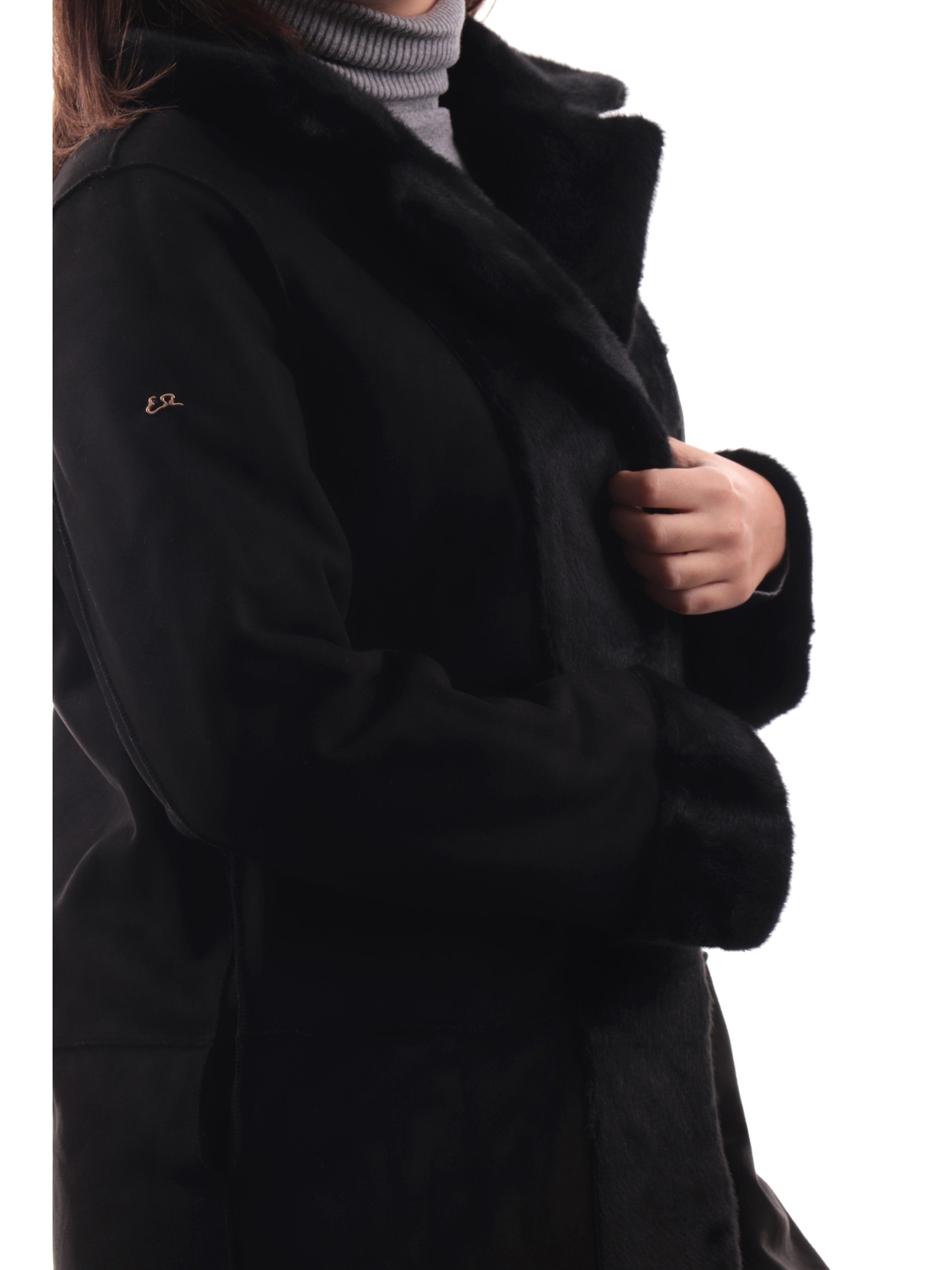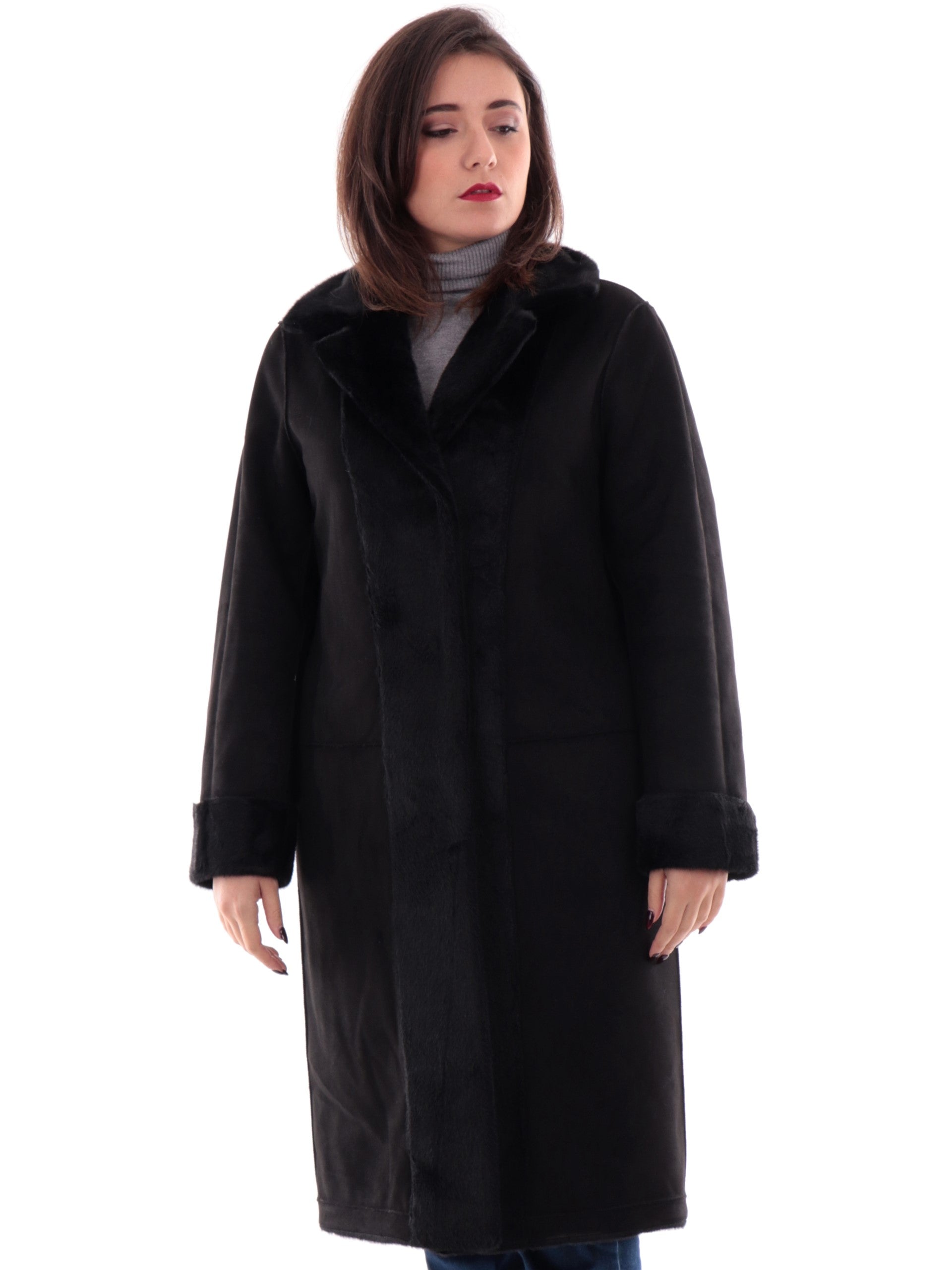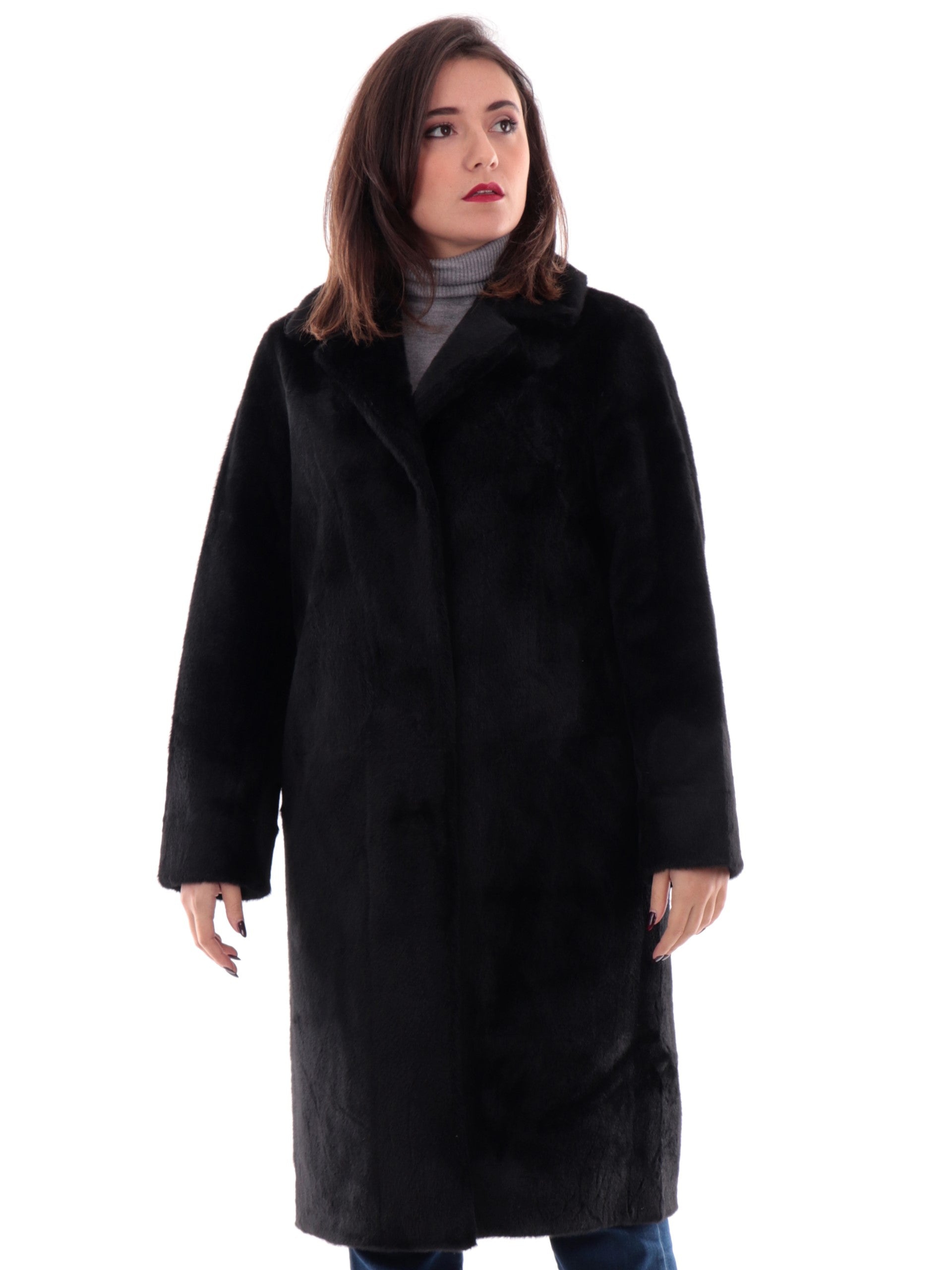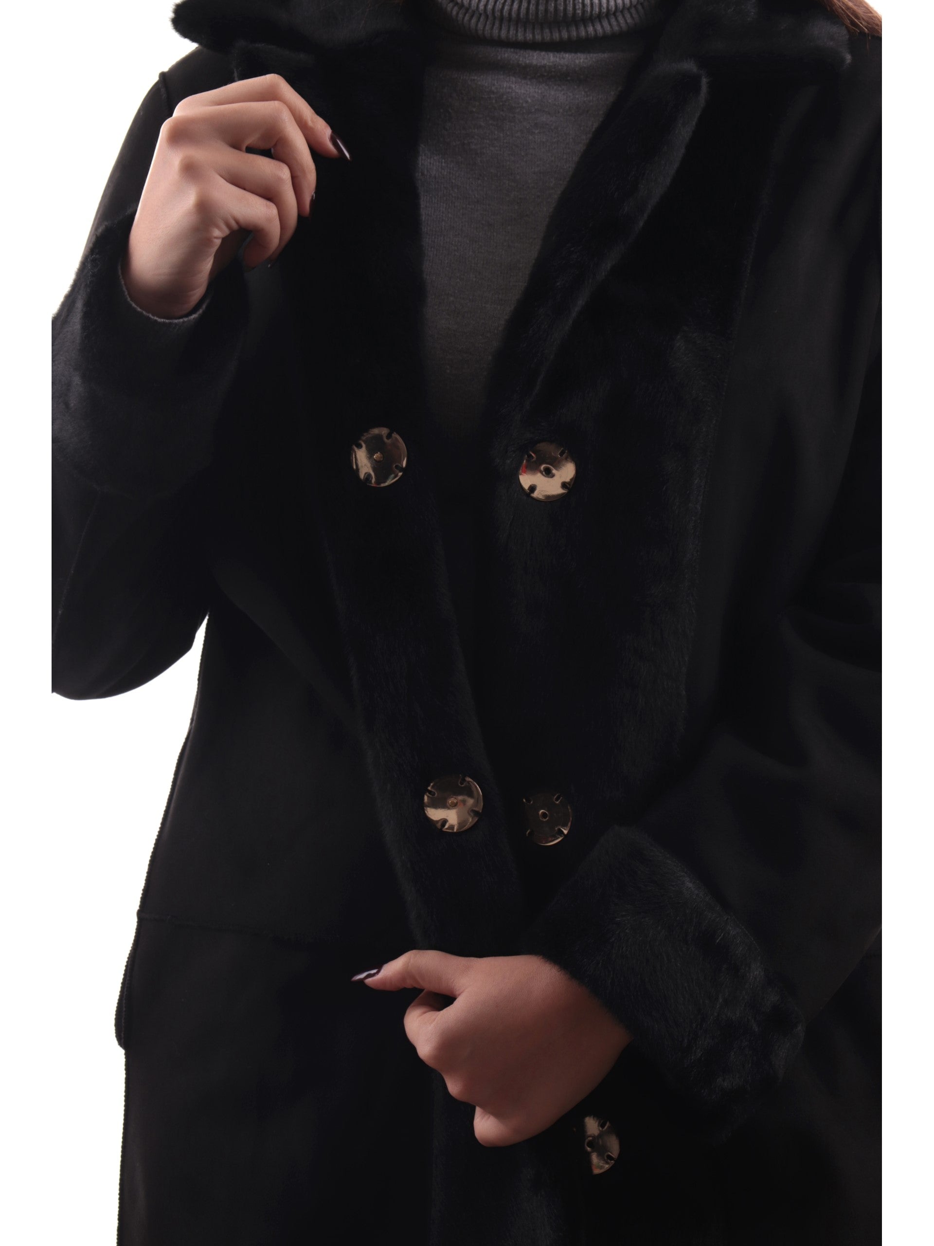 Cappotto teddy Yes Zee nero da donna bottoni automatici reversibile O027KV000
