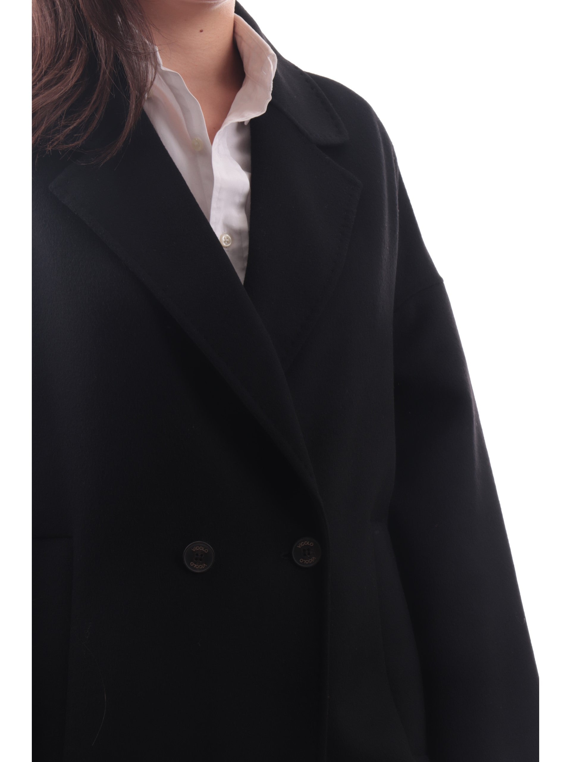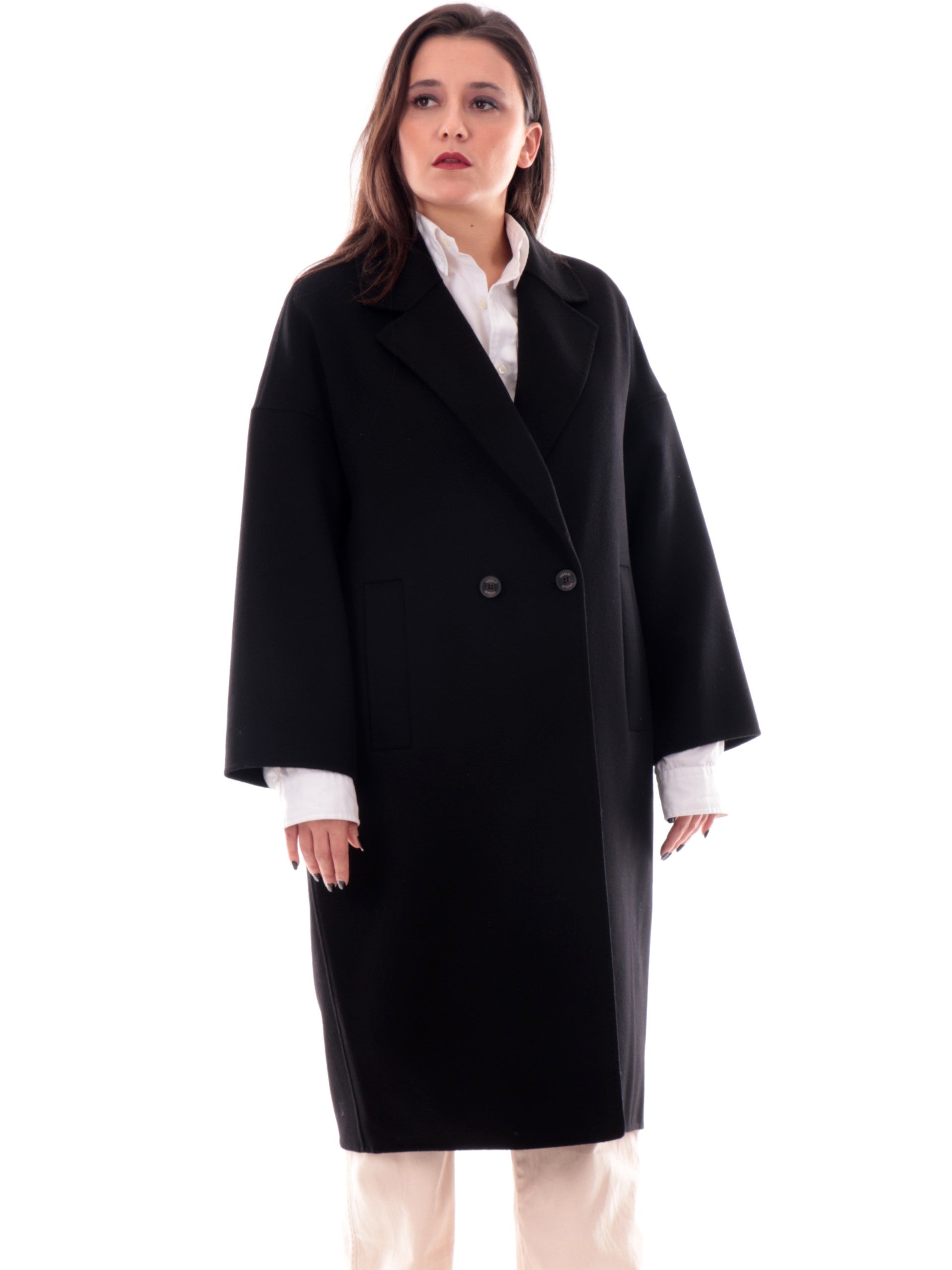 Cappotto VICOLO nero da donna. Questo cappotto Vicolo nero è realizzato dal tessuto double, morbido e soffice al tatto che garantisce calore e comfort, questo capo è perfetto per la stagione invernale e su un look elegante. Questo cappotto VICOLO da donna è caratterizzato da chiusura con bottoni, due tasche laterali aperte, polsini e fondo regolare