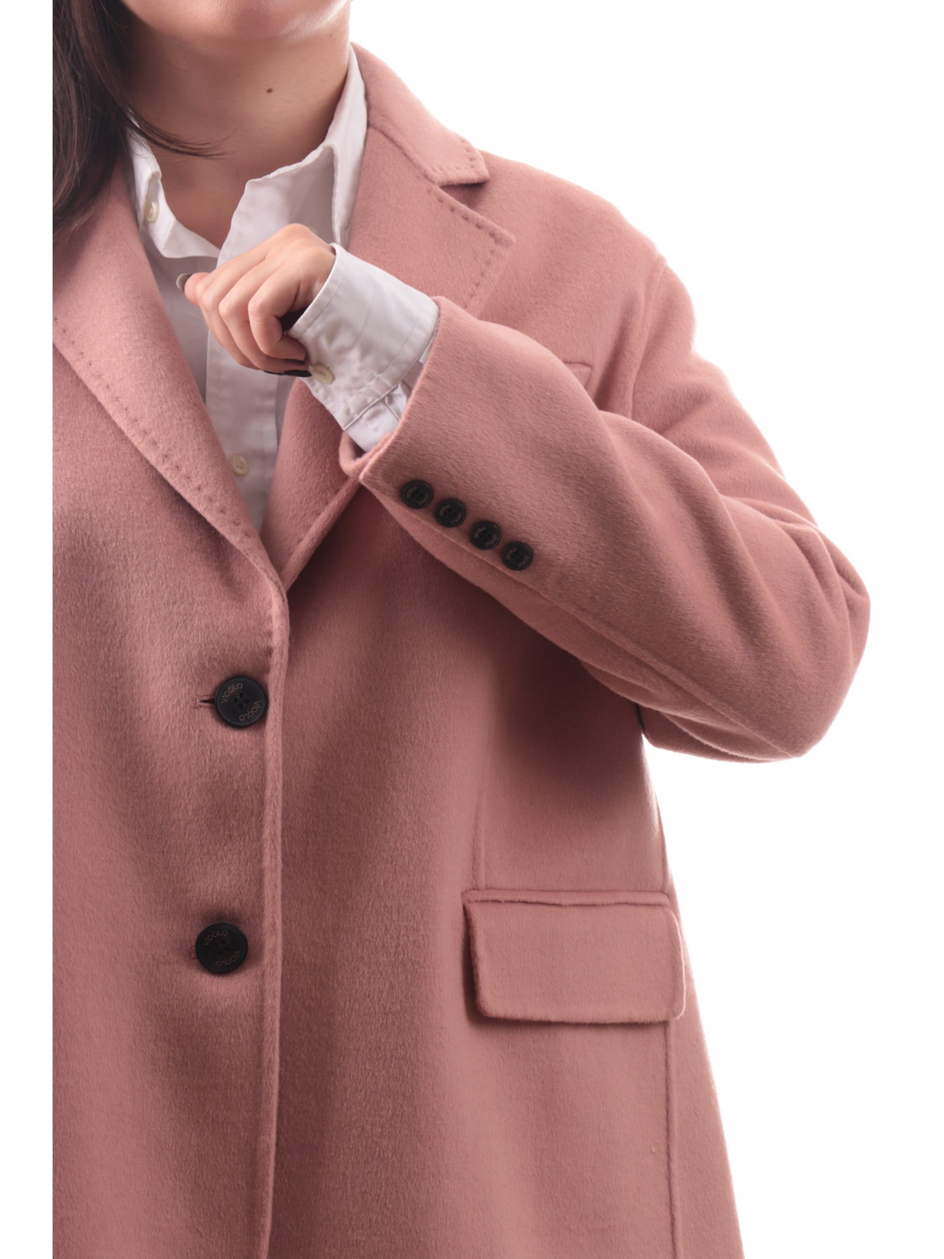 Giacca Vicolo rosa da donna. Questa giacca da donna Vicolo è realizzata da un tessuto caldo, morbi ed avvolgente al tatto, perfetto per la stagione invernale. Questo cappotto Vicolo rosa è caratterizzato dalla chiusura a bottoni, due tasche laterali aperte, un taschino a lato cuore, polsini con bottoni e fondo regolare. Questa giacca da donna è perfetta per un look elegante.