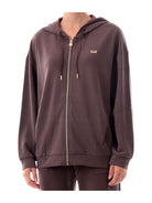 Felpa Emporio Armani EA7 marrone da donna full zip con cappuccio logo oro 7W000192AF12643 U6063