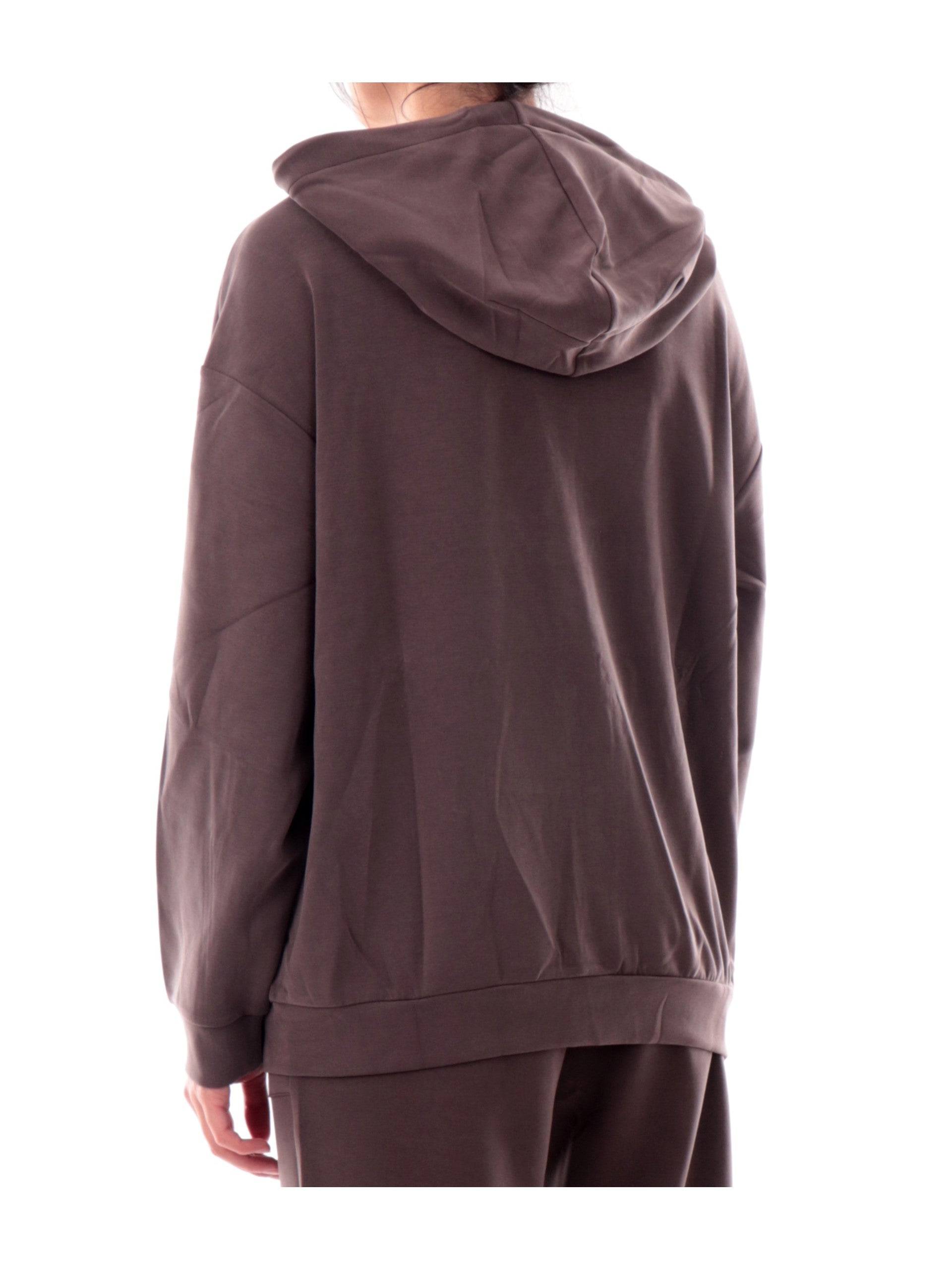 Felpa Emporio Armani EA7 marrone da donna full zip con cappuccio logo oro 7W000192AF12643 U6063. Questa felpa EA7 donna ha il cappuccio fisso regolabile con laccetti, la chiusura full zip centrale, due tasche laterali aperte, il logo EA7 lato cuore, polsini e fondo elasticizzati.