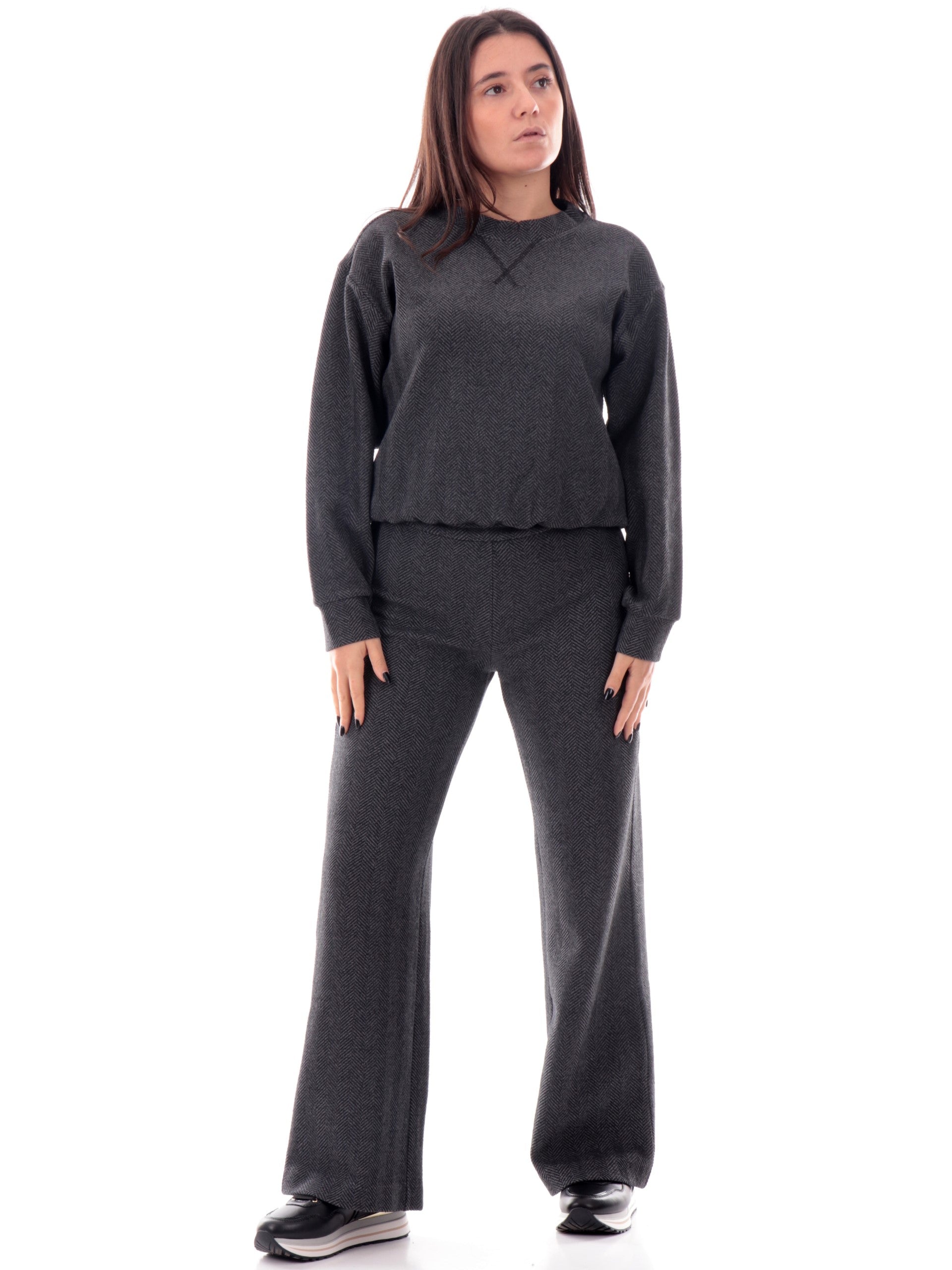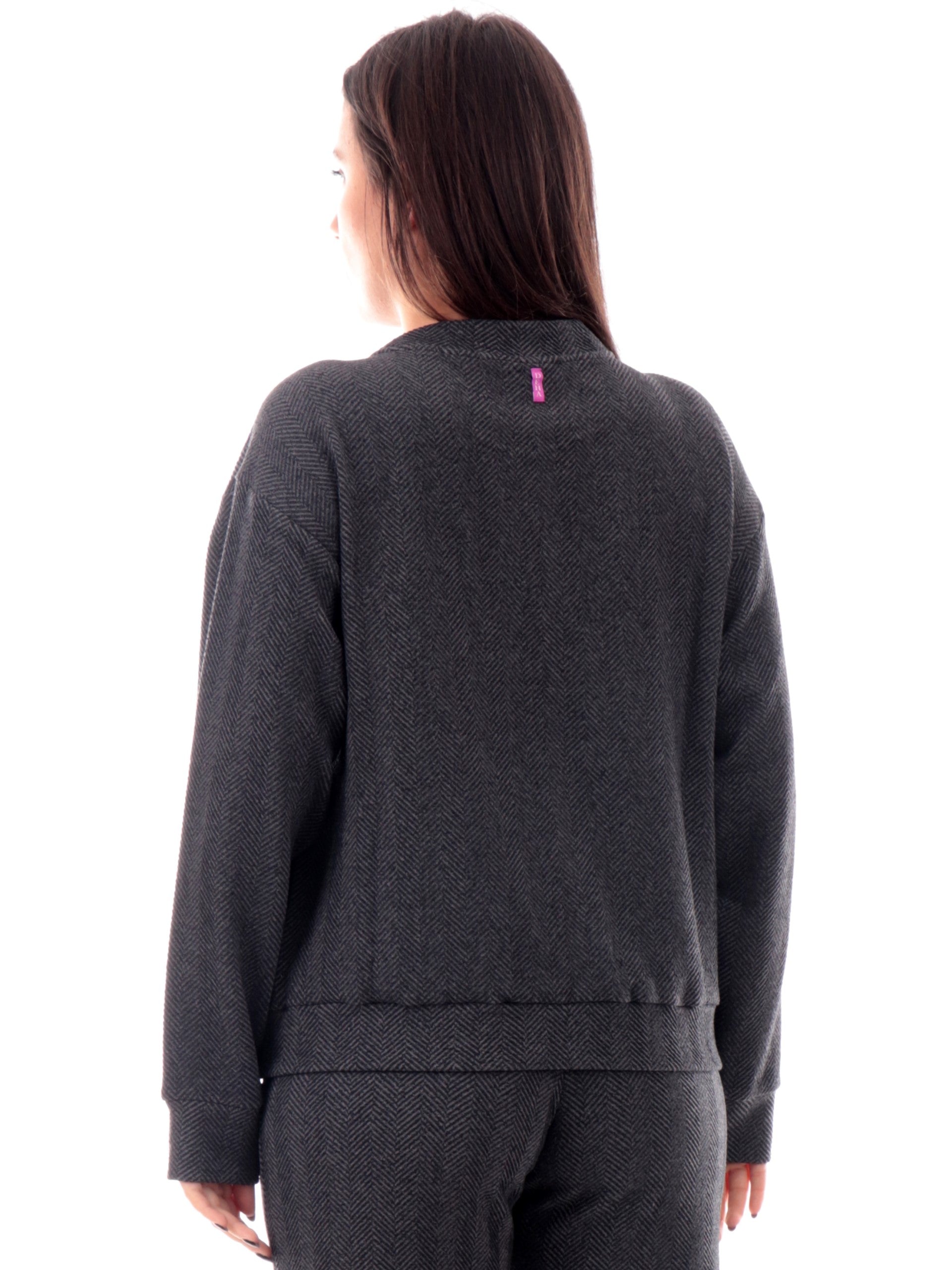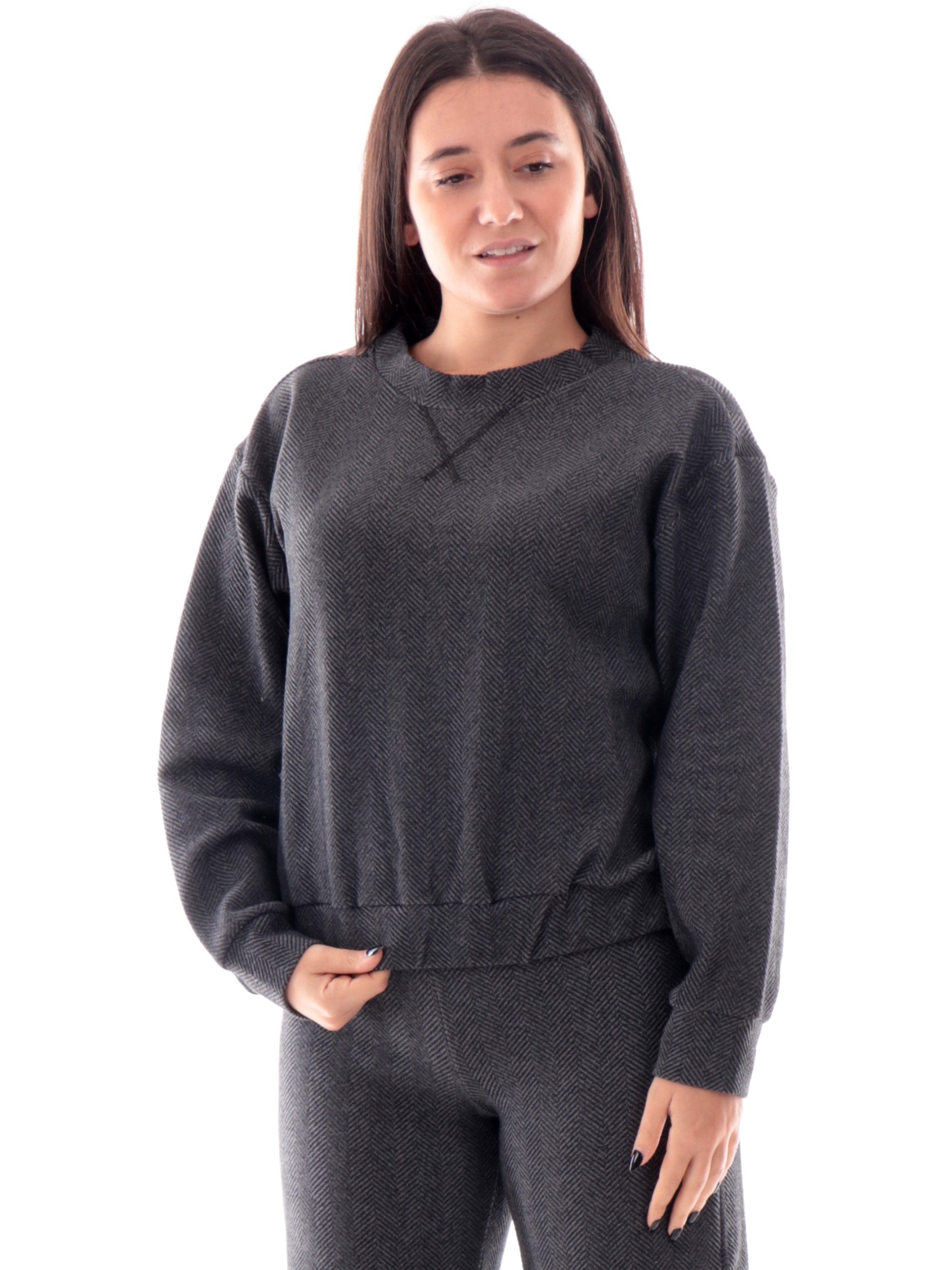 Felpa girocollo Deha grigia da donna. Questa felpa realizzata in misto cotone con la fantasia jacquard è caratterizzata dal girocollo, manica con polsino, e fascia elastica al fondo. Questa felpa conla vestibilità comoda è perfetta per tutti i giorni e la si può abbinare sopra al proprio pantalone