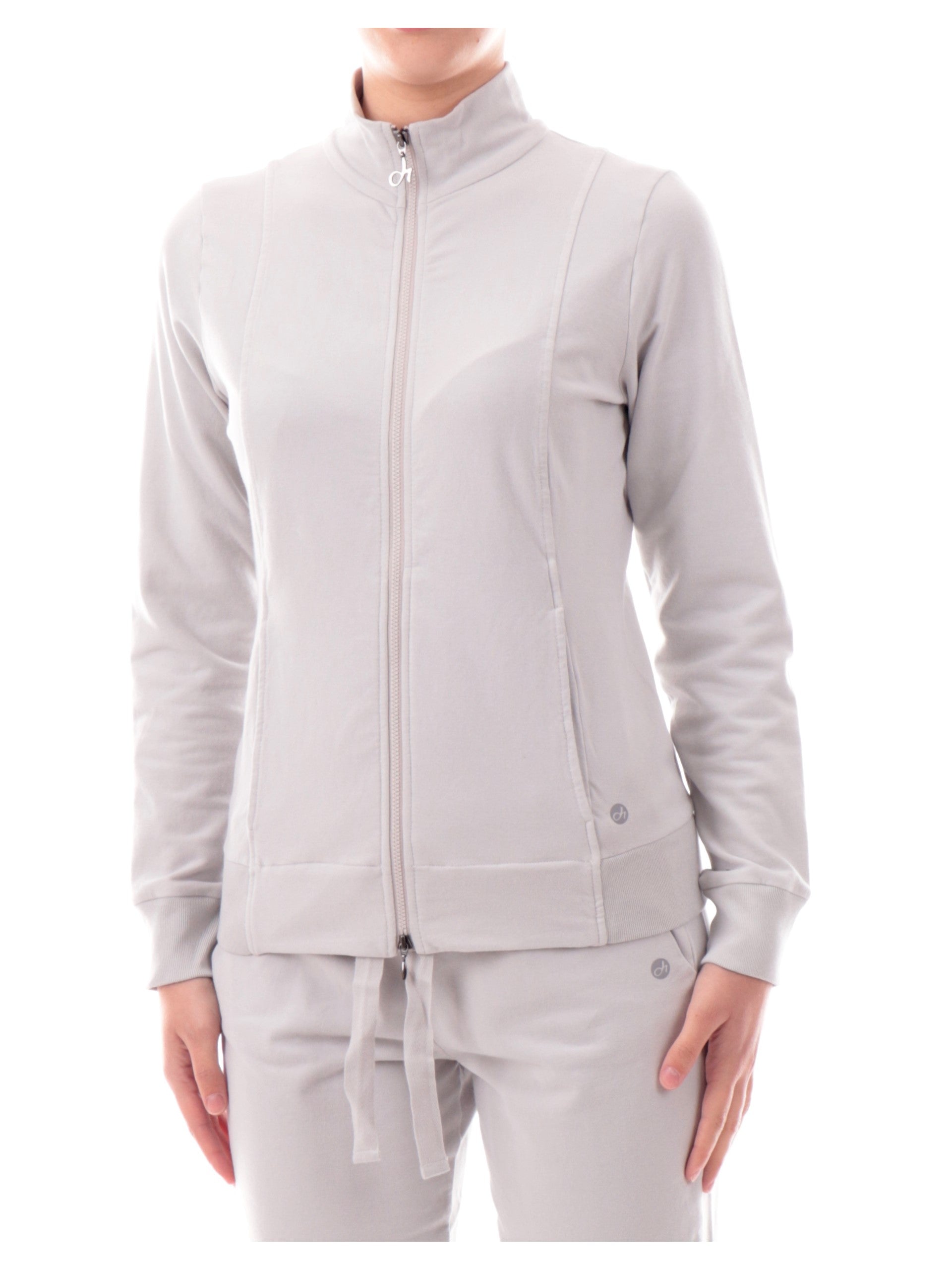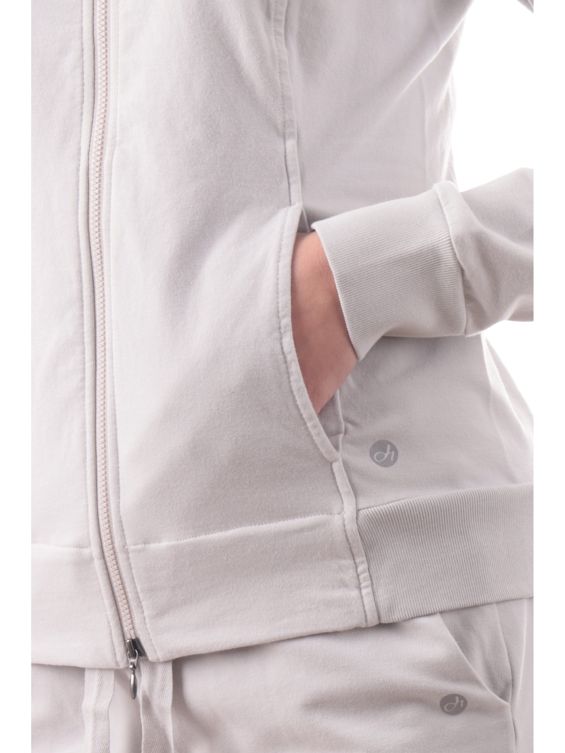 Felpa grigio ghiaccio Deha collo alto. Questa felpa grigia Deha caratterizzata dal collo alto è realizzata in cotone è perfetta per ogni occasione, la superficie soffice fornisce anche una sensazionedi comfort e morbidezza sulla pelle. Ideale all'aperto o per un momento di relax. Questa felpa grigia Deha è caratterizzata dalla chiusura centrale full zip co doppio cursore, due tasche laterali aperte, polsini e fondo elasticizzati a costine