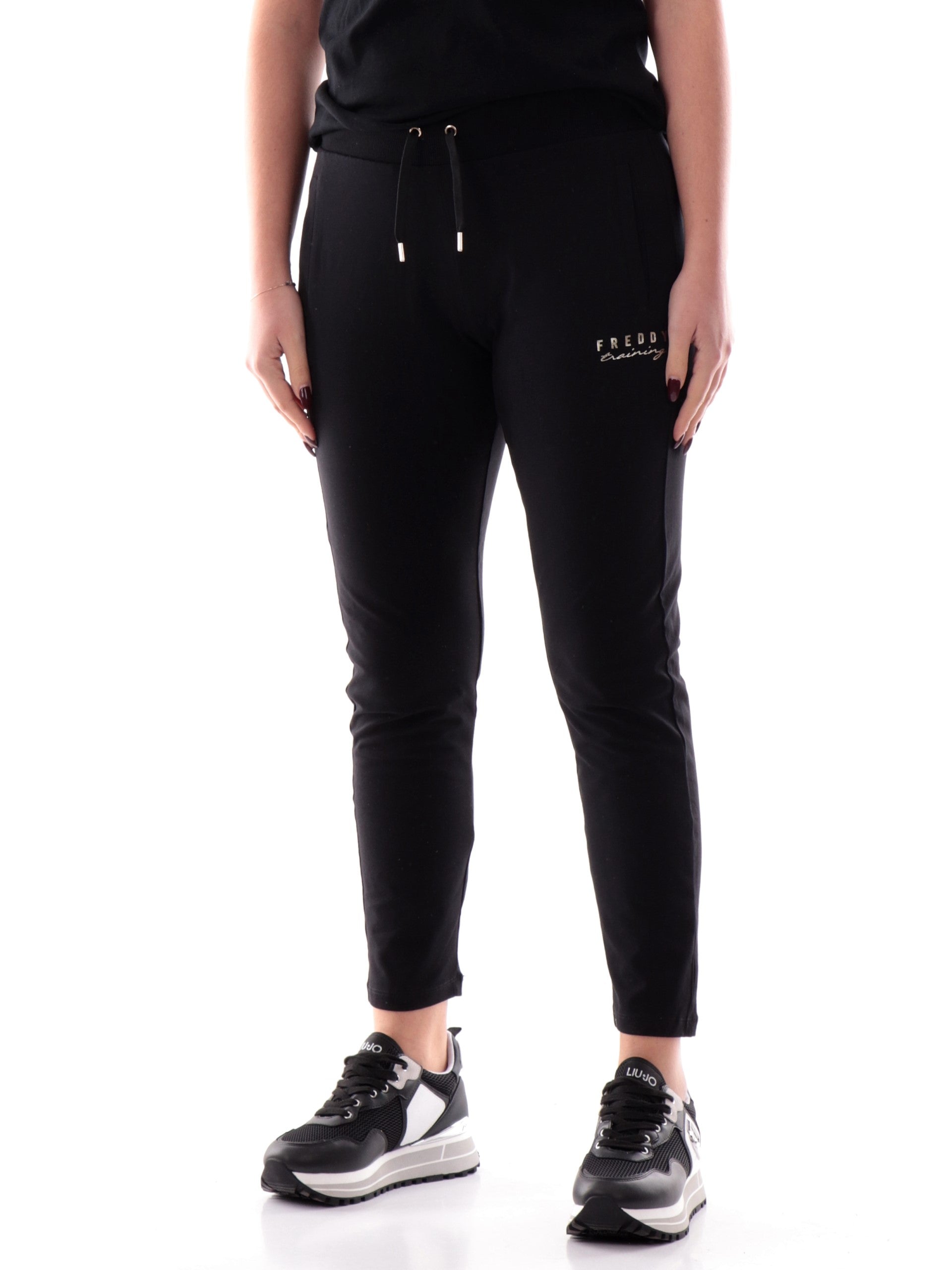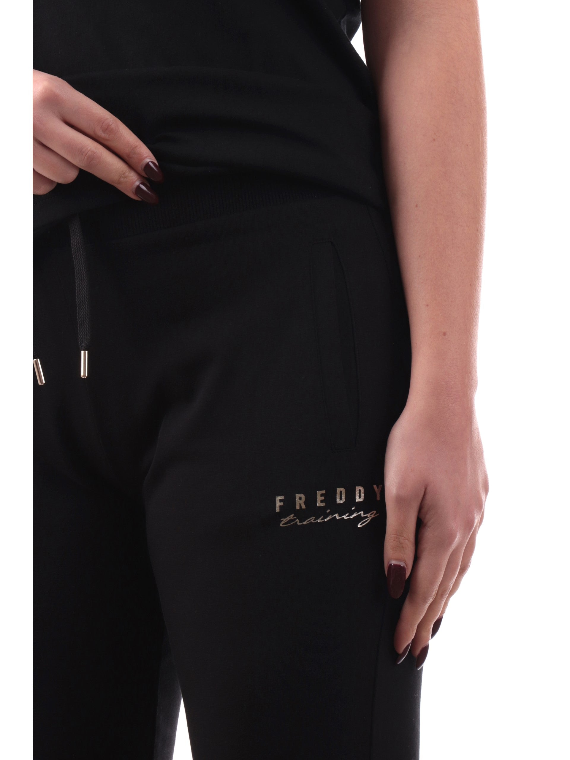 Pantaloni tuta Freddy Chino neri da donna logo Freddy oro S25WTRP2