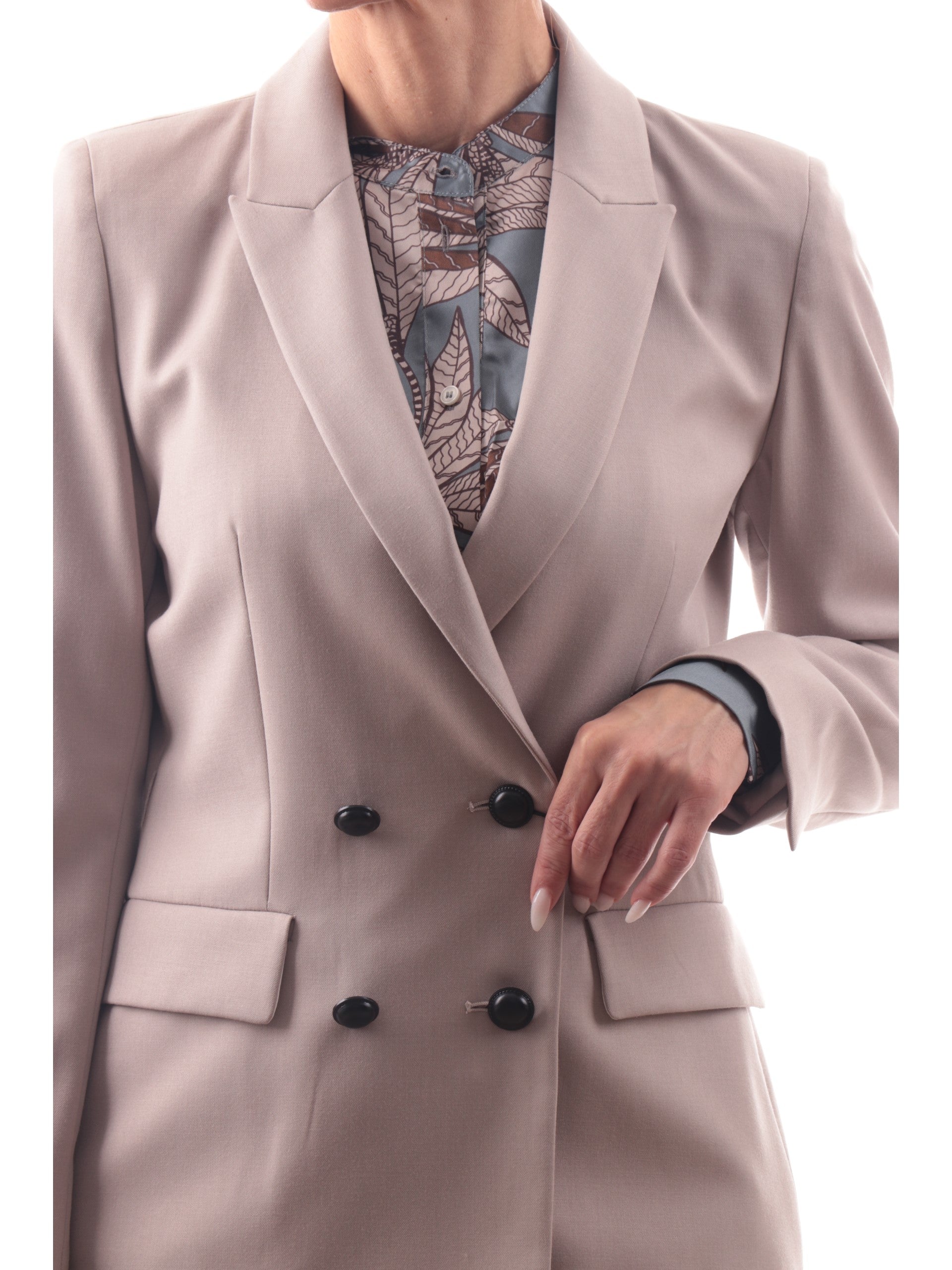 Giacca Emme Marella beige da donna cerimonia con cintura BELFORD. Questa giacca elegante Marella beige ha il rever, la cintura rimovibile, la chiusura con doppio bottone e due tasche frontali a filocon patta.