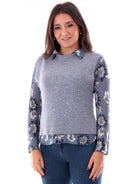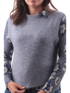 Maglione gilet Anis azzurro carta da zucchero da donna collo alto e pailletes. Questo gilet donna Anis white azzurro carta da zucchero con dettagli luminosi realizzato in morbido filato misto lana caldo ed avvolgente. Questo maglione Anis azzurro da donna è una maglia Anis versatile e comoda, perfetta per ogni situazione.