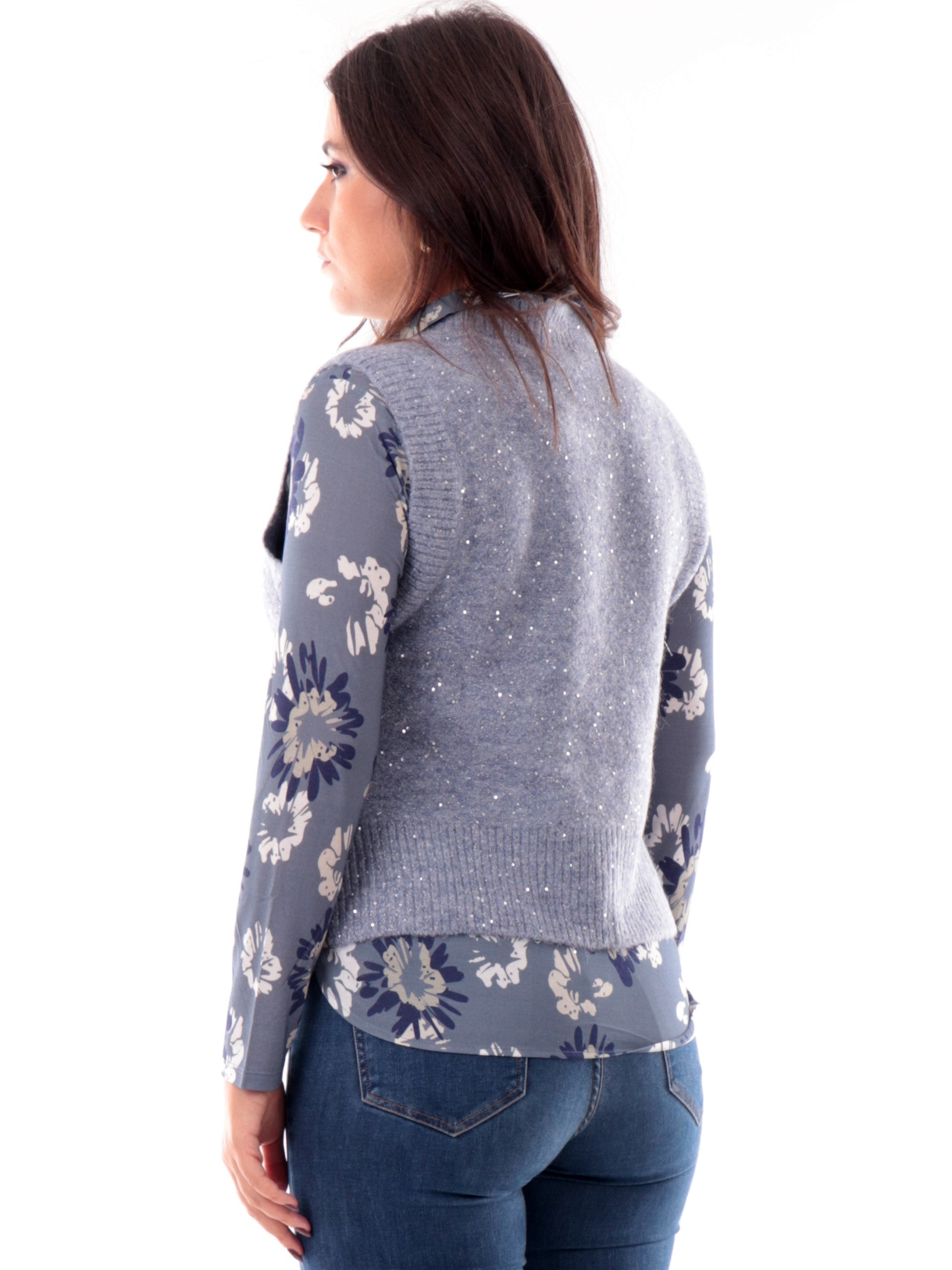 Gilet Anis azzurro carta da zucchero da donna collo alto e pailletes 255W1380280