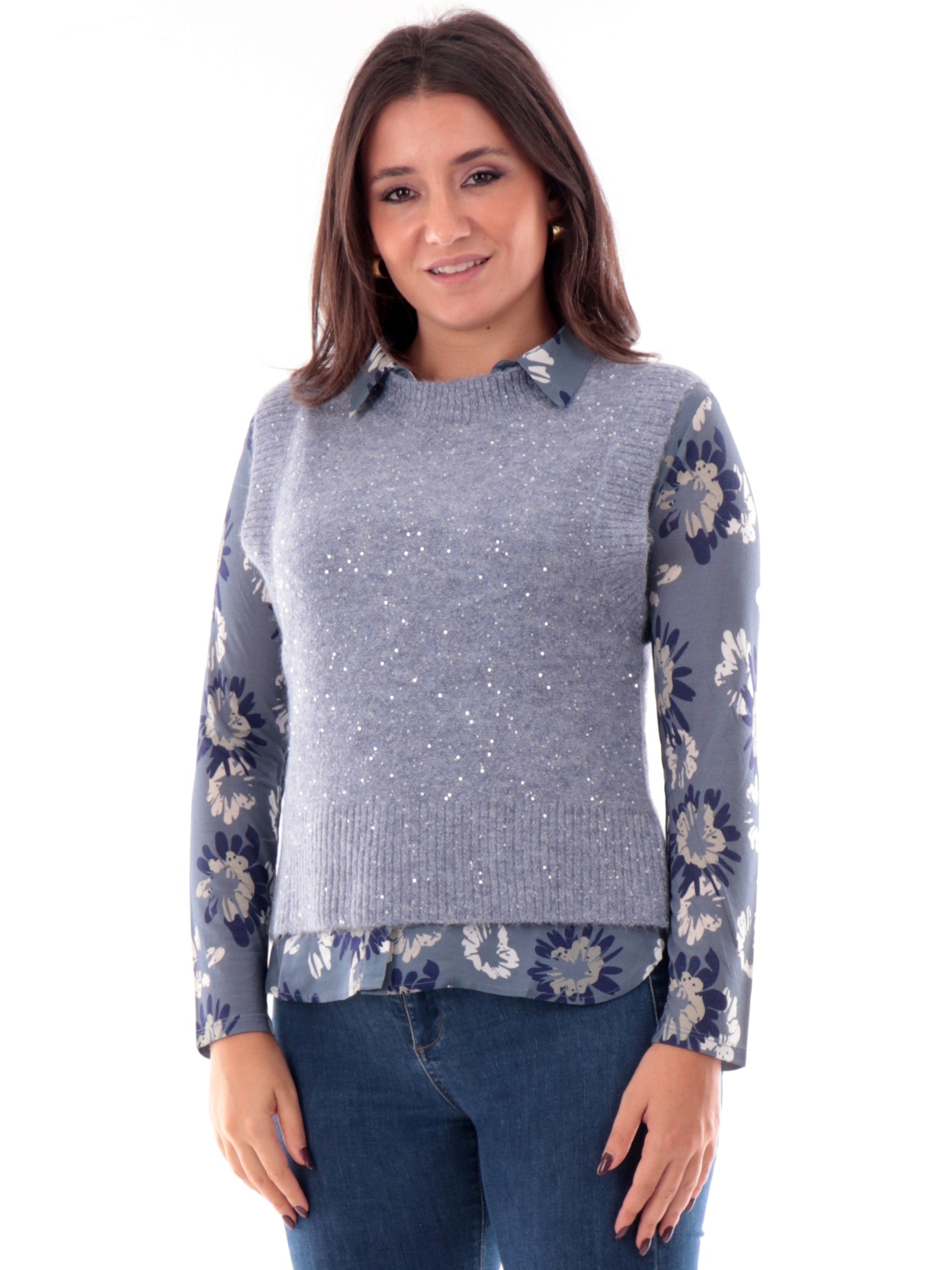 Maglione gilet Anis beige da donna collo alto e pailletes. Questo gilet donna Anis white beige con dettagli luminosi realizzato in morbido filato misto lana caldo ed avvolgente. Questo maglione Anis beige da donna è una maglia Anis versatile e comoda, perfetta per ogni situazione.