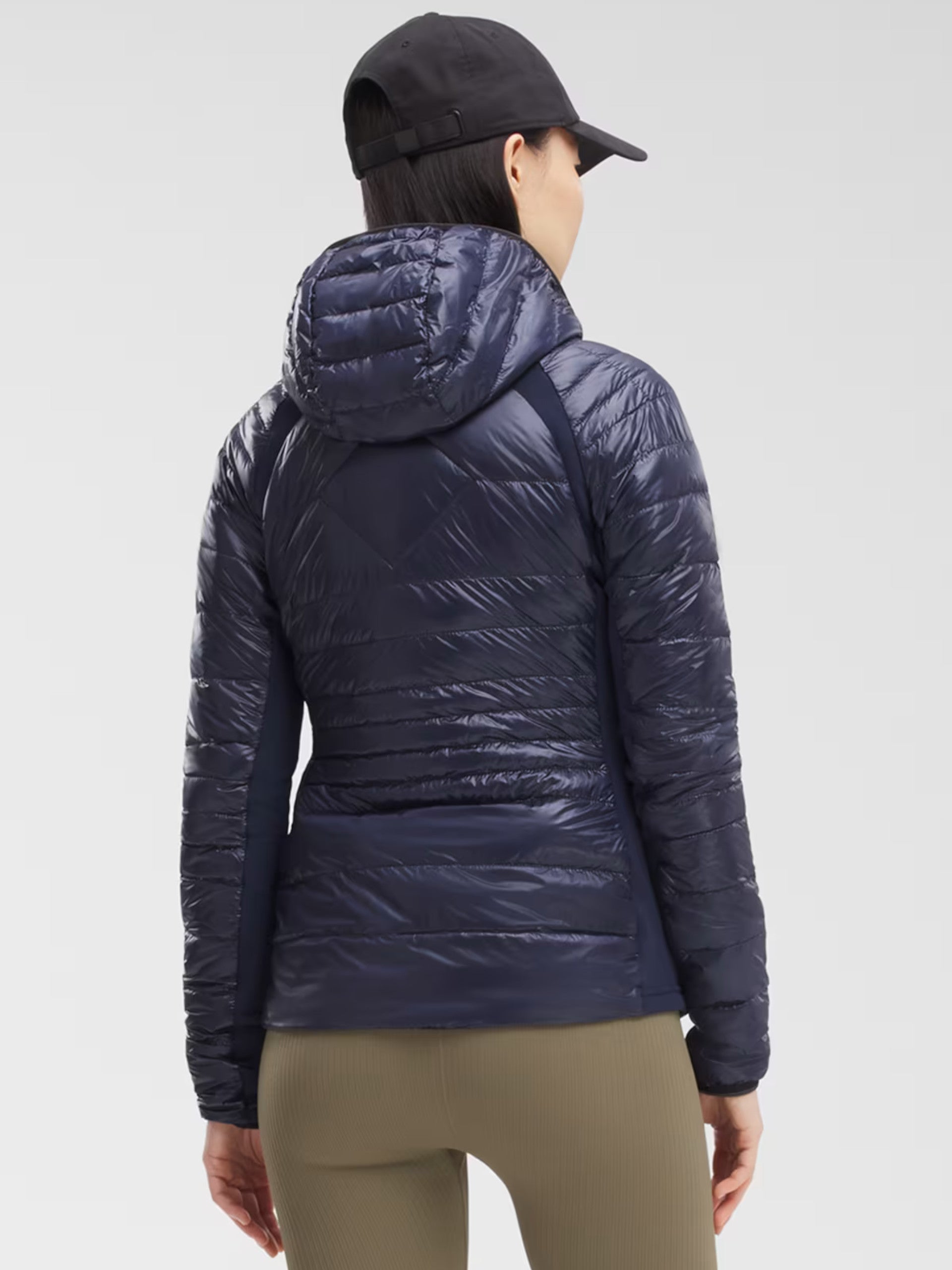Piumino Canada Goose Hybridge Lite Hoody blu da donna inserti tessuto tecnico 2712