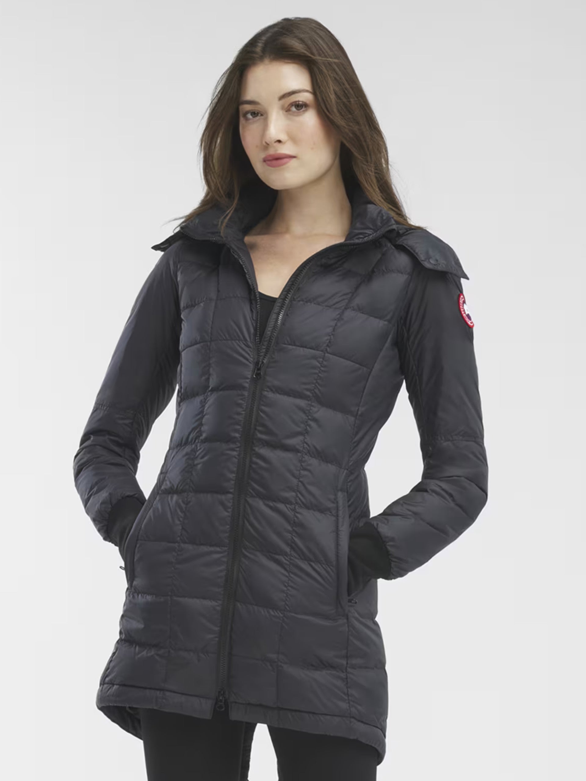 Giacca Canada Goose Ellison Jacket nera da donna lunga 2209, progettata per arrivare a temperature molto rigide fino a -5°C. Giacca donna Canada Goose lunghezza media e dalle linee pulite è realizzata con cappuccio removibile e regolabile. Giacca nera Canada Goose con chiusura full zip centrale, due tasche laterali ed inconfondibile logo cucito sulla manica sinistra. Fondo regolabile con coulisse.