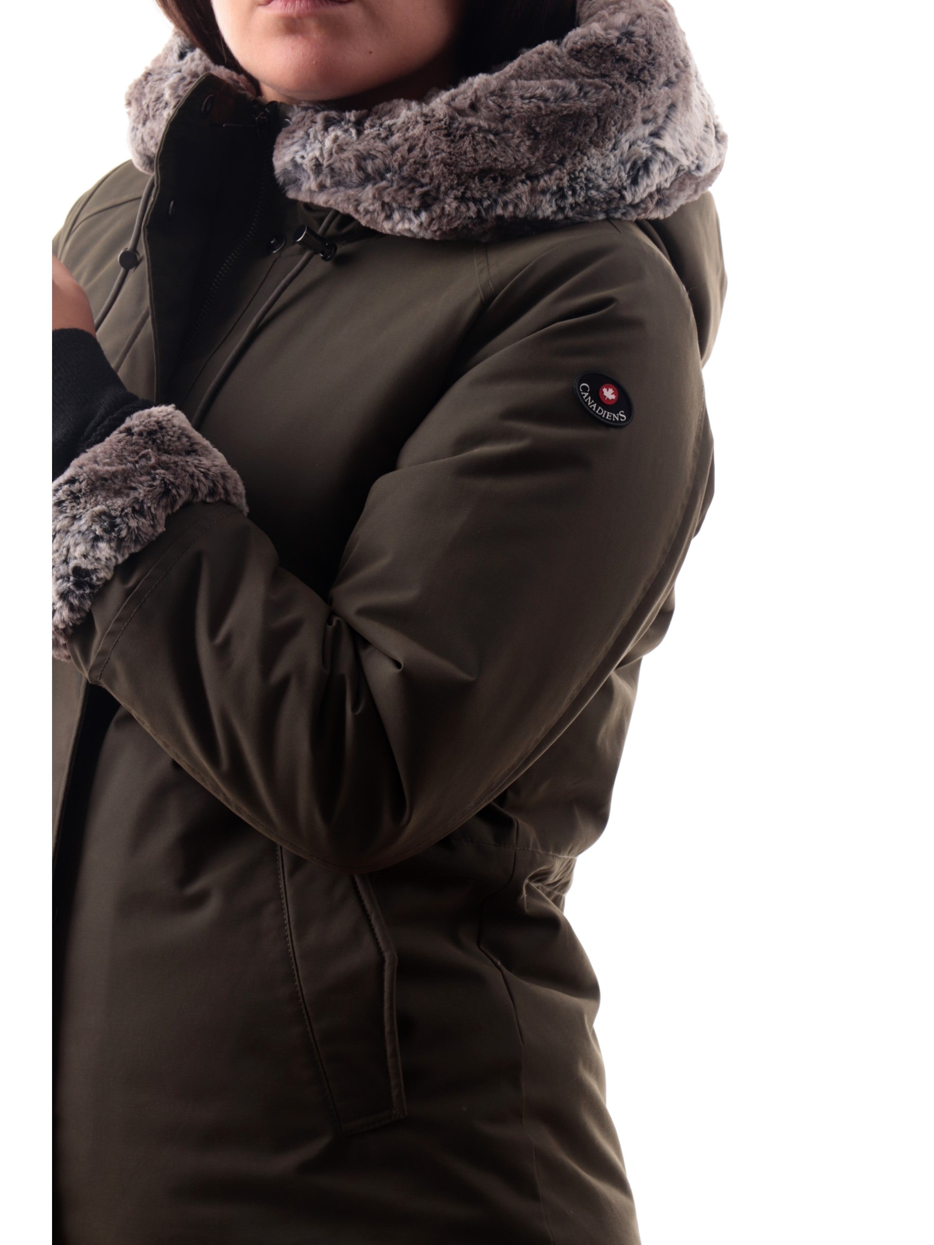 Giacca Canadiens donna verde militare Audry 3.1 bordi pelliccia con cappuccio CAP05211N9815
