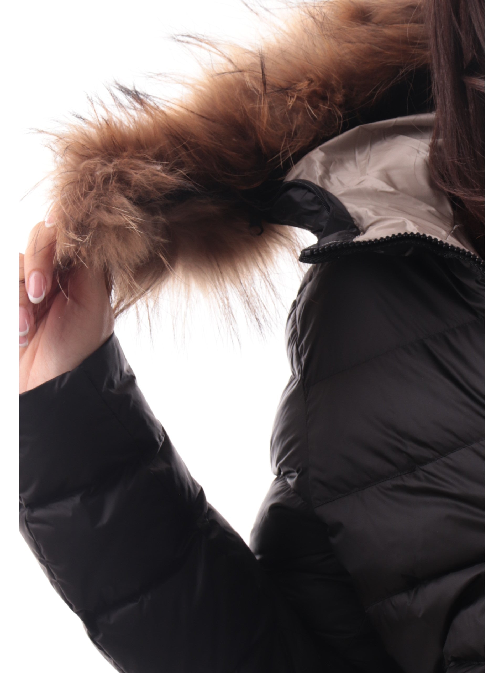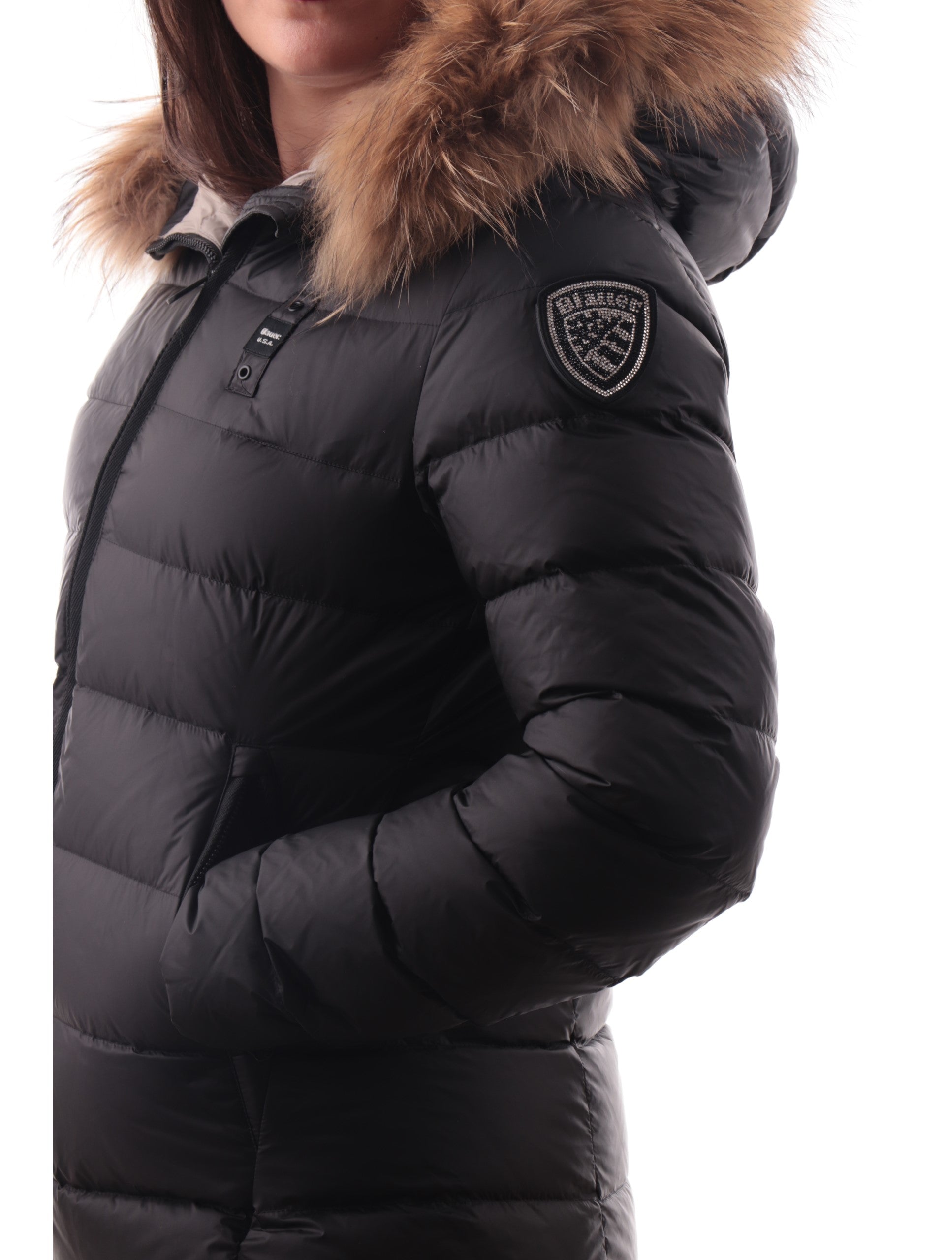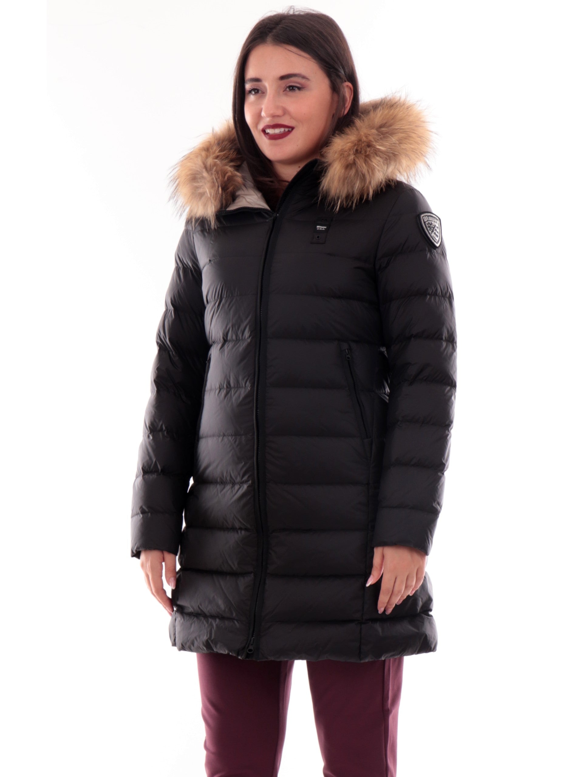 Cappotto Blauer nero da donna Kristin piumino lungo K03103006047 con cappuccio pelliccia
