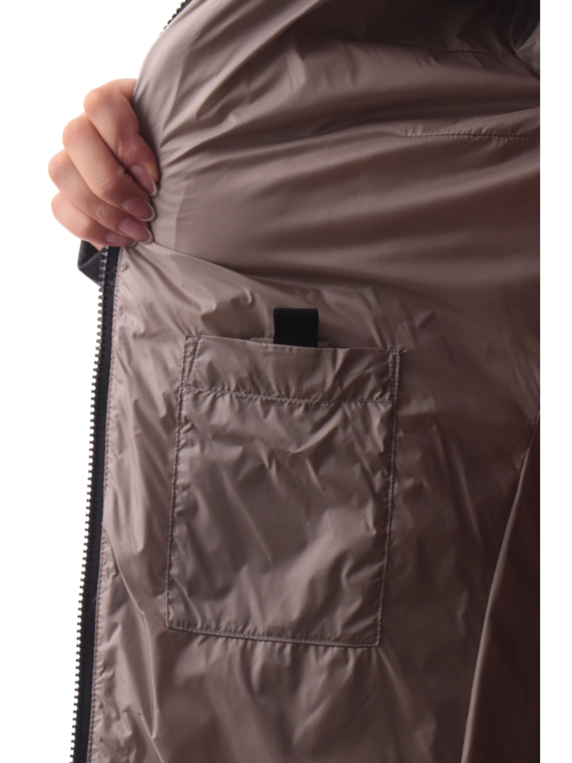 Cappotto Blauer nero da donna realizzato in morbida piuma d'oca con cappuccio bordato in pelliccia. Questo piumino Blauer Lungo Kristin Trench è caratterizzato da logo strass sulla spalla e due tasche interne.