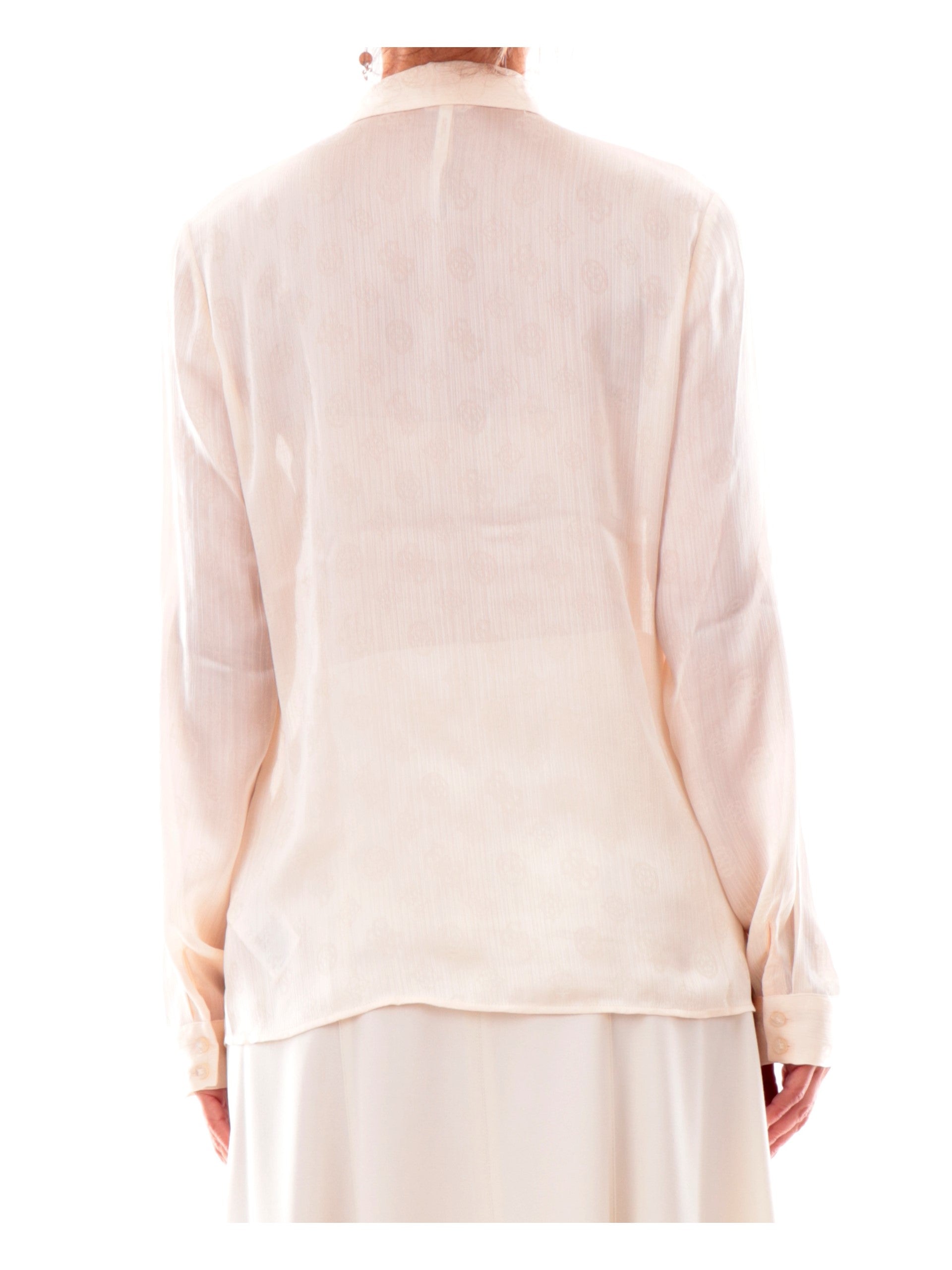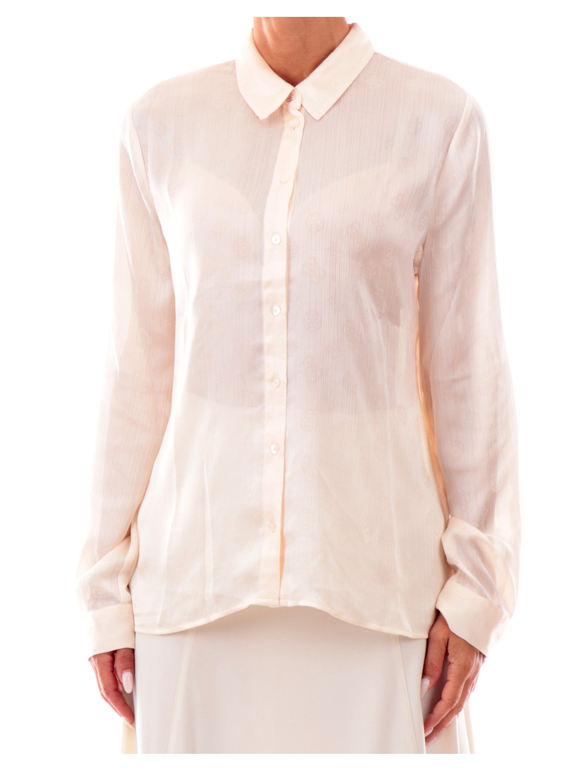 Camicia raso Guess beige da donna Marthe logo Guess all over W5YH1AWHCR2. Questa camicia Guess beige ha il colletto alla francese, la chiusura con bottoni, le maniche lunghe con polsini e il logo Guess all over.