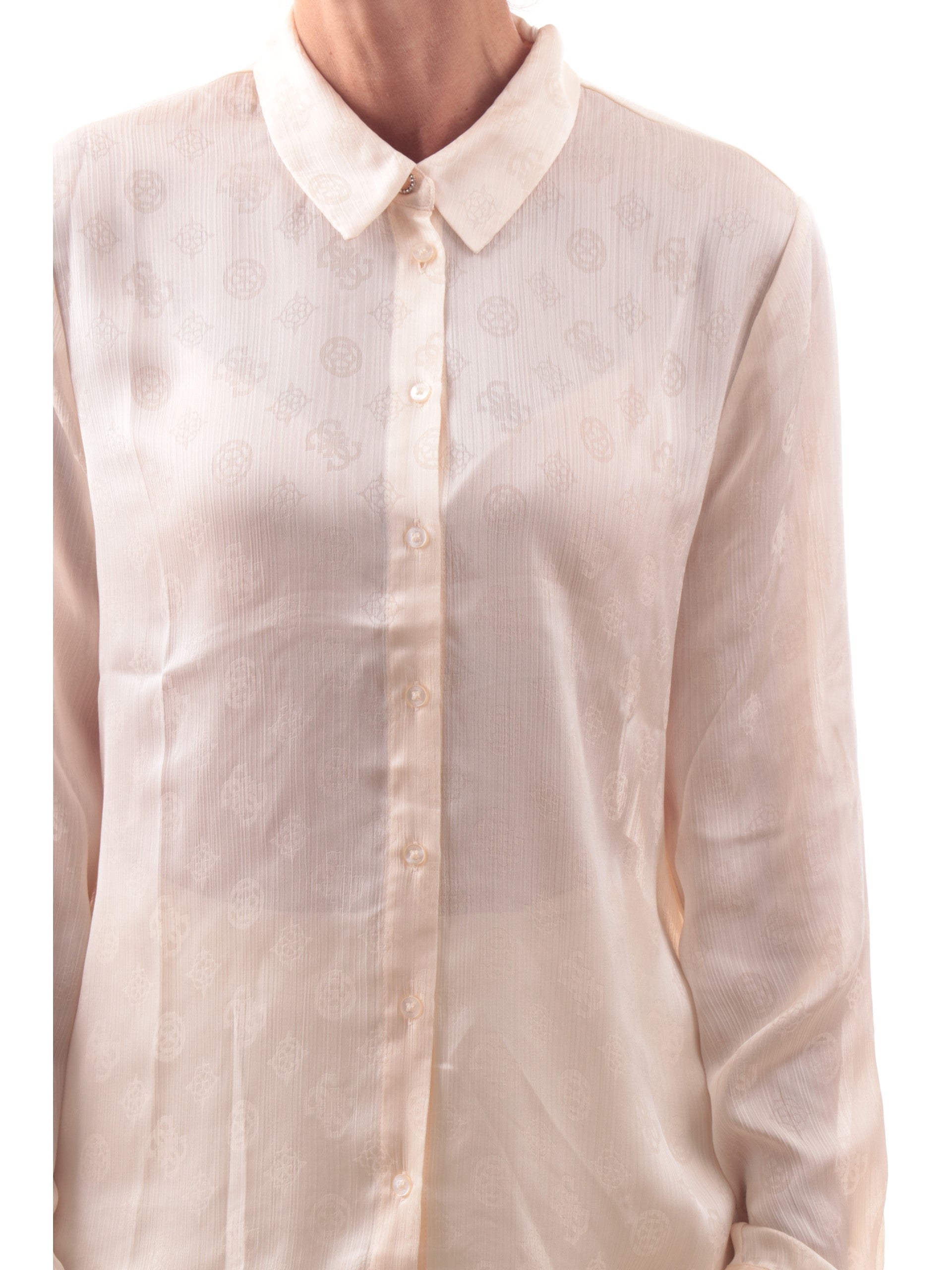 Camicia raso Guess beige da donna Marthe logo Guess all over W5YH1AWHCR2